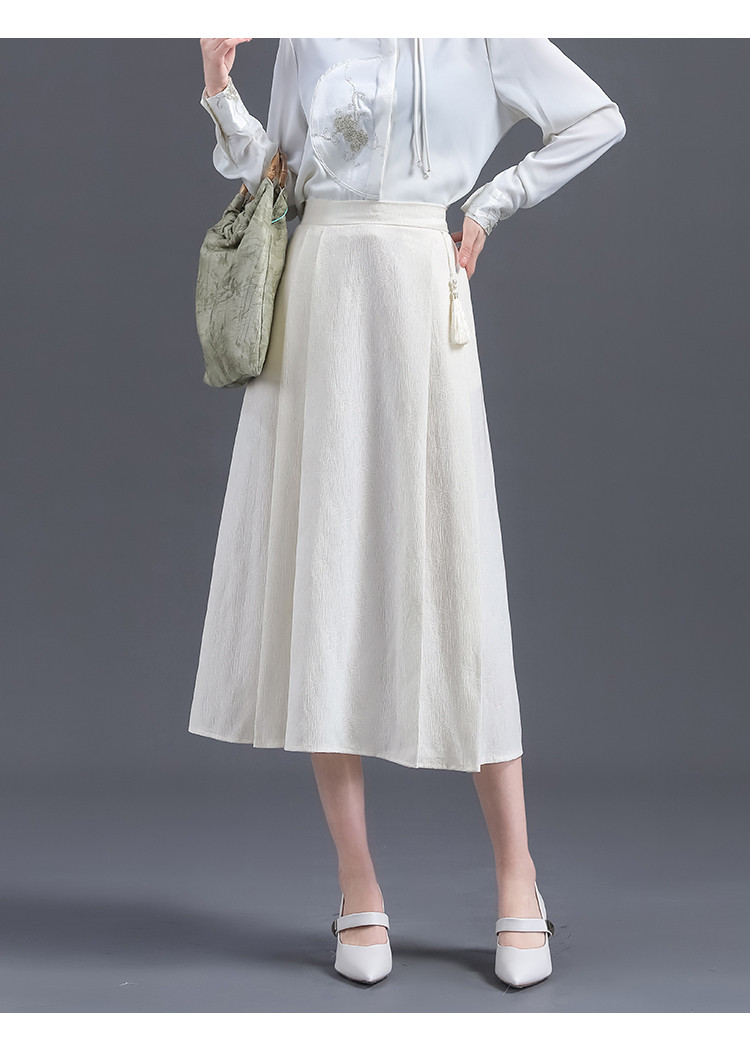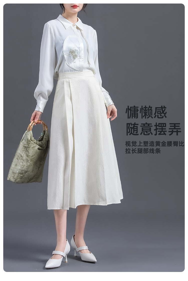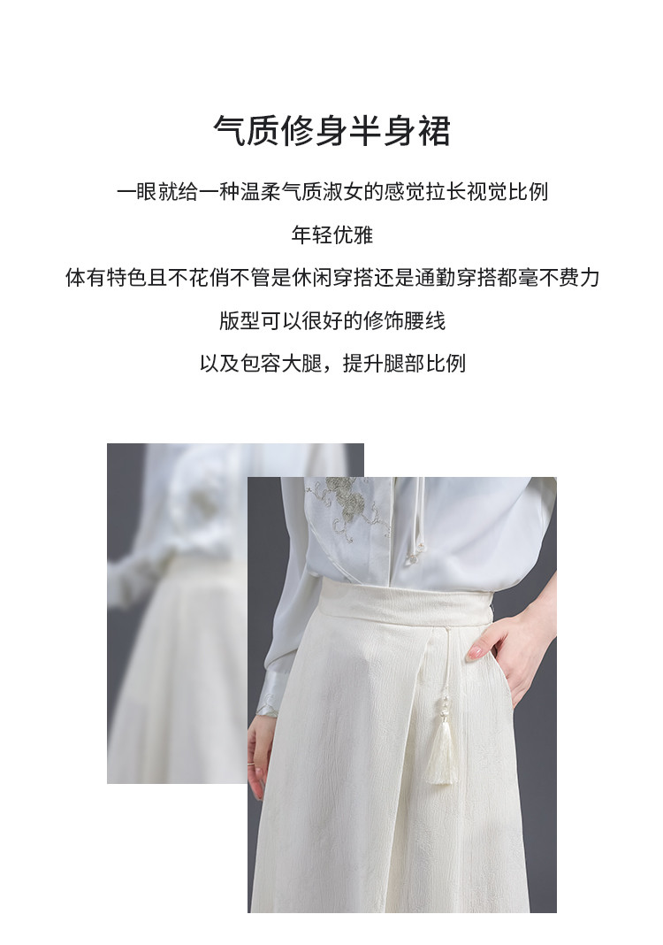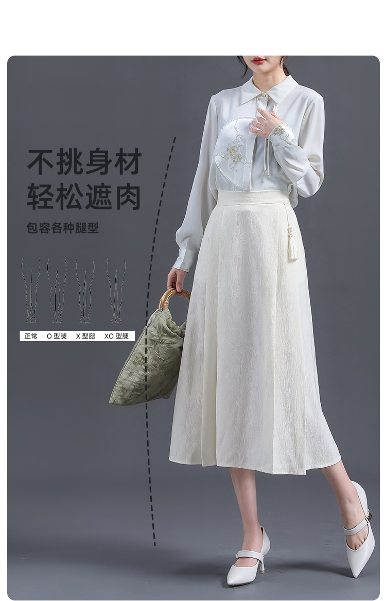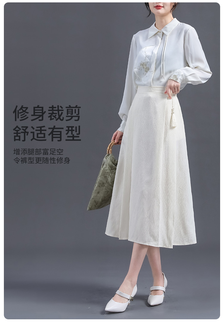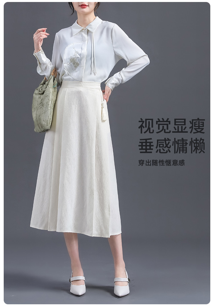 商品名称:【新中式】女装秋季薄款裙子压花工艺半身裙气质感中长裙 133023