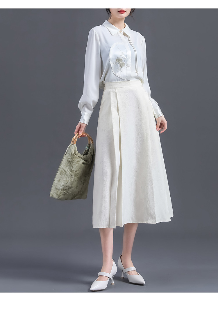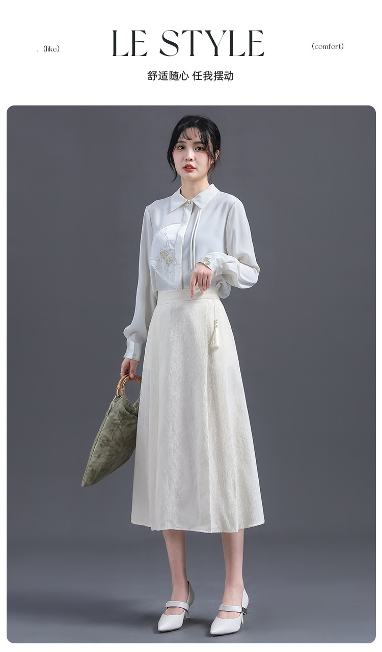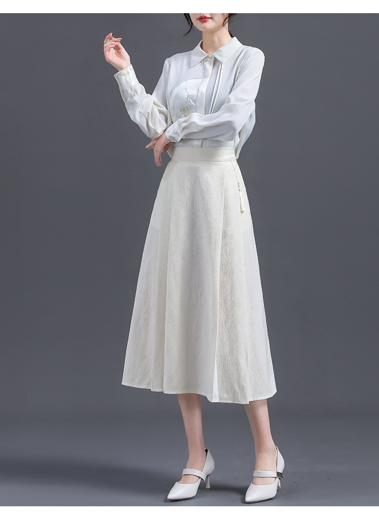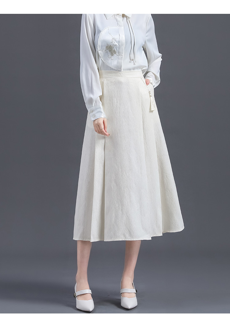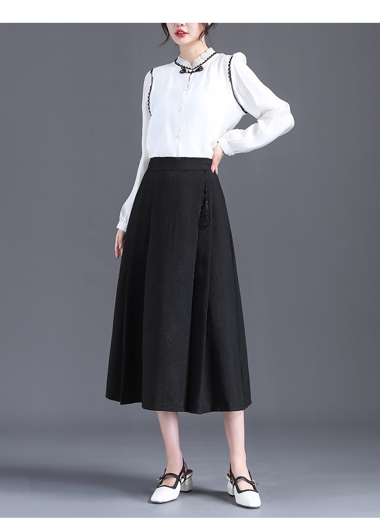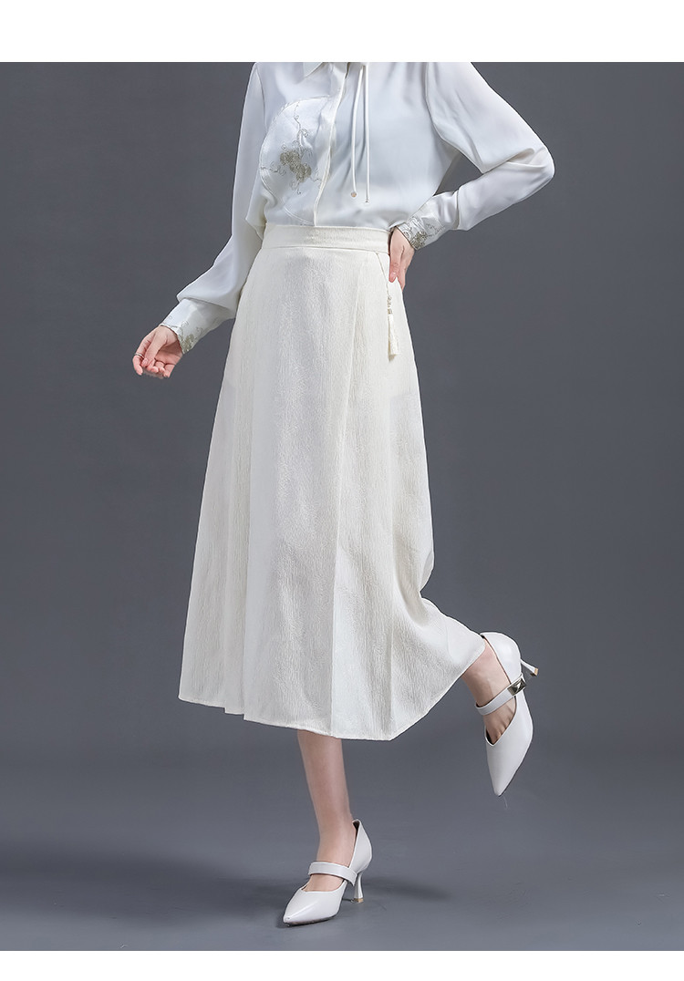 商品名称:【新中式】女装秋季薄款裙子压花工艺半身裙气质感中长裙 133023