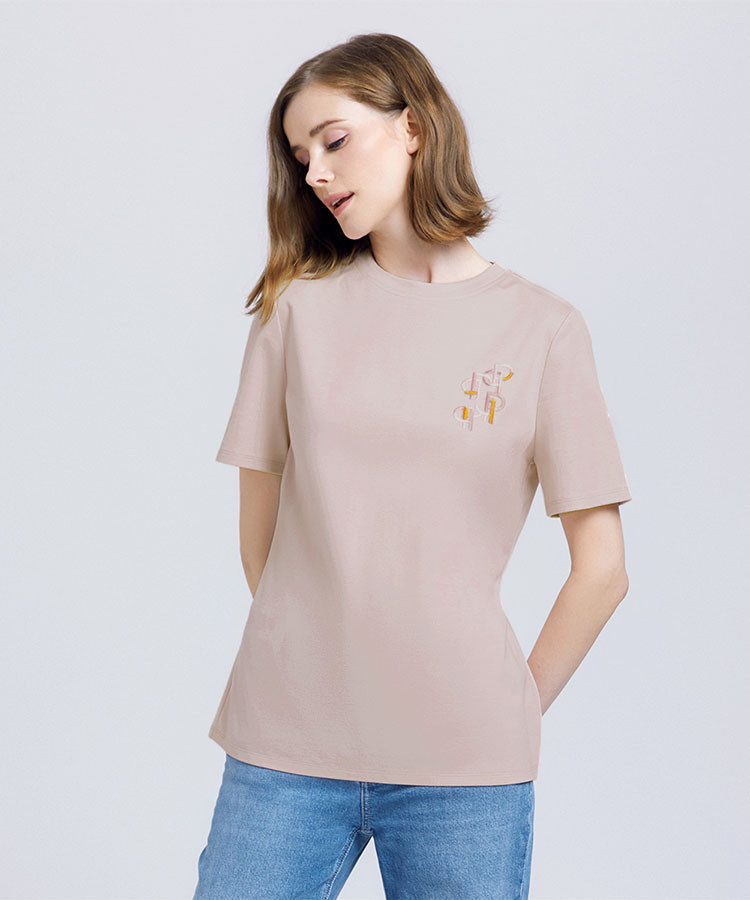 PORTS宝姿女装春夏桃子奶糖Logo刺绣T恤女短袖 976906