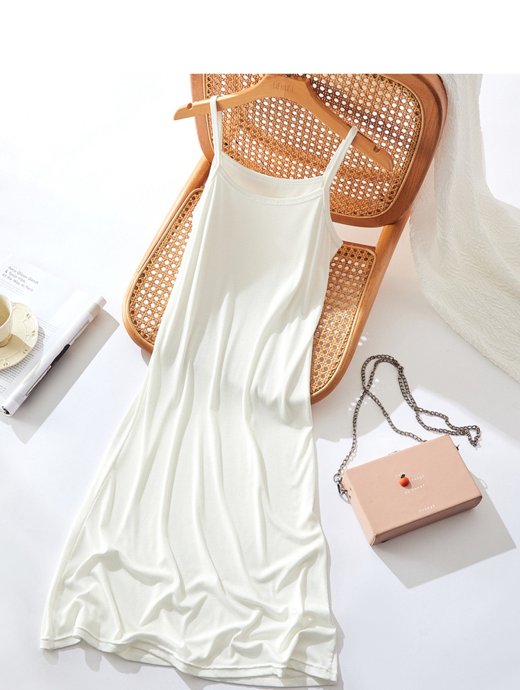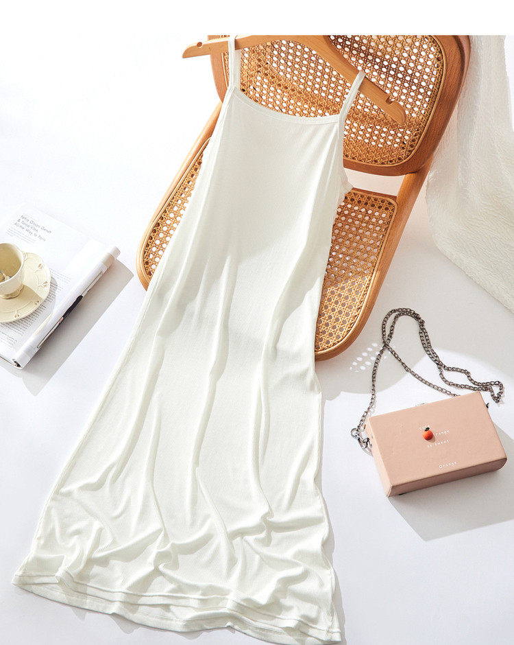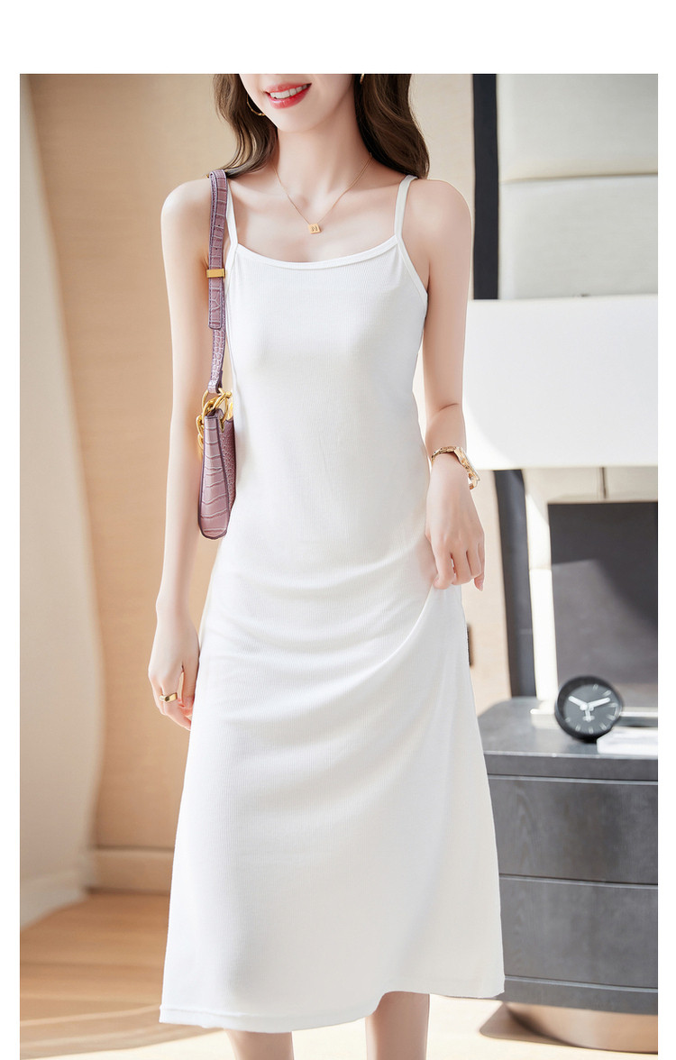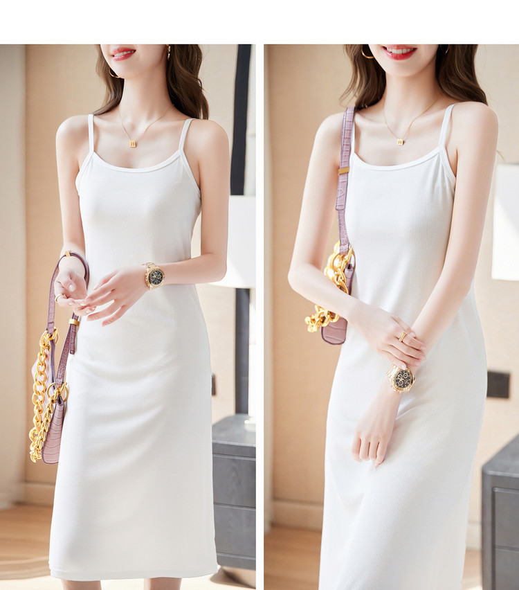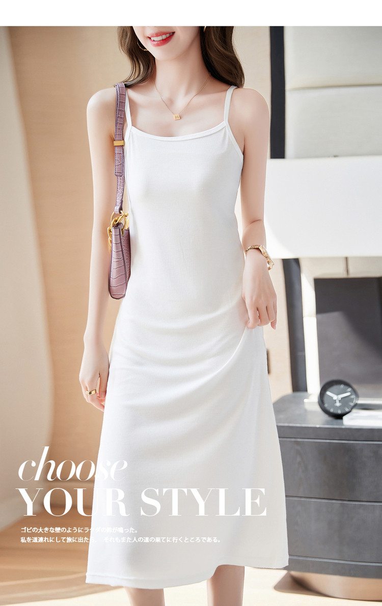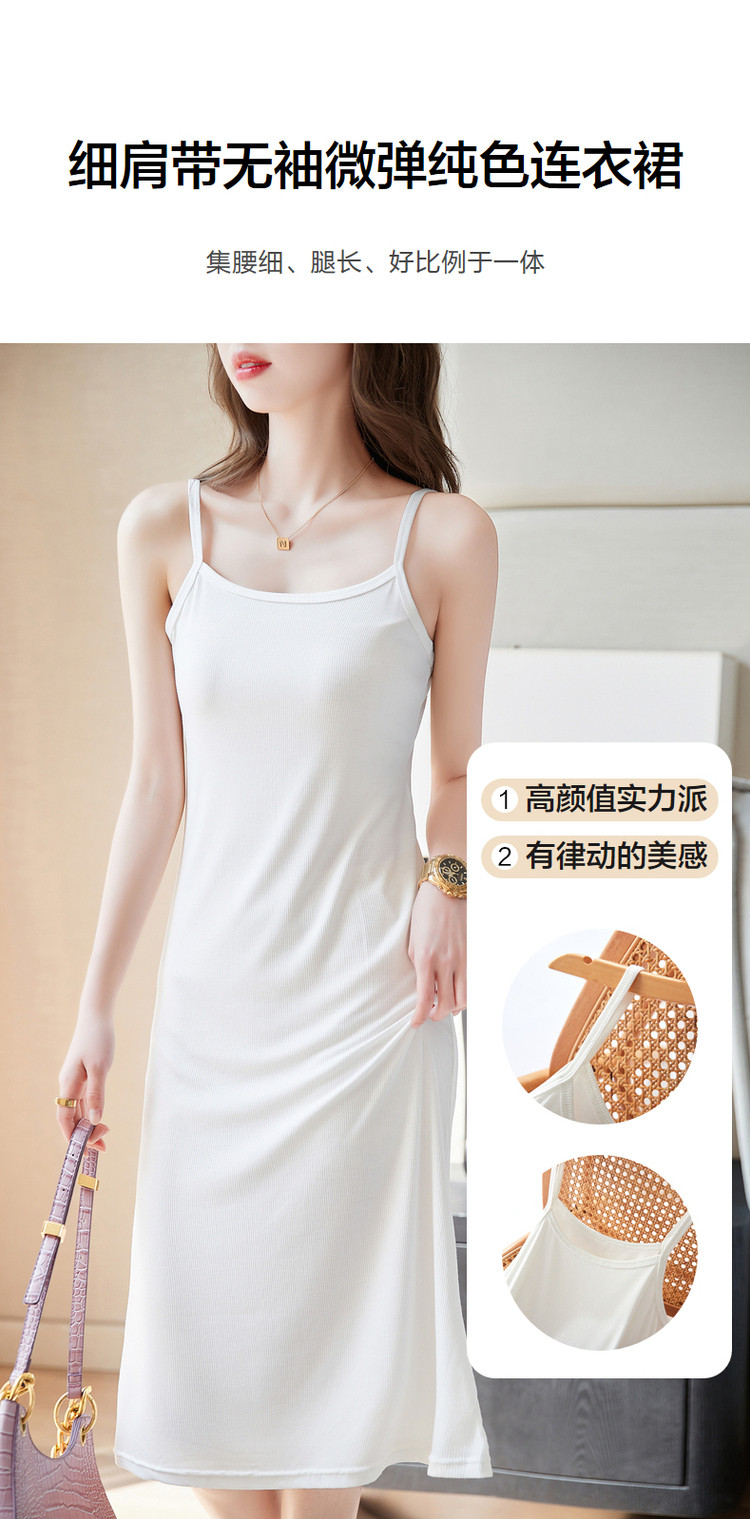 商品名称:【露肩U型领】夏无袖a字微弹度假风细肩带连衣裙女中长款 565185