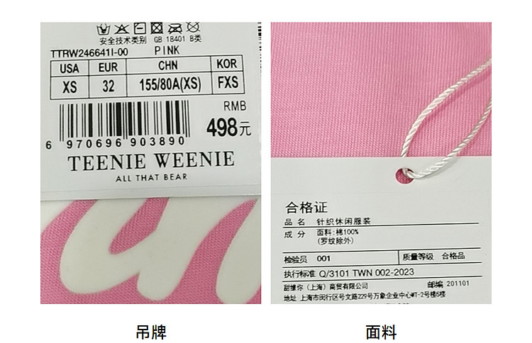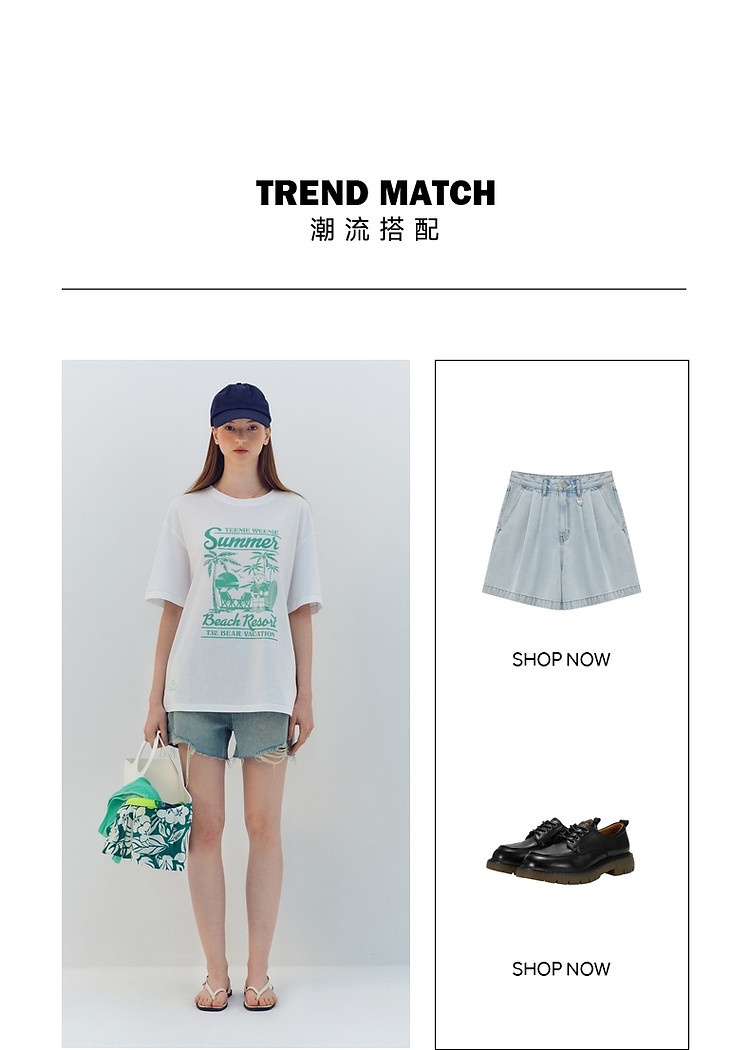 商品名称:小熊女装夏季学院多巴胺宽松短袖T恤休闲度假风上衣 845377