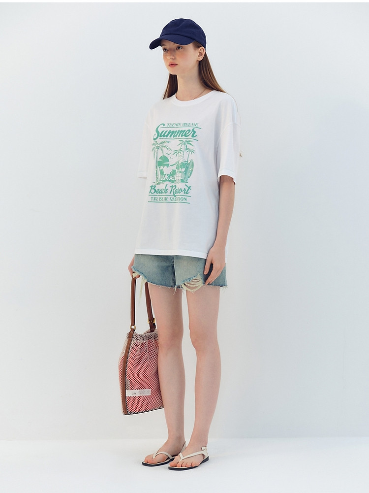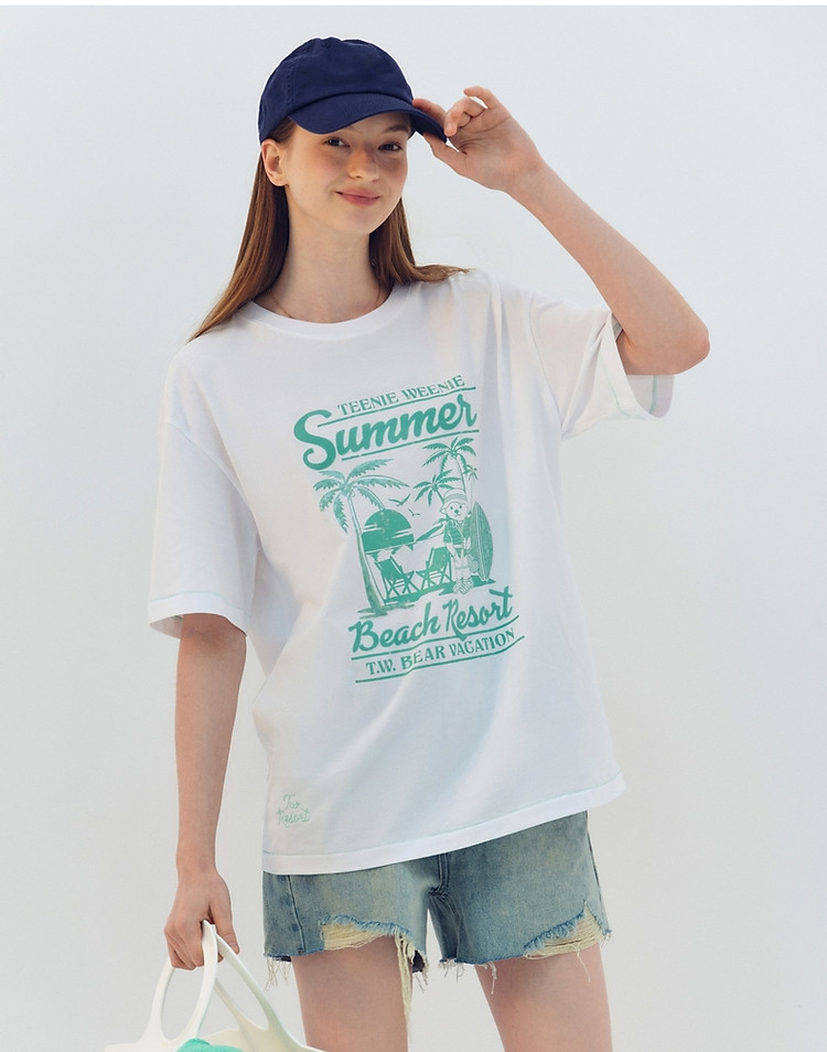 小熊女装夏季学院多巴胺宽松短袖T恤休闲度假风上衣 845377