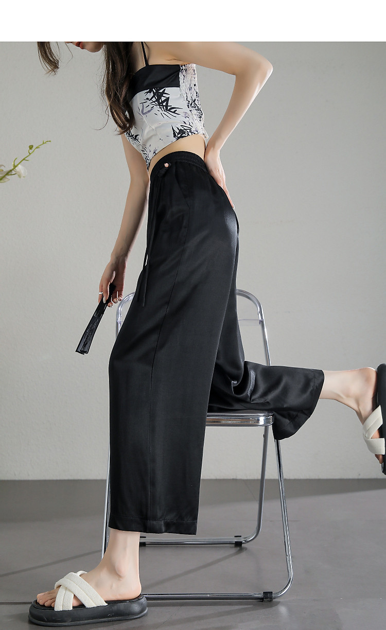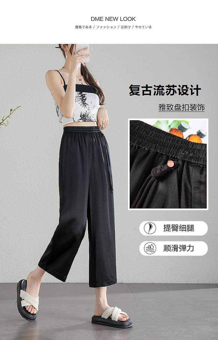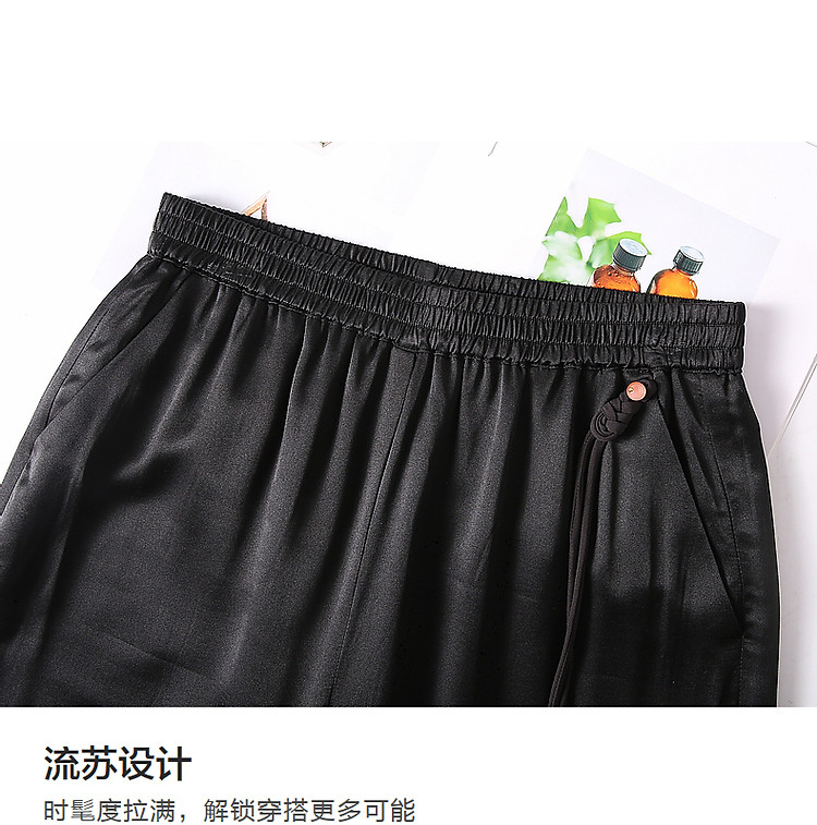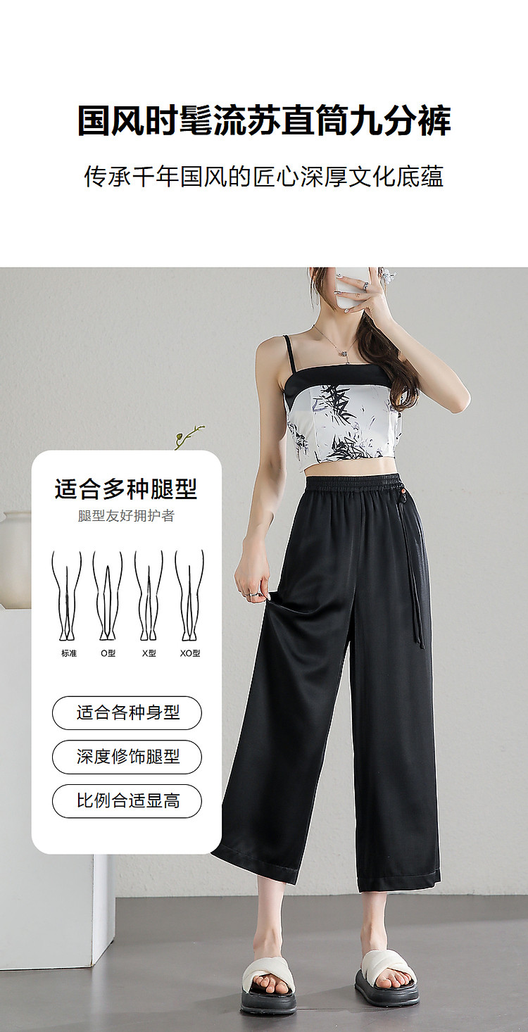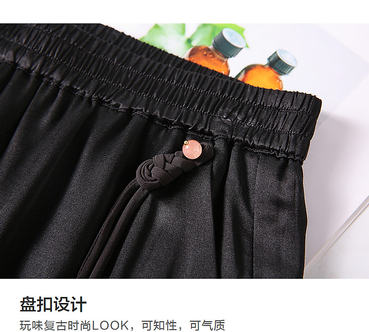 商品名称:【墨染鸦青】夏国风新中式含桑蚕丝流苏九分裤盘扣系绳休闲裤 479937