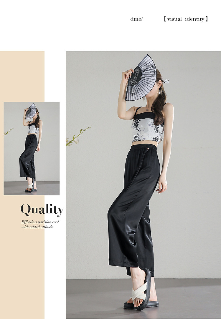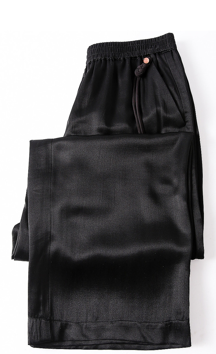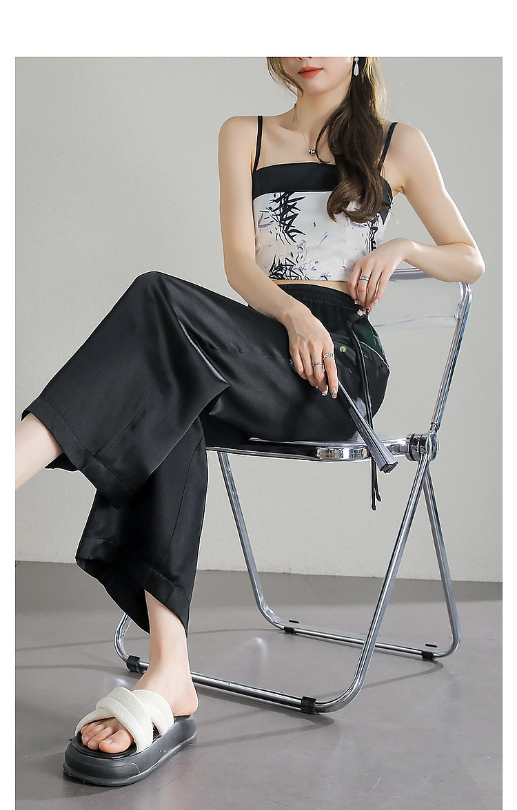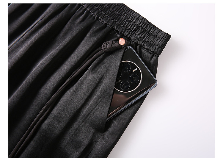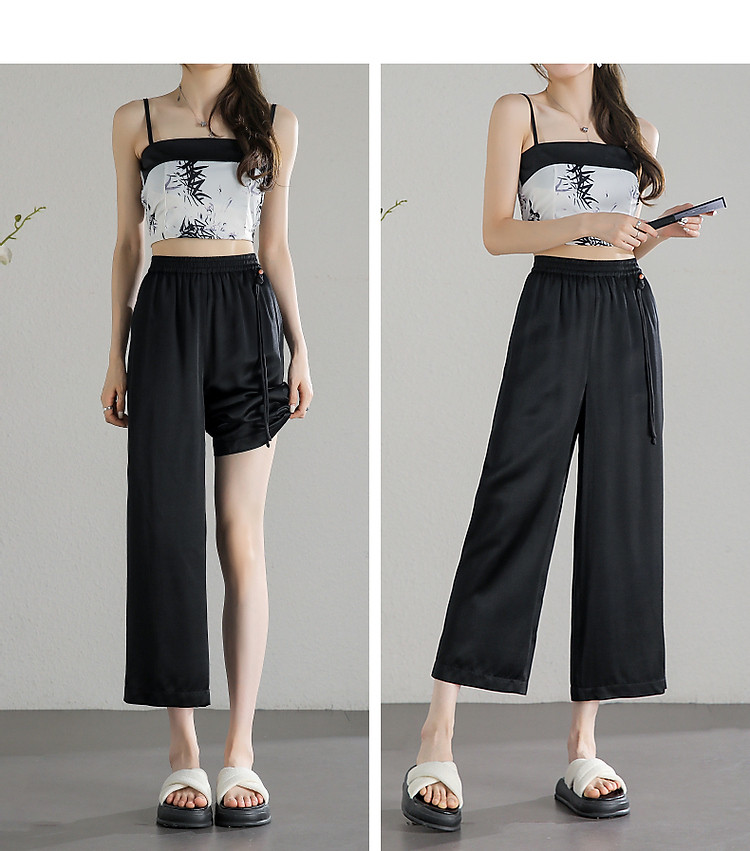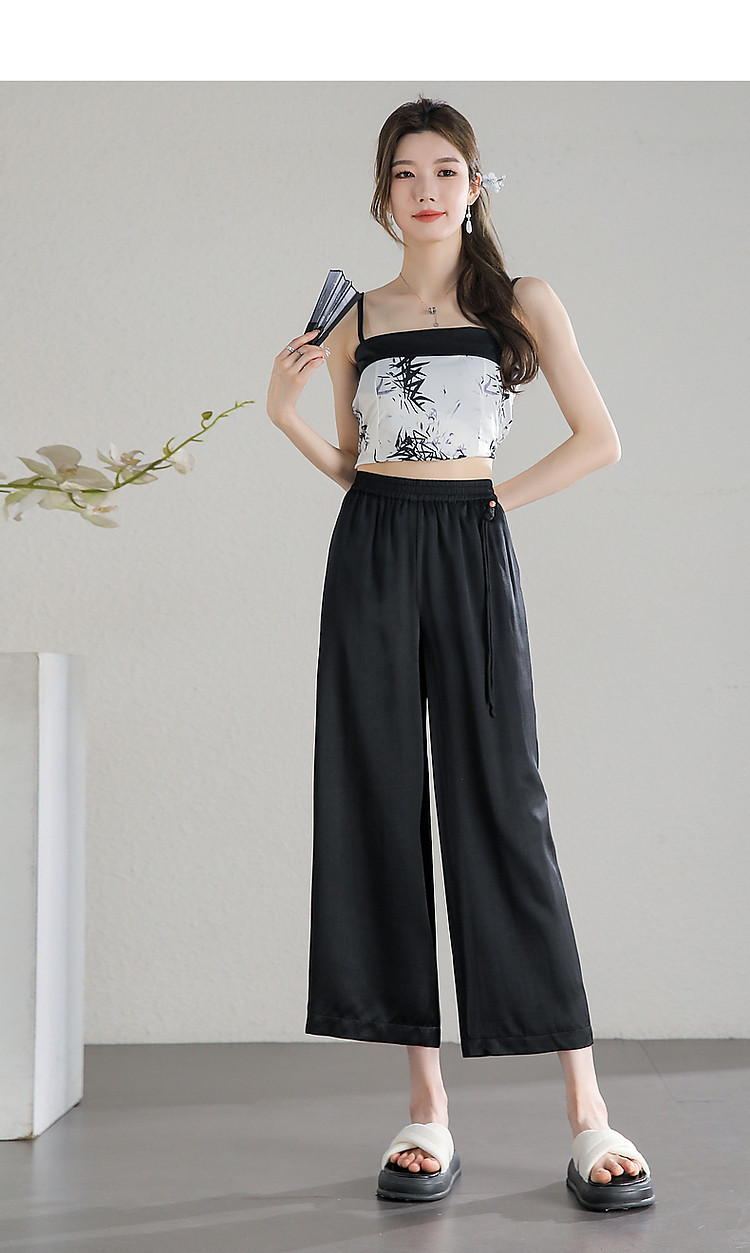 商品名称:【墨染鸦青】夏国风新中式含桑蚕丝流苏九分裤盘扣系绳休闲裤 479937