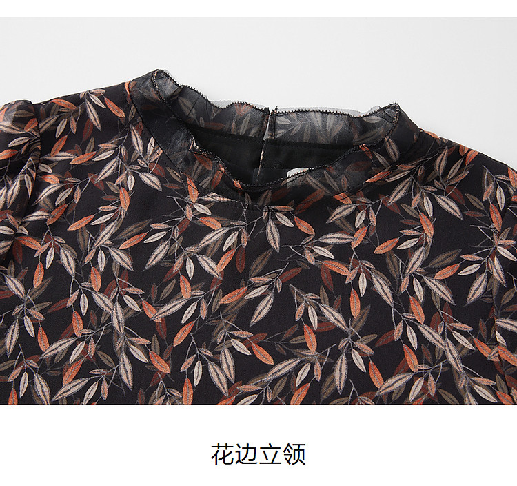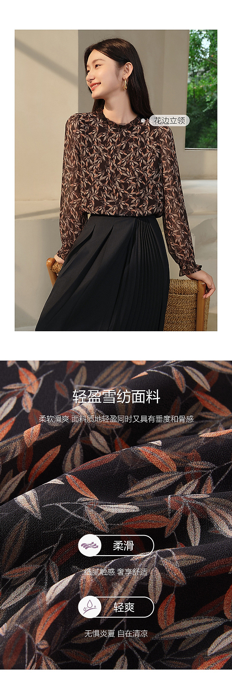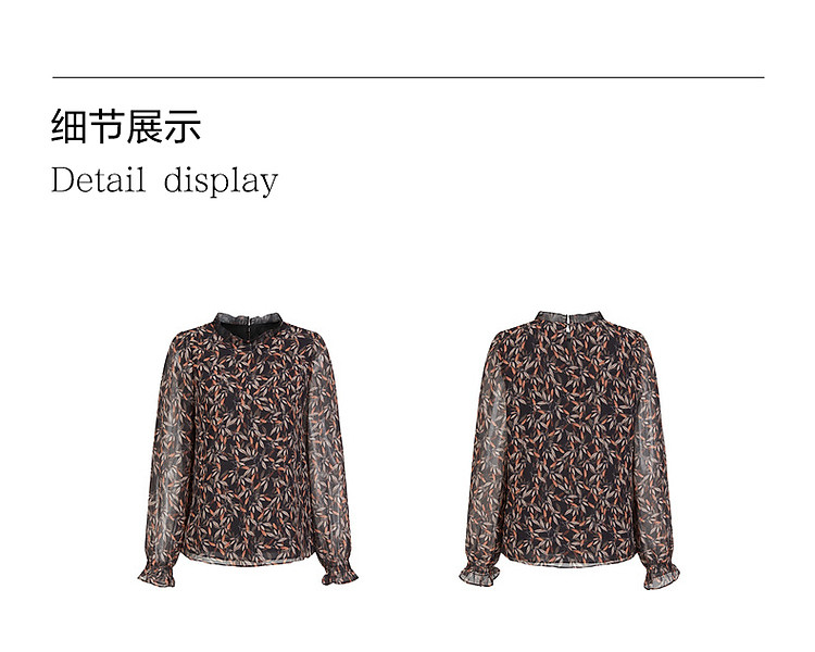 商品名称:【草目系列】旗下安娜蔻系列优雅轻熟碎花雪纺长袖上衣女 406924