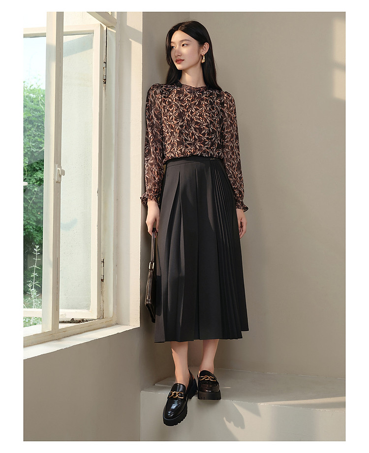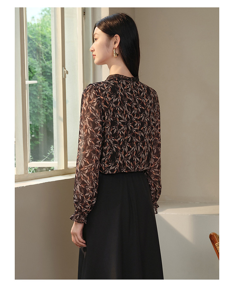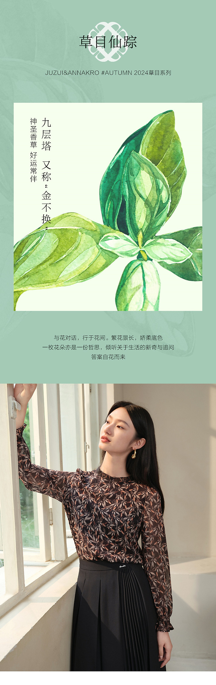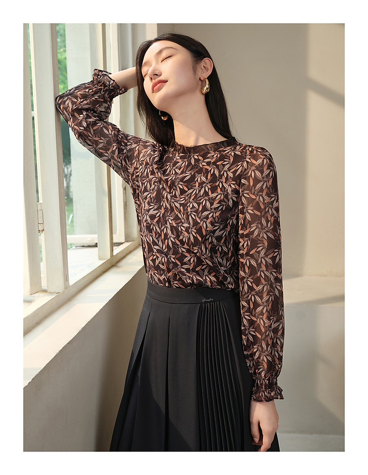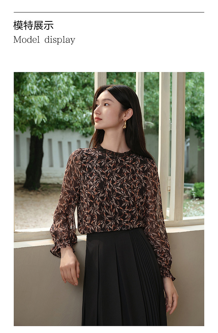 【草目系列】旗下安娜蔻系列优雅轻熟碎花雪纺长袖上衣女 406924