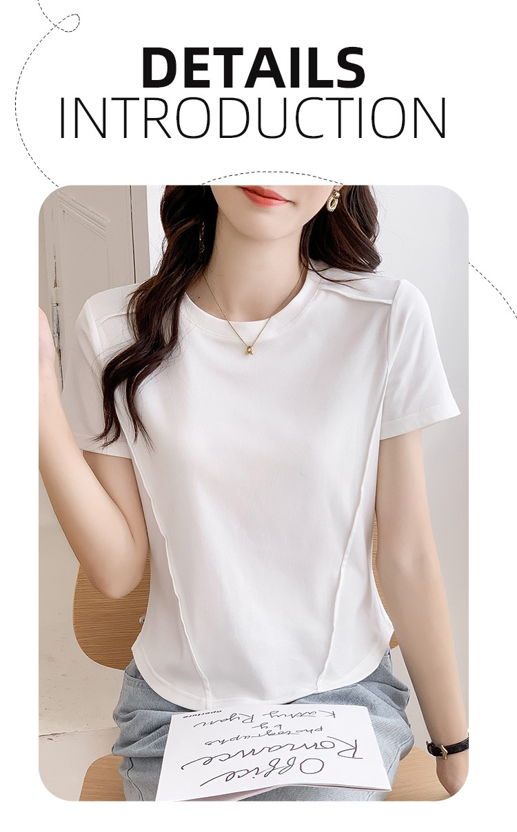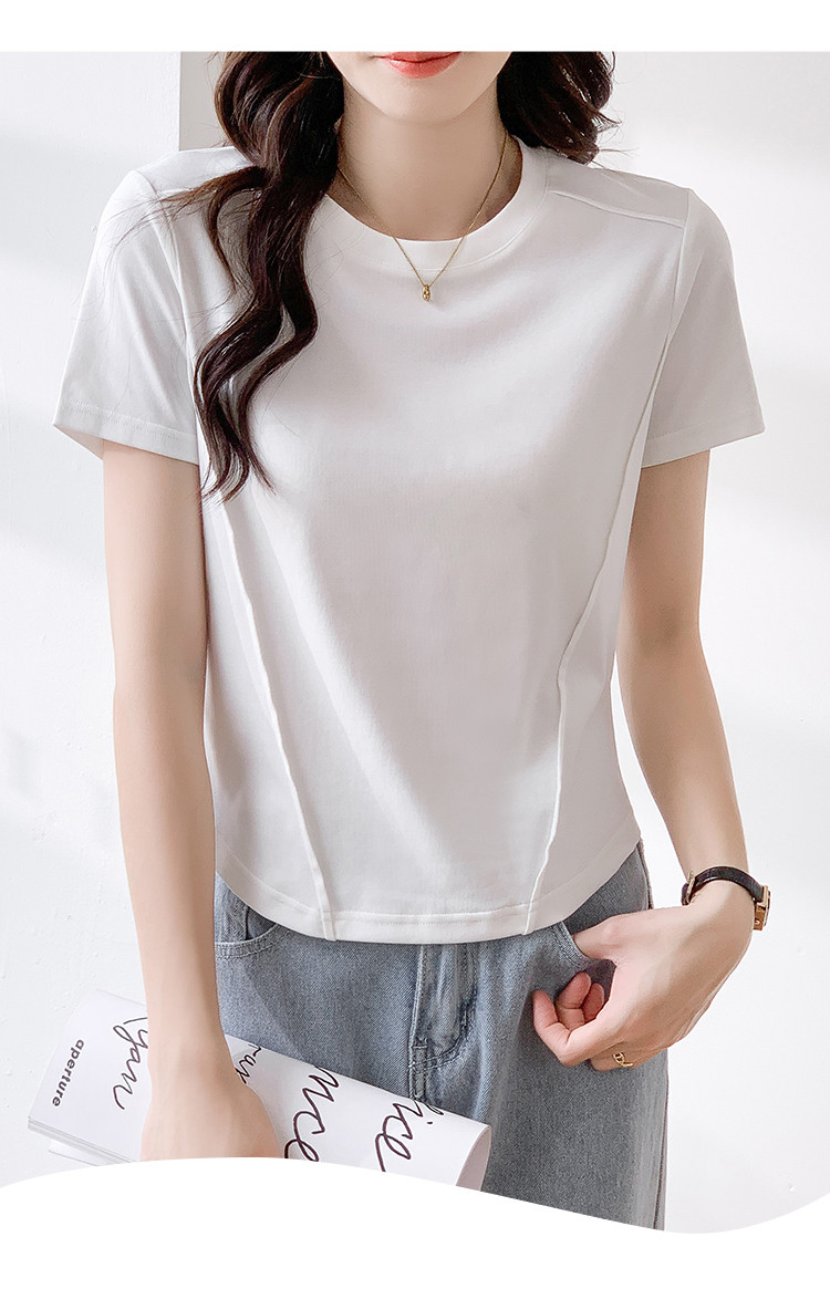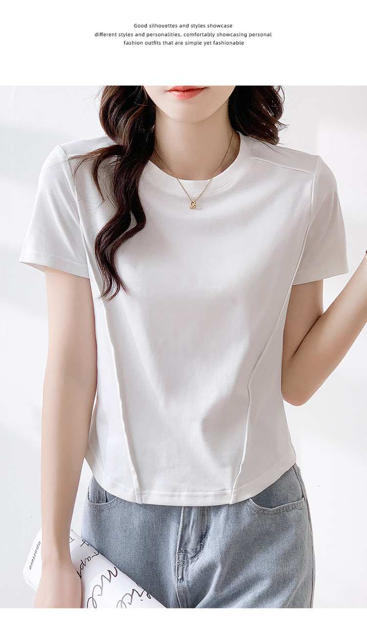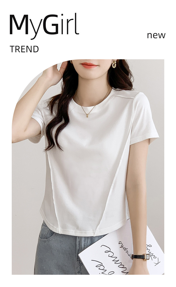 【夏季】短款圆领纯色休闲T恤简约女套头短袖上衣 843864