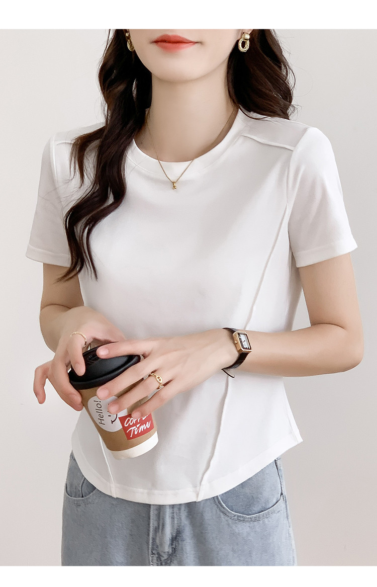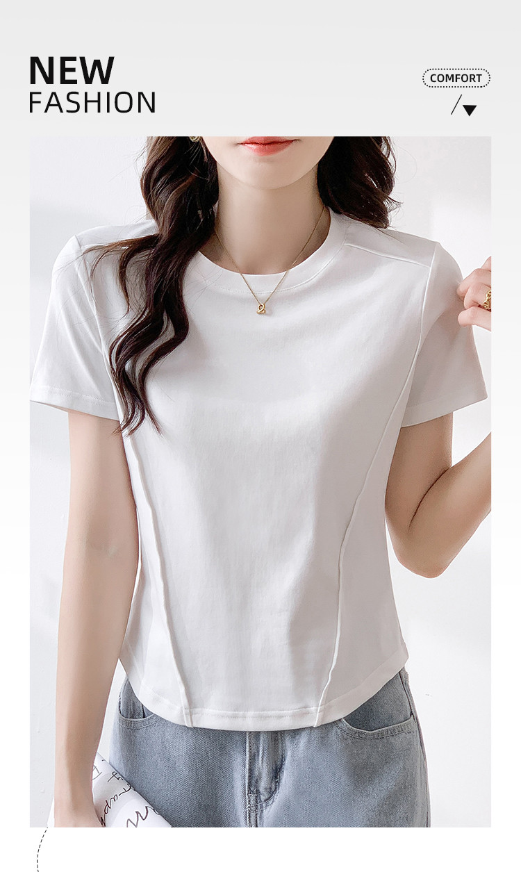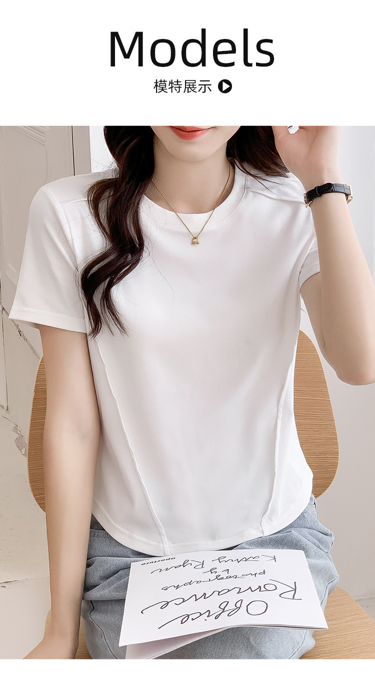 【夏季】短款圆领纯色休闲T恤简约女套头短袖上衣 843864