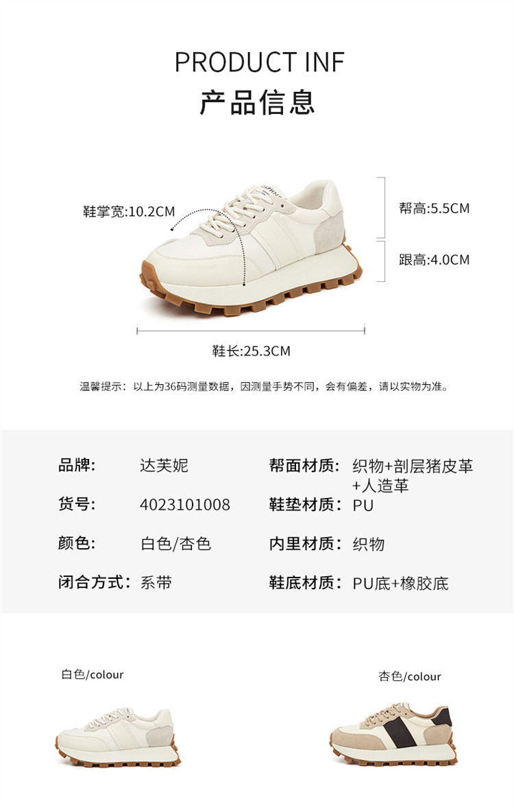 商品名称:德训鞋女夏季时尚健步鞋女百搭厚底鞋轻便透气休闲鞋学生跑步鞋子 991575