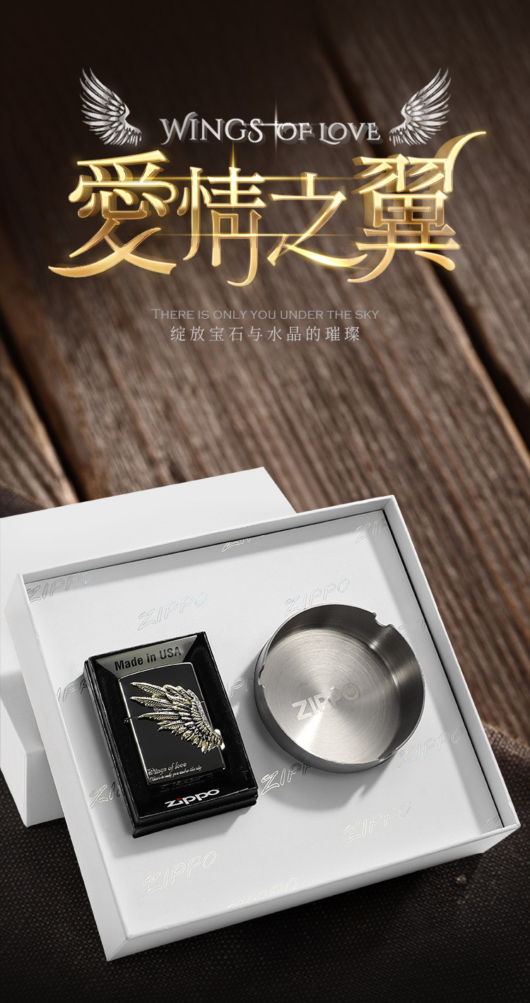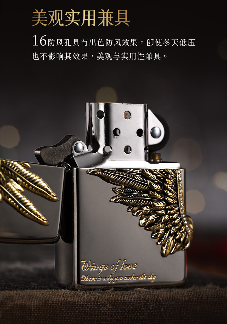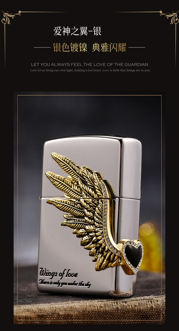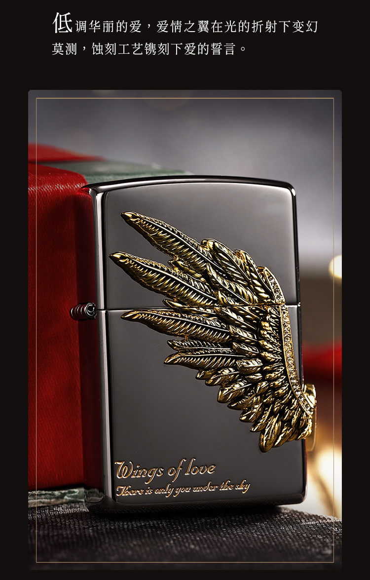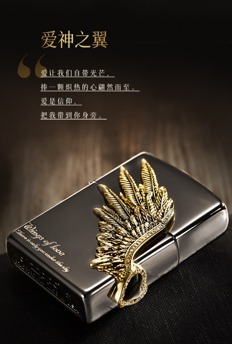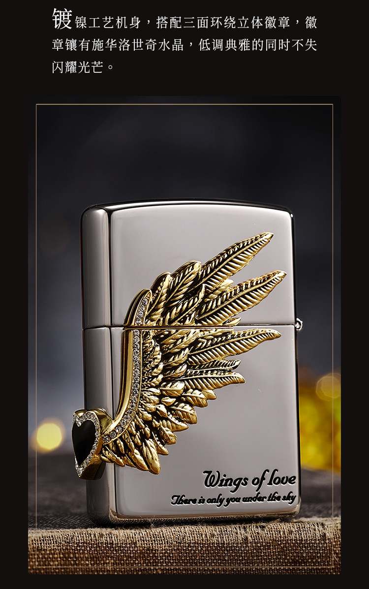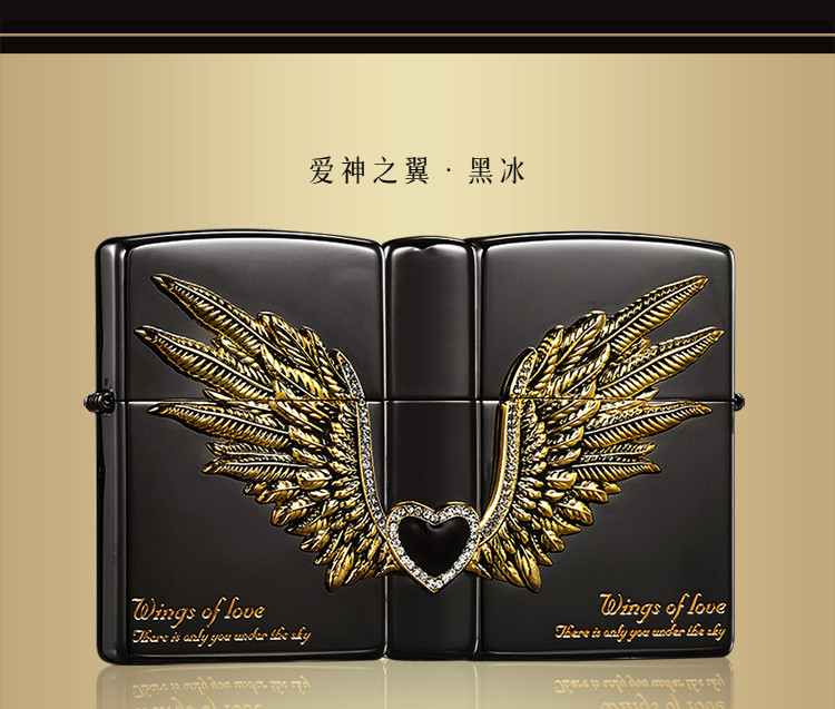 商品名称:打火机黑冰爱情之翼三面徽章宝石黑冰高级感送男友生日礼物 325086