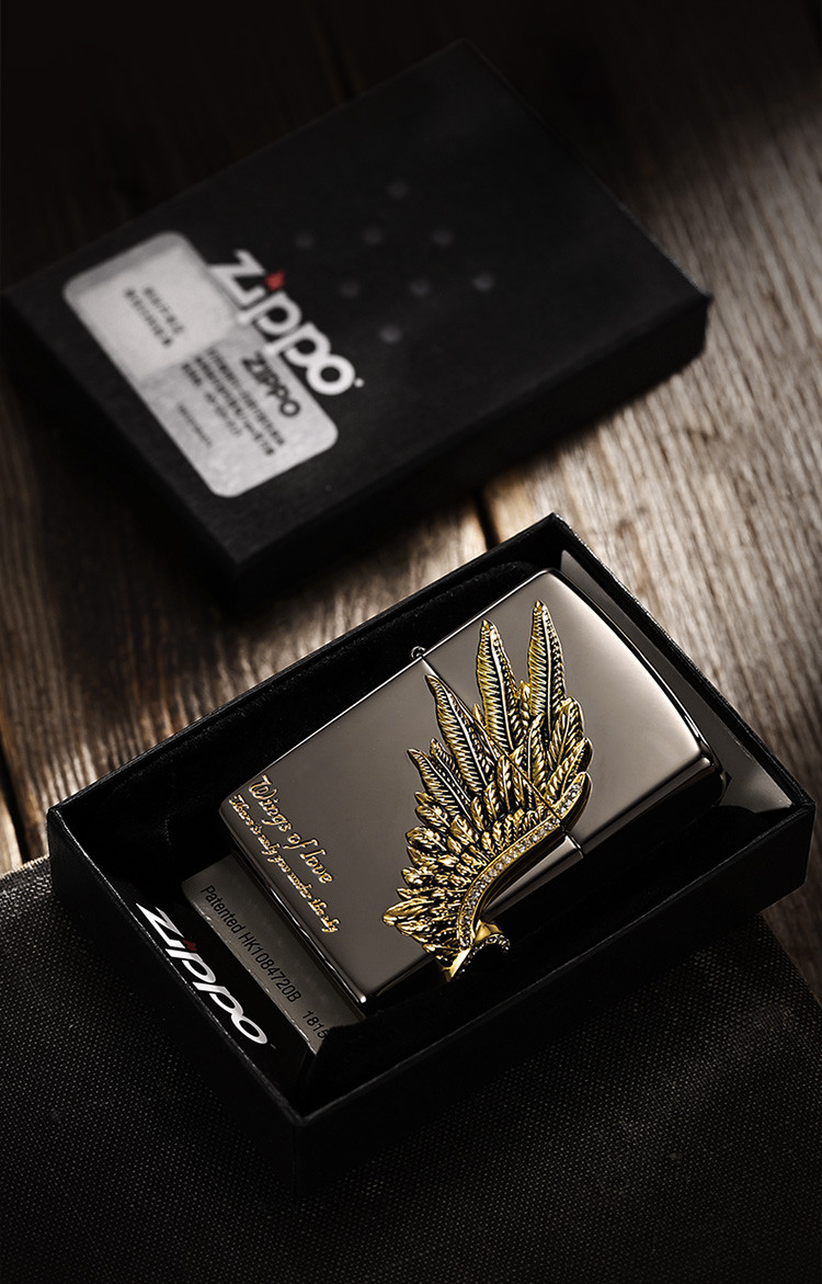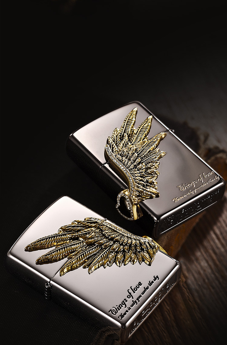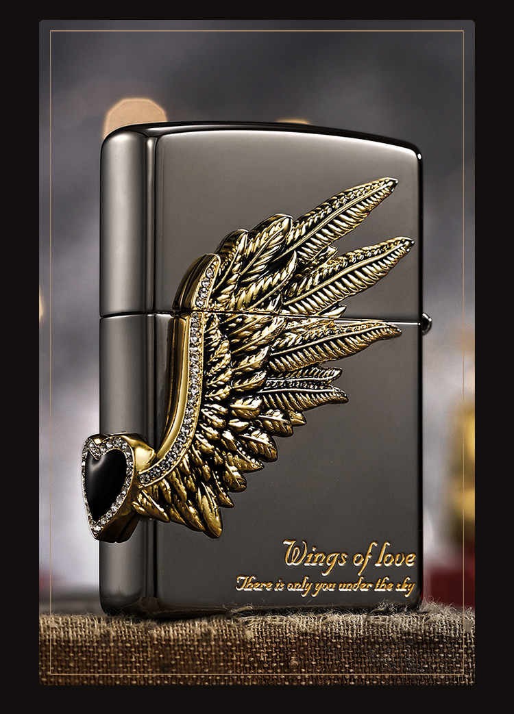 打火机黑冰爱情之翼三面徽章宝石黑冰高级感送男友生日礼物 325086