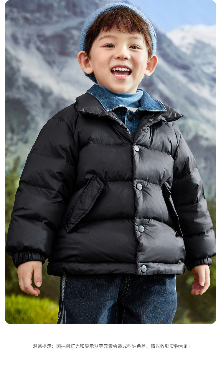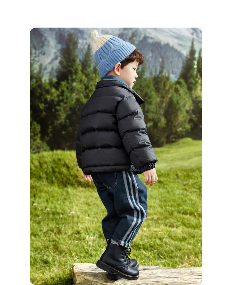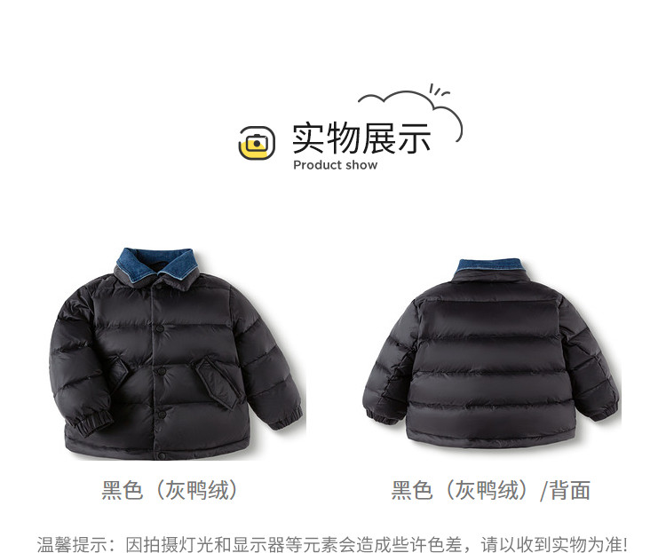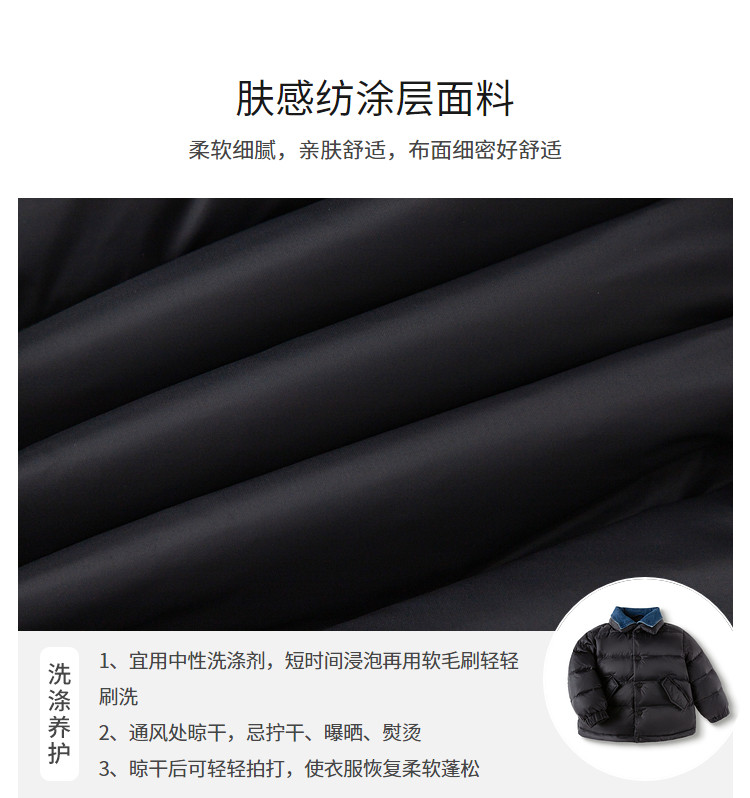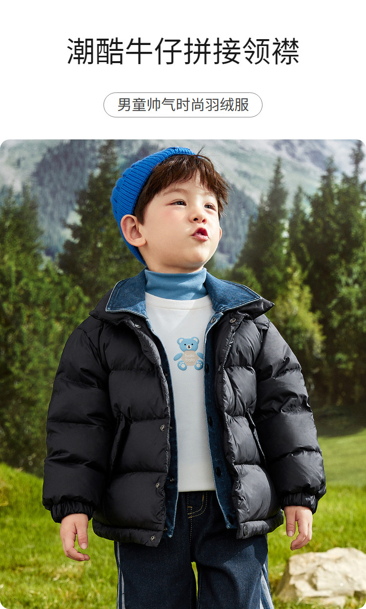 商品名称:拼接牛仔领儿童羽绒服男童外套冬装小童宝宝上衣保暖超酷 522181