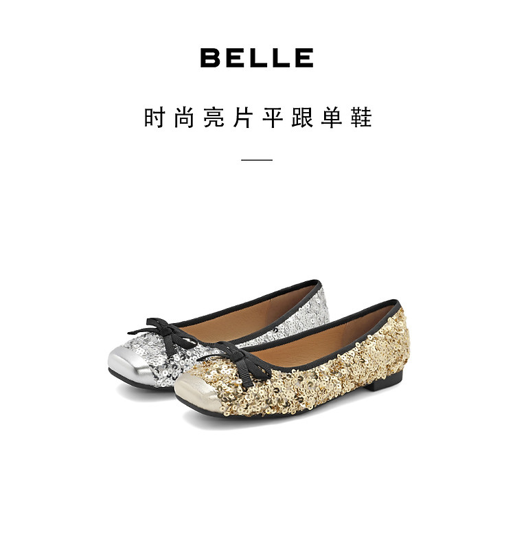 商品名称:百丽平底单鞋女春季春晚晚鞋子舒适方头蝴蝶结单鞋 990426