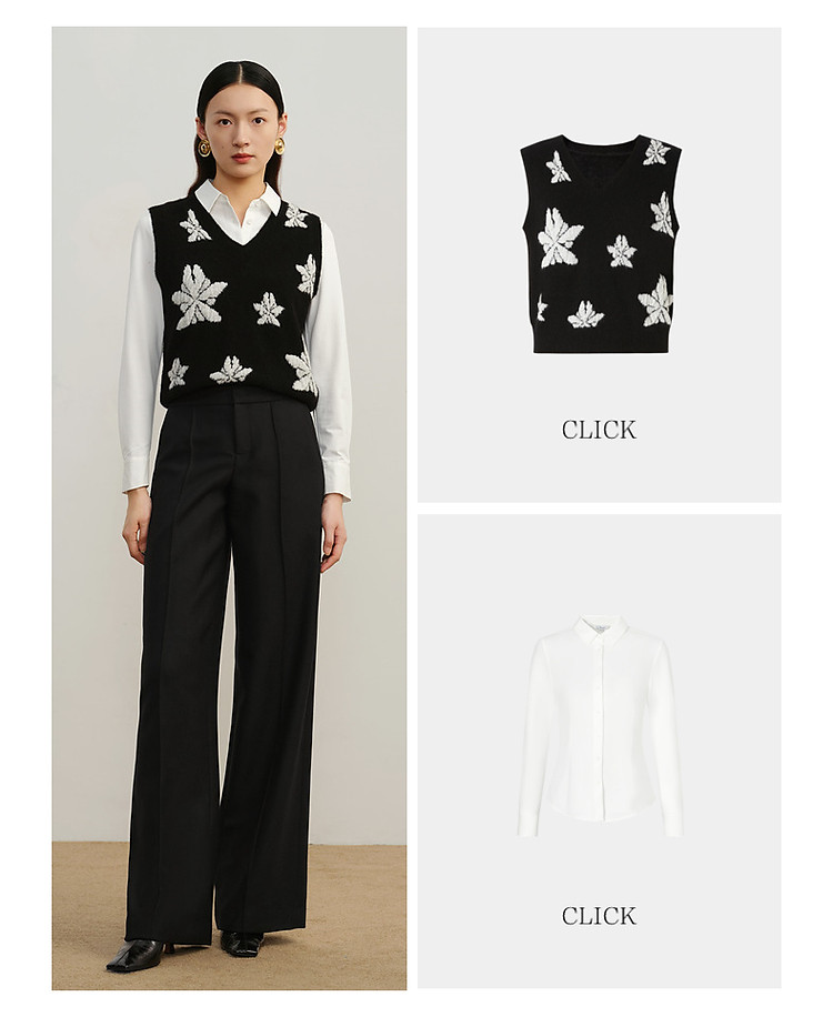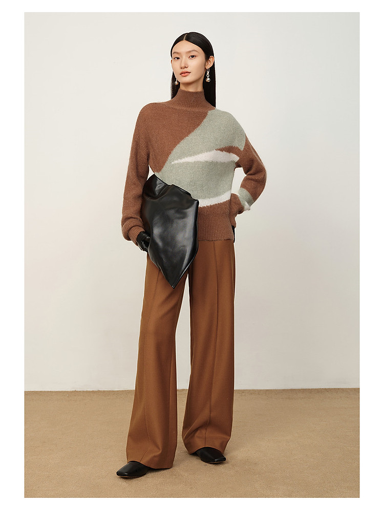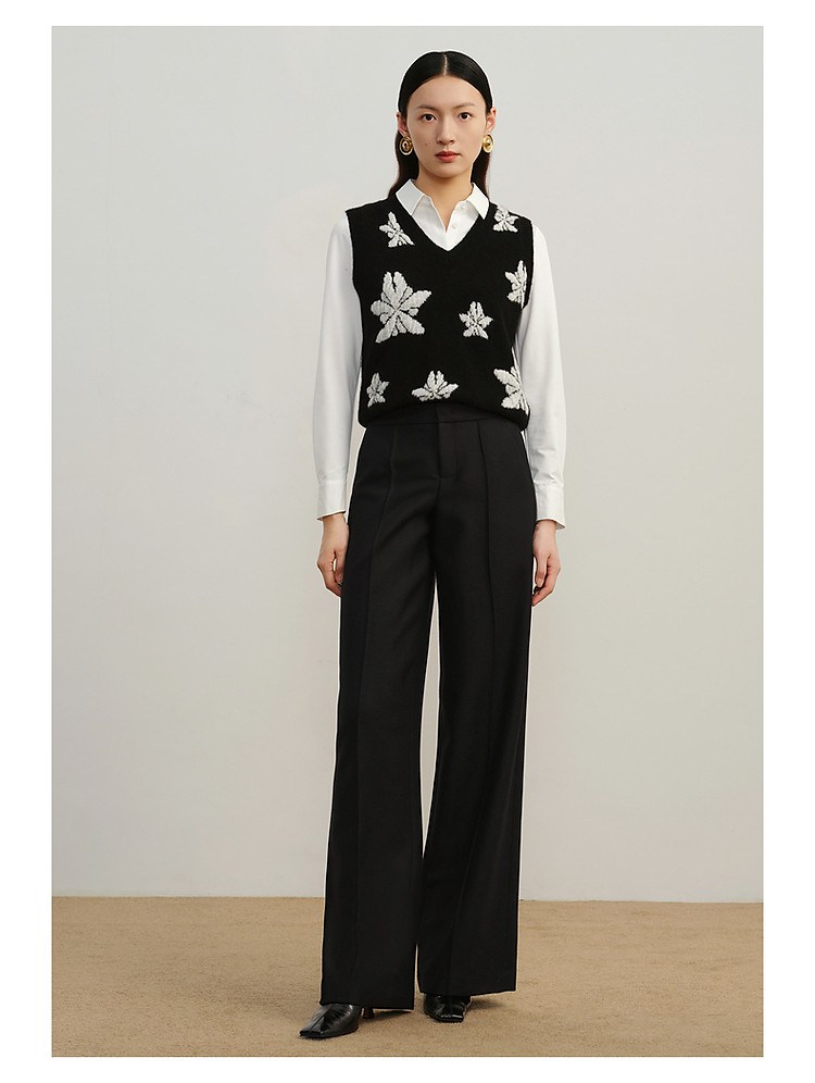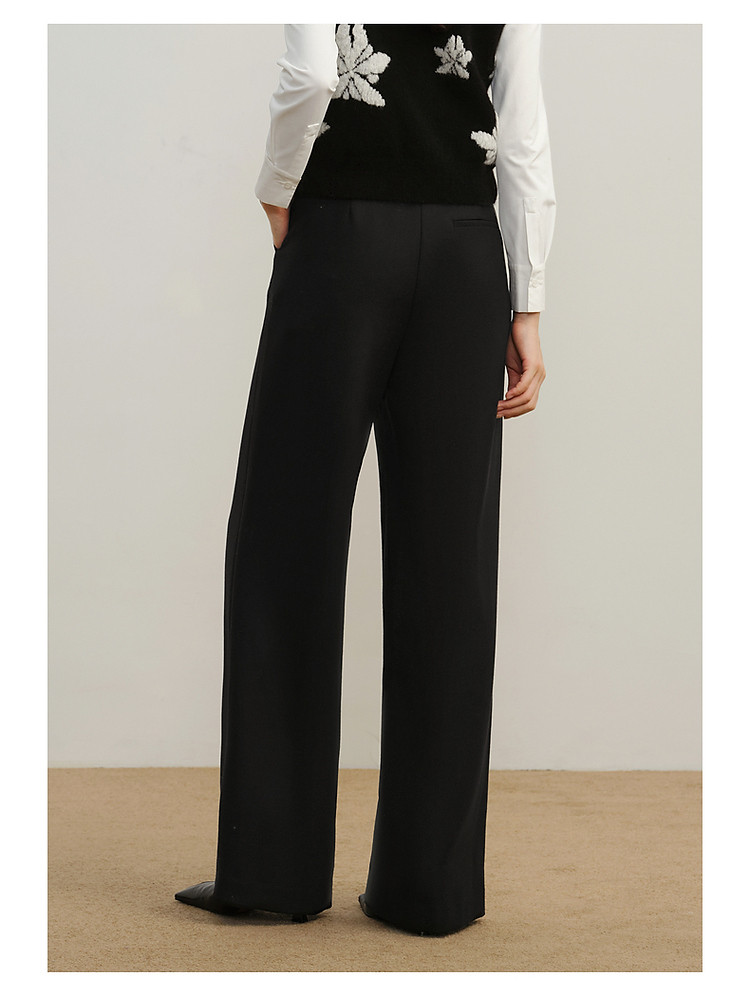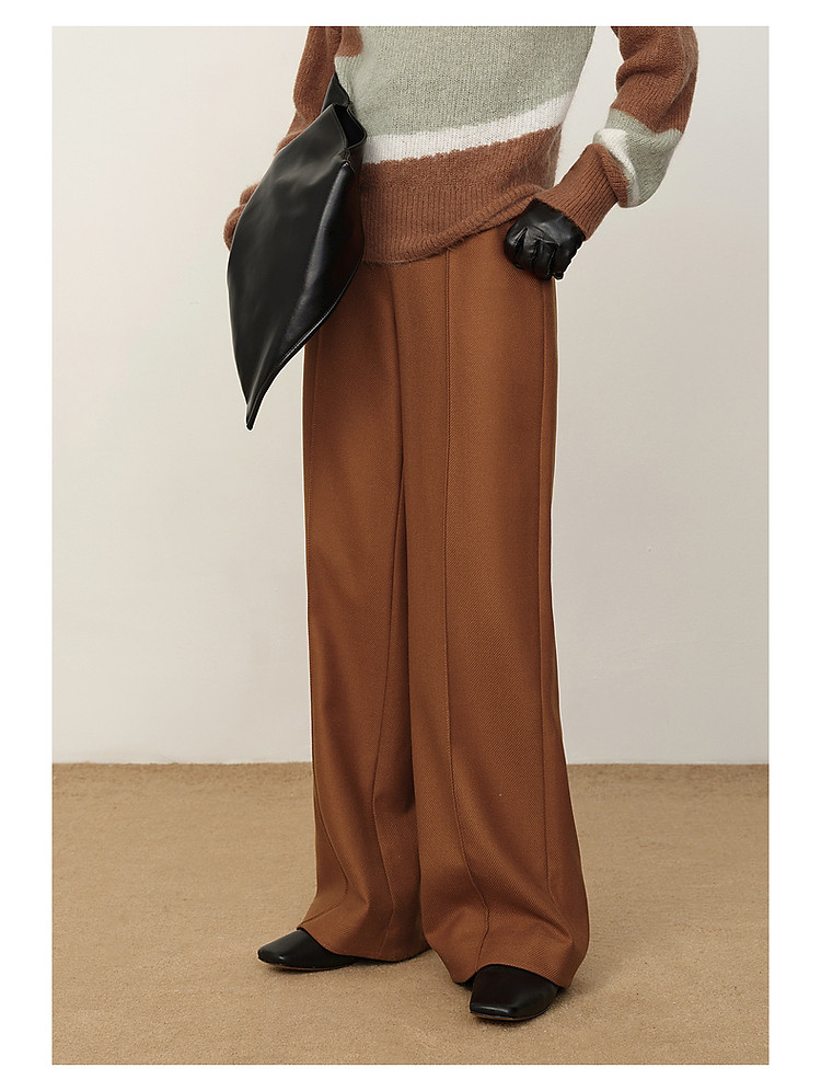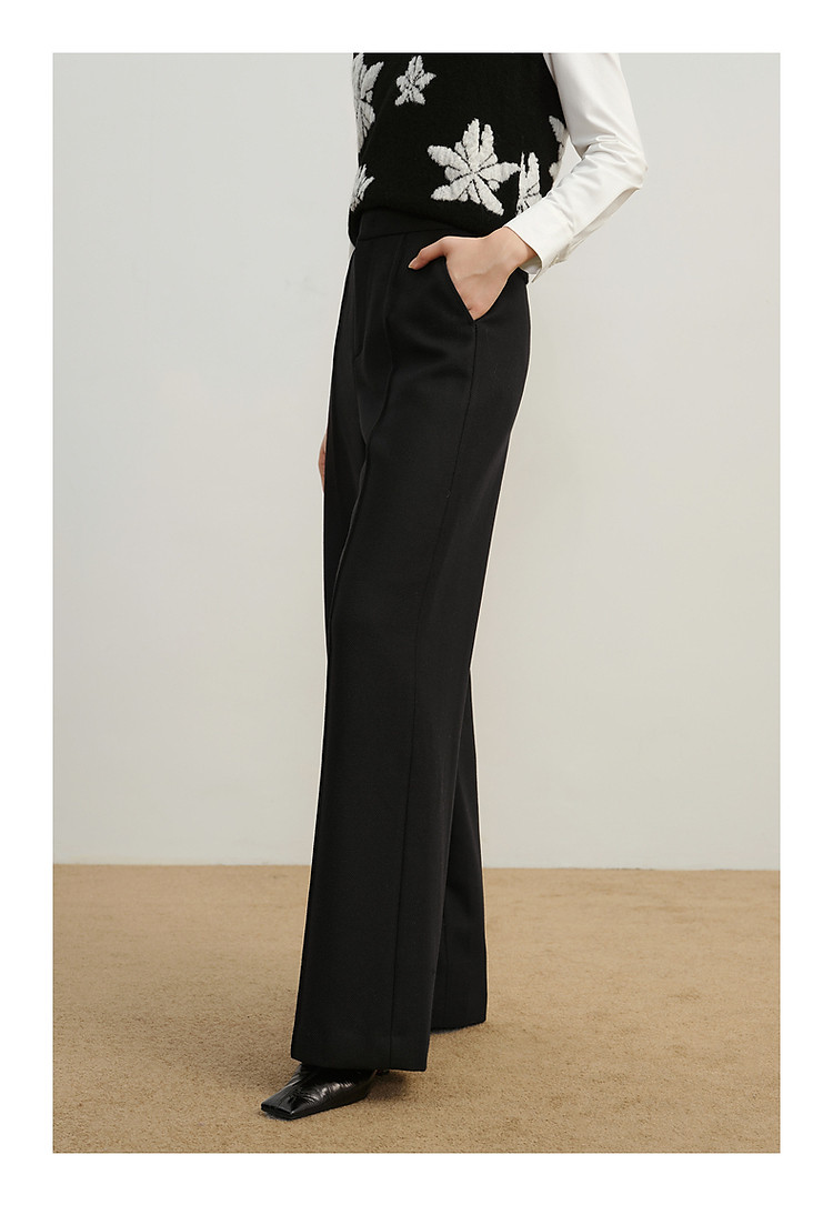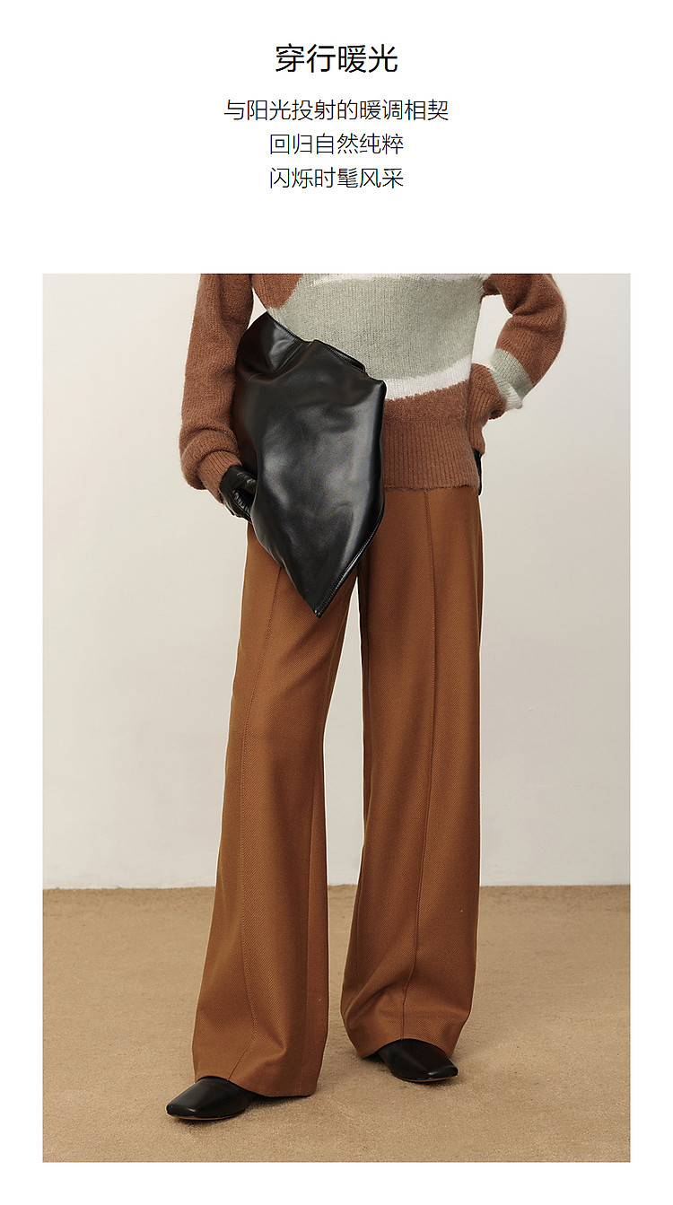 玖姿旗下安娜蔻系列斜纹羊毛休闲阔腿裤长裤女冬季 033548
