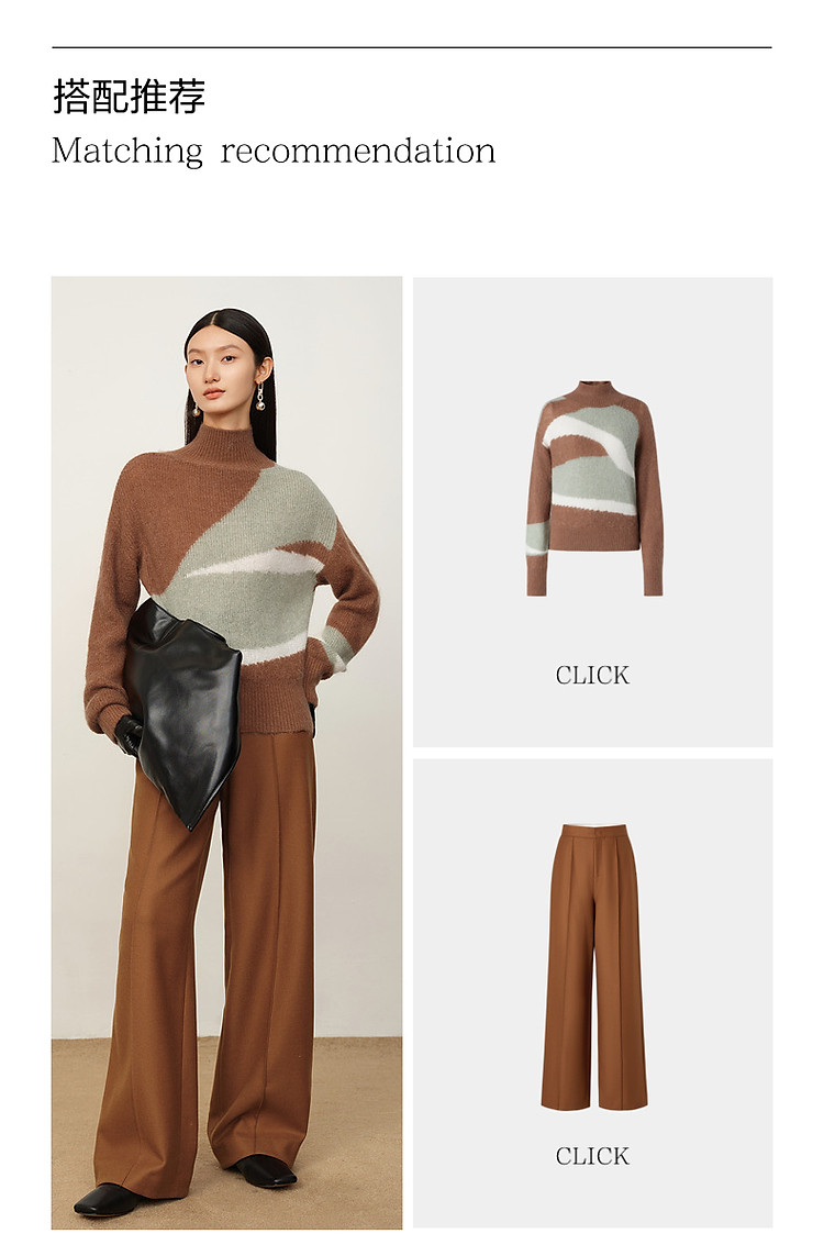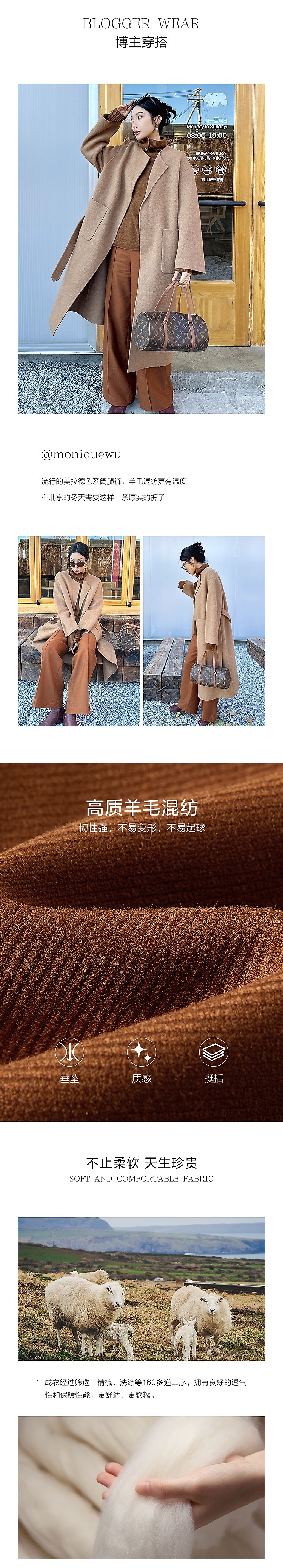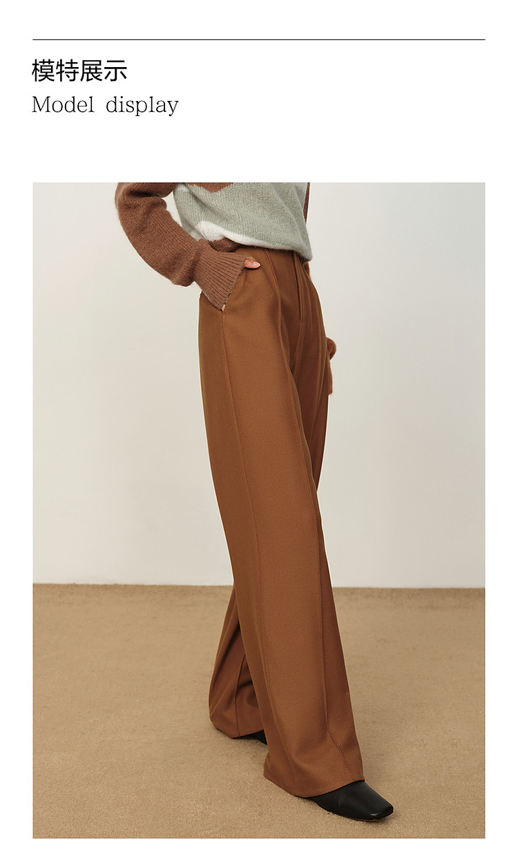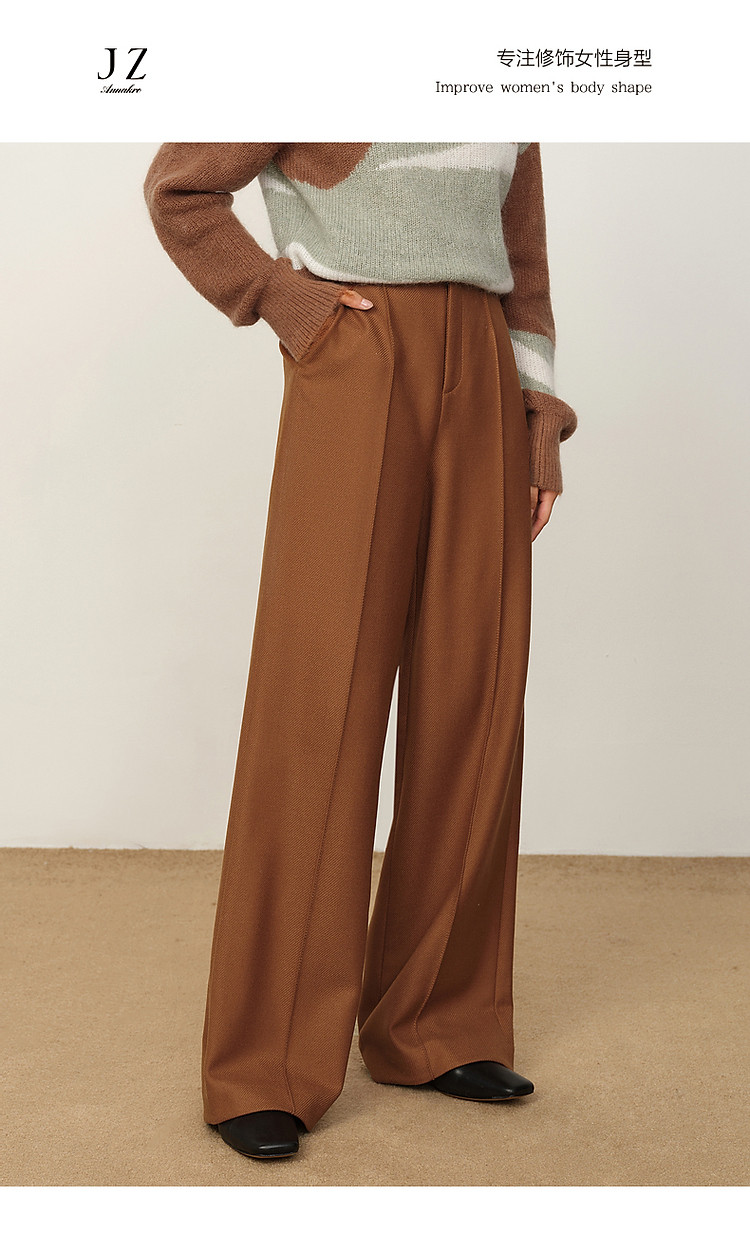 商品名称:玖姿旗下安娜蔻系列斜纹羊毛休闲阔腿裤长裤女冬季 033548
