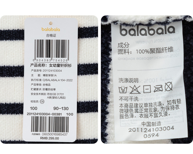 商品名称:巴拉巴拉女童毛衫儿童经典条纹针织衫甜美可爱春装潮 633157