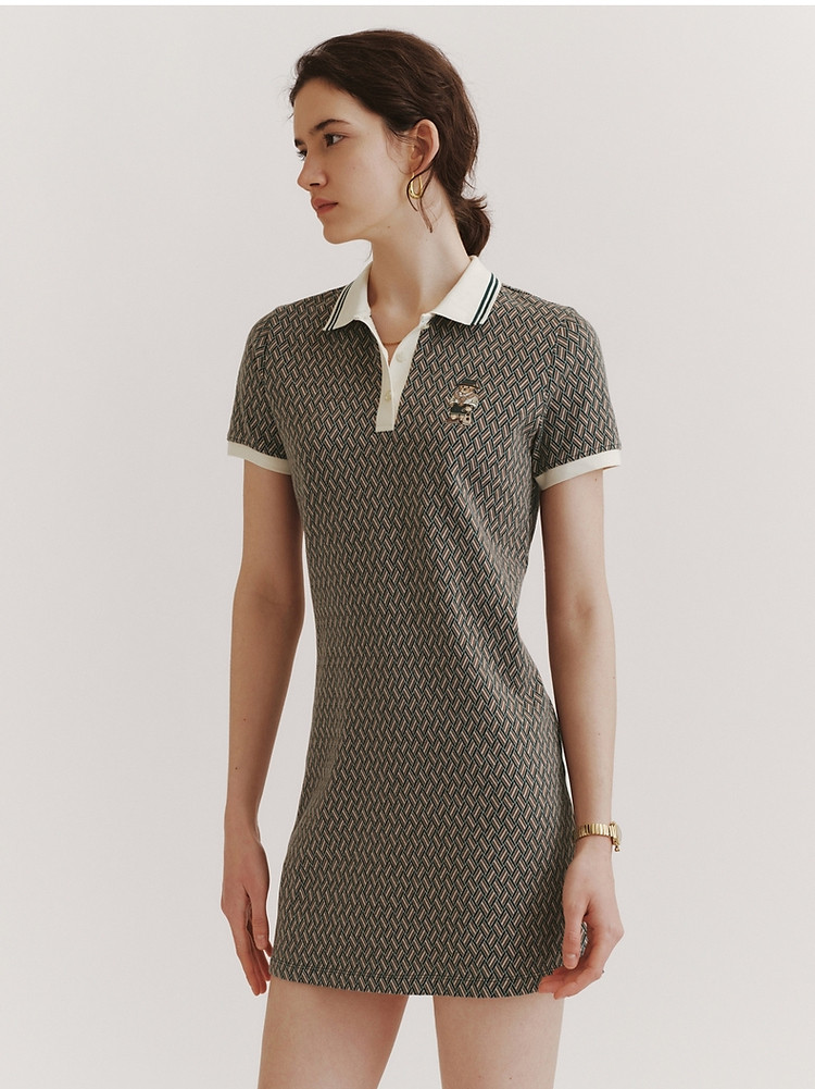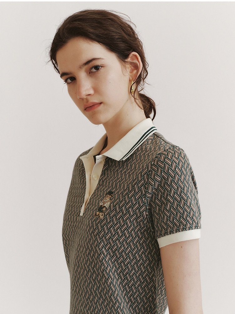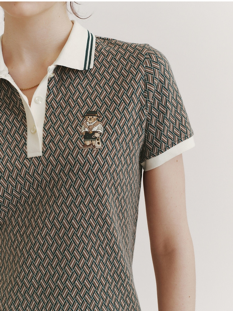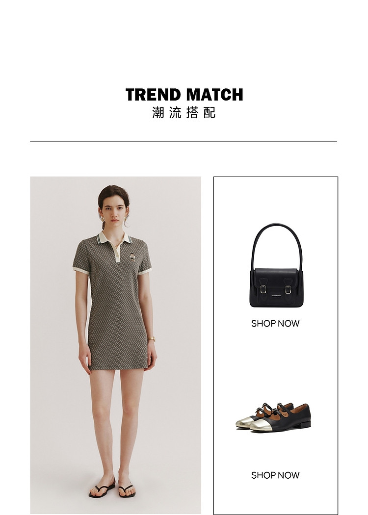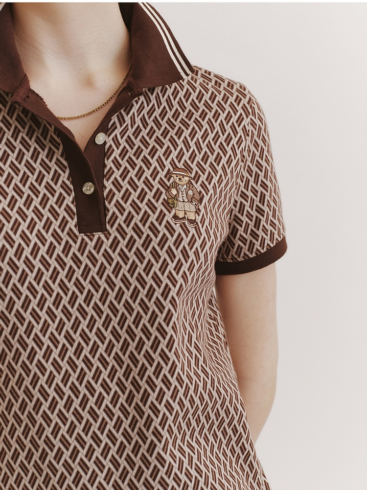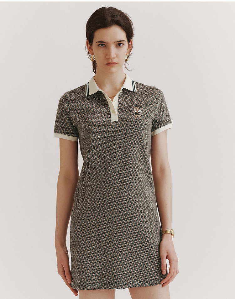 商品名称:小熊女装春夏学院通勤复古菱形格气质短袖Polo连衣裙 988929