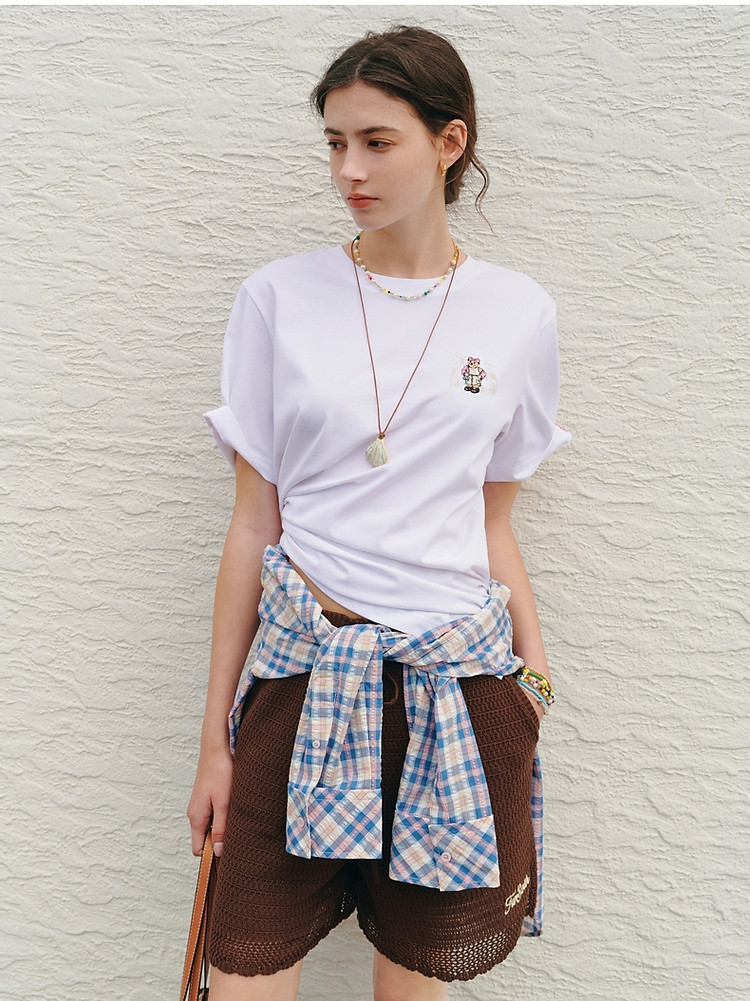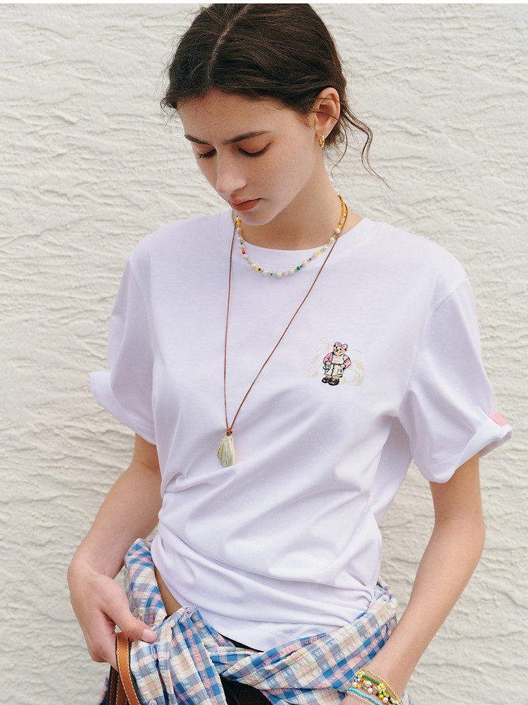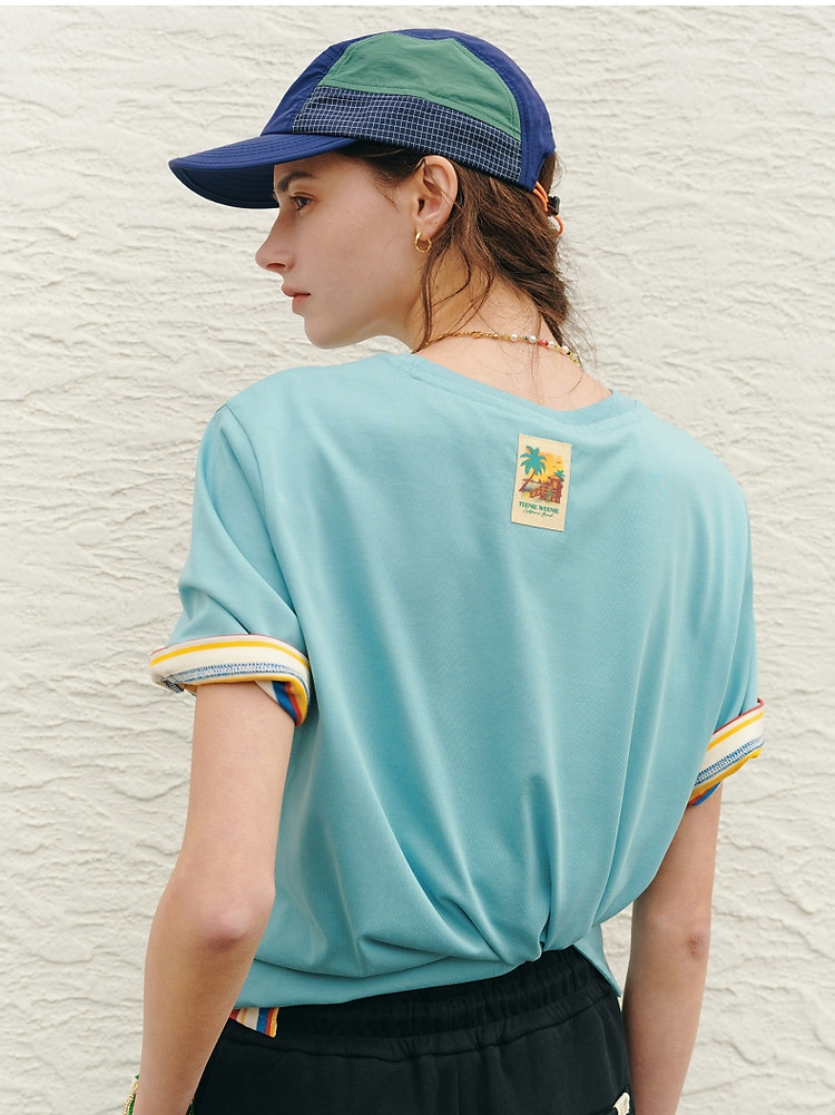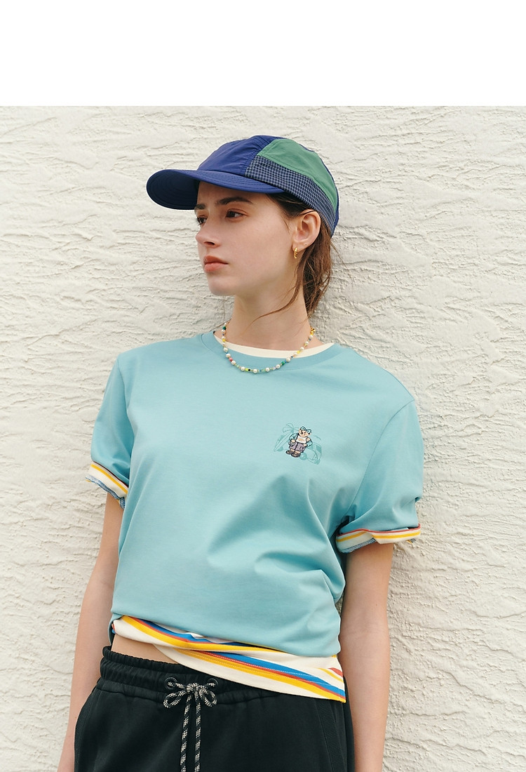 【UPF40+】短袖T恤女夏季防晒凉感刺绣圆领T恤上衣女 131201