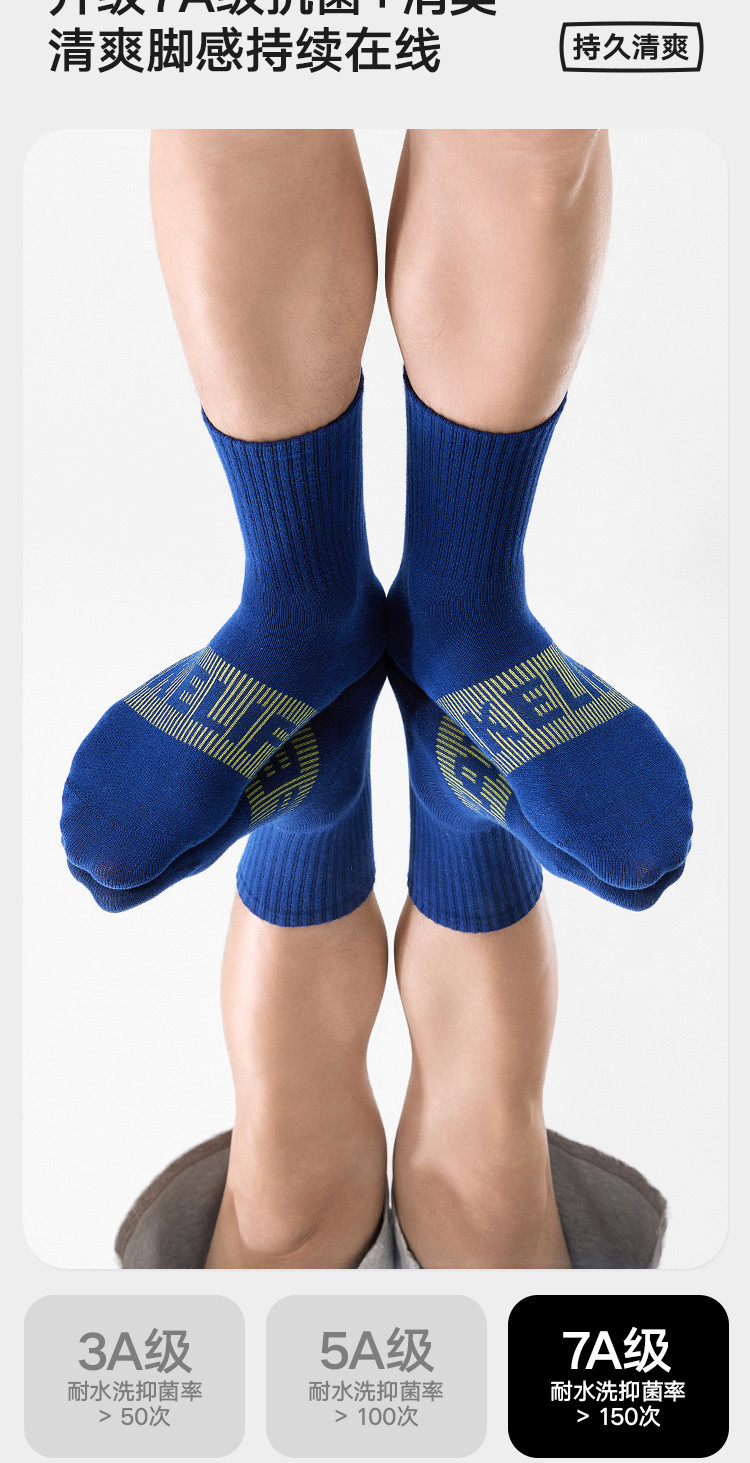 商品名称:【7A抑菌防臭】5双装男士运动袜子吸汗透气跑步健身篮球中筒袜 954906