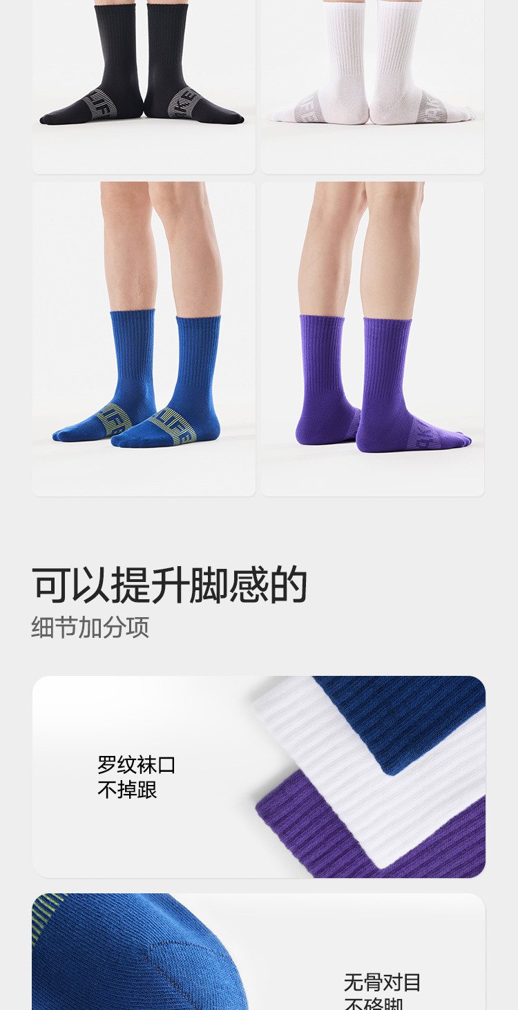 【7A抑菌防臭】5双装男士运动袜子吸汗透气跑步健身篮球中筒袜 954906