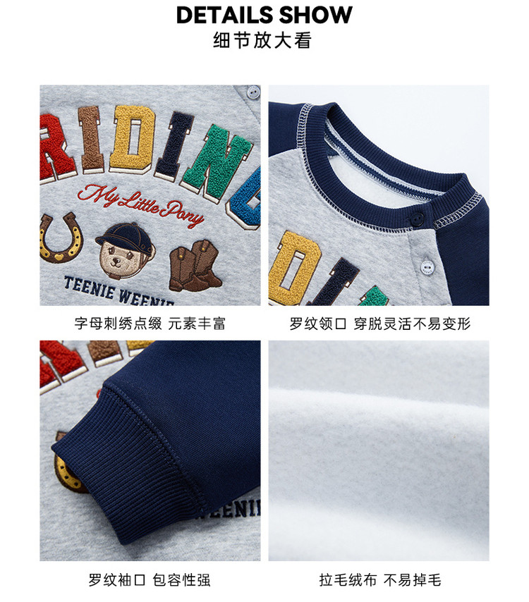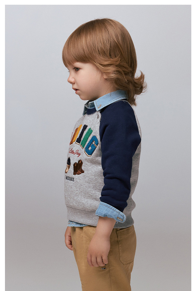 商品名称:小熊童装秋季款男女宝宝字母刺绣套头卫衣 358657