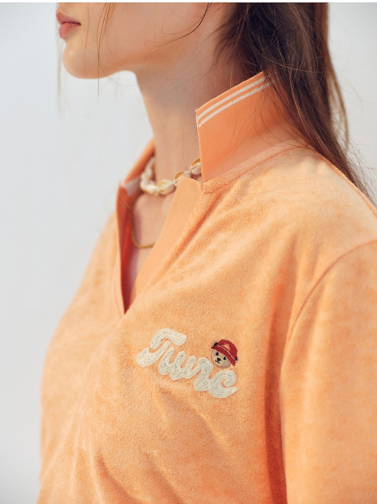 小熊夏季款毛巾布POLO领短袖T恤宽松时髦女士 948353