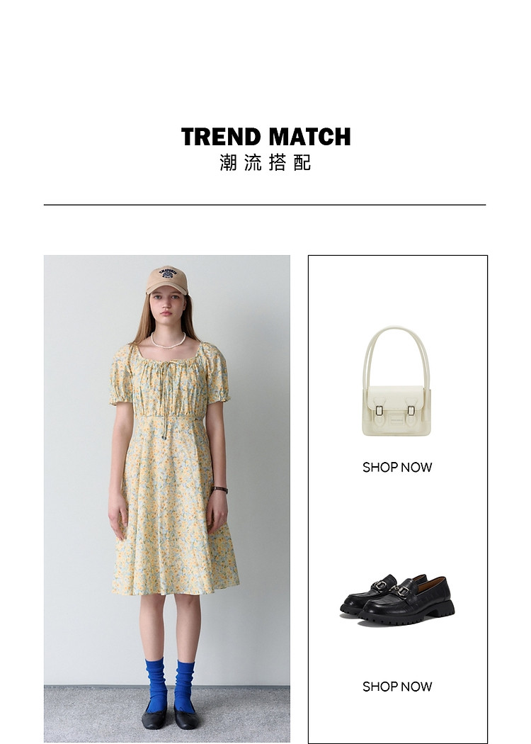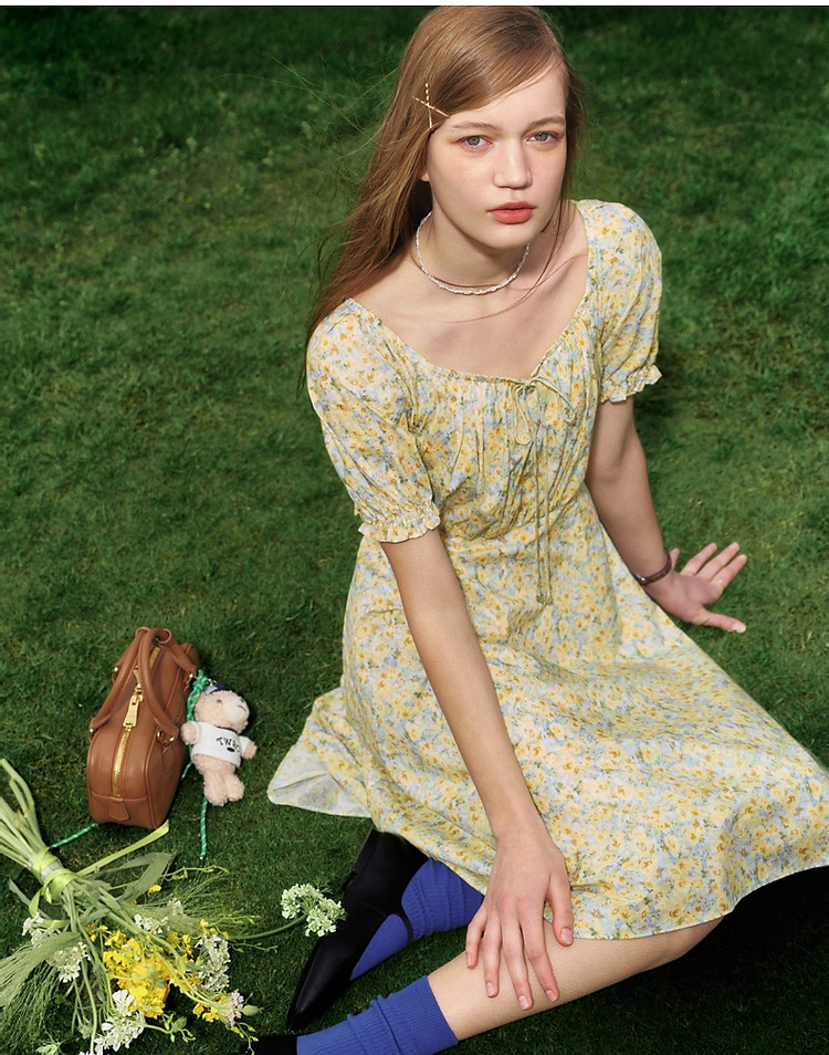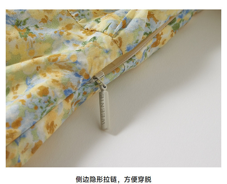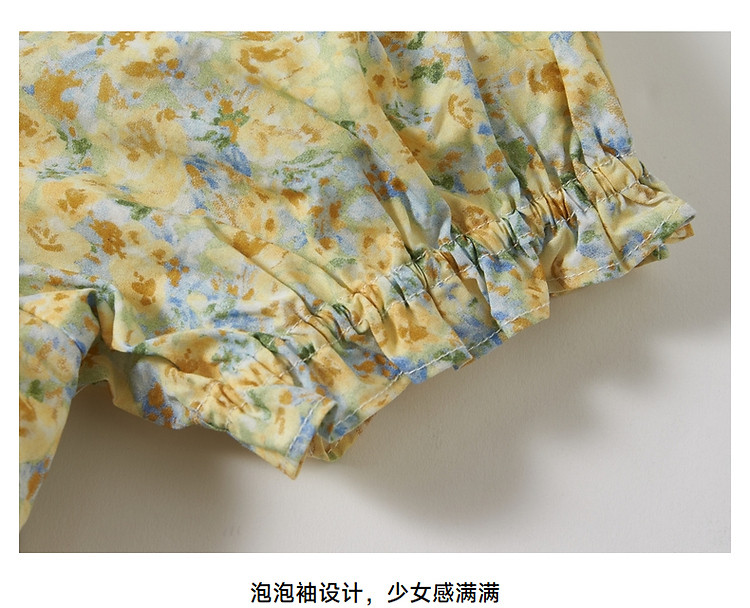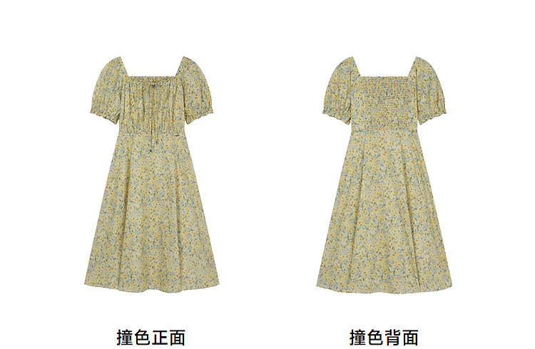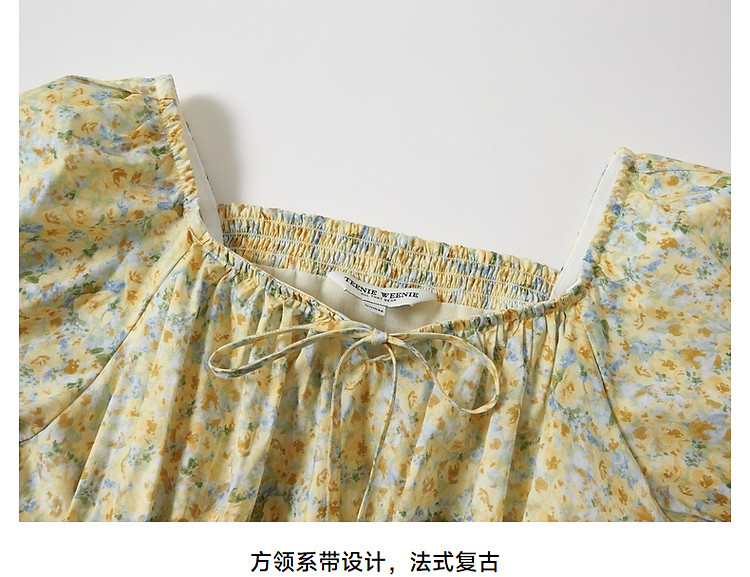 商品名称:小熊夏季款方领碎花连衣裙印花裙气质高腰女装 398721