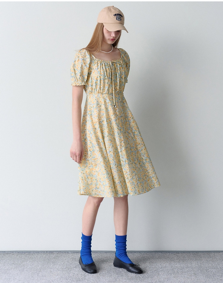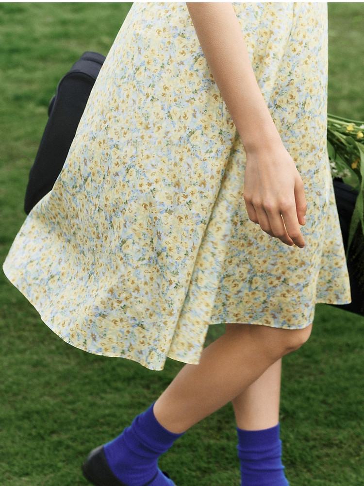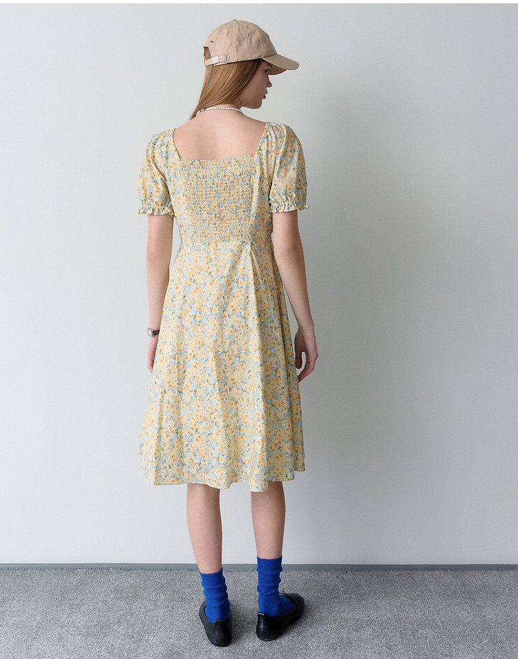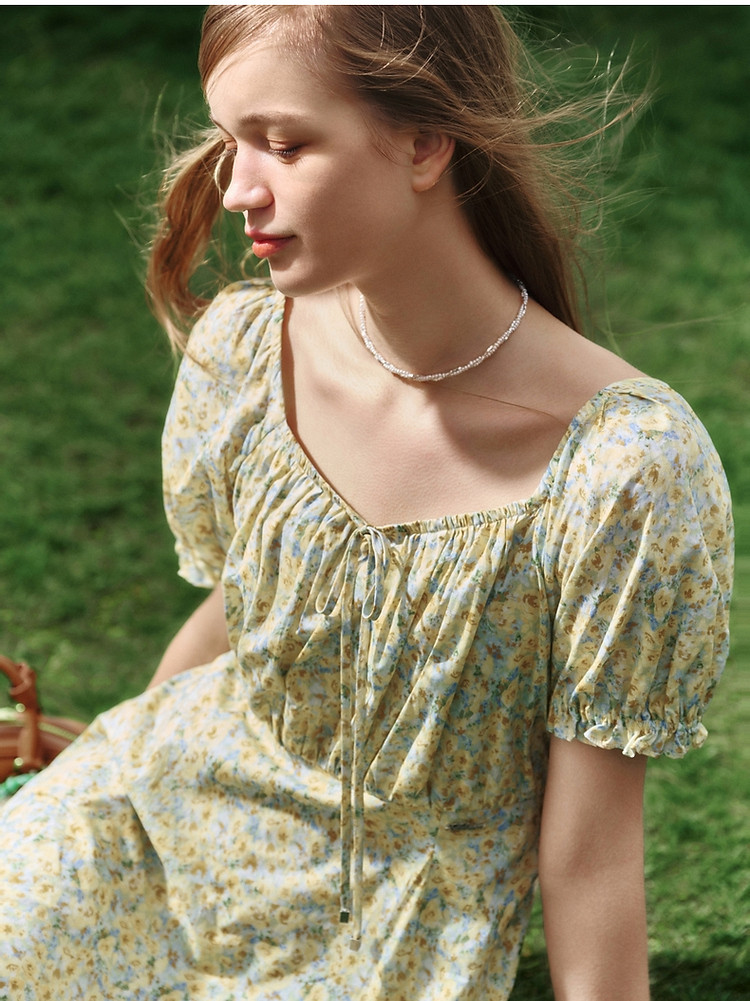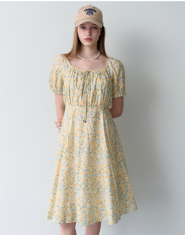 商品名称:小熊夏季款方领碎花连衣裙印花裙气质高腰女装 398721