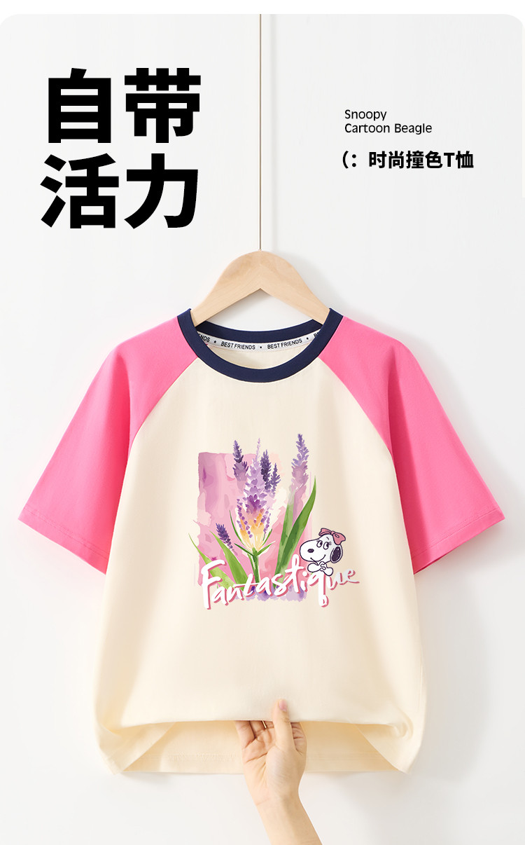 商品名称:【撞色插肩袖短t】夏季中大童短袖上衣宽松女童T恤 331224