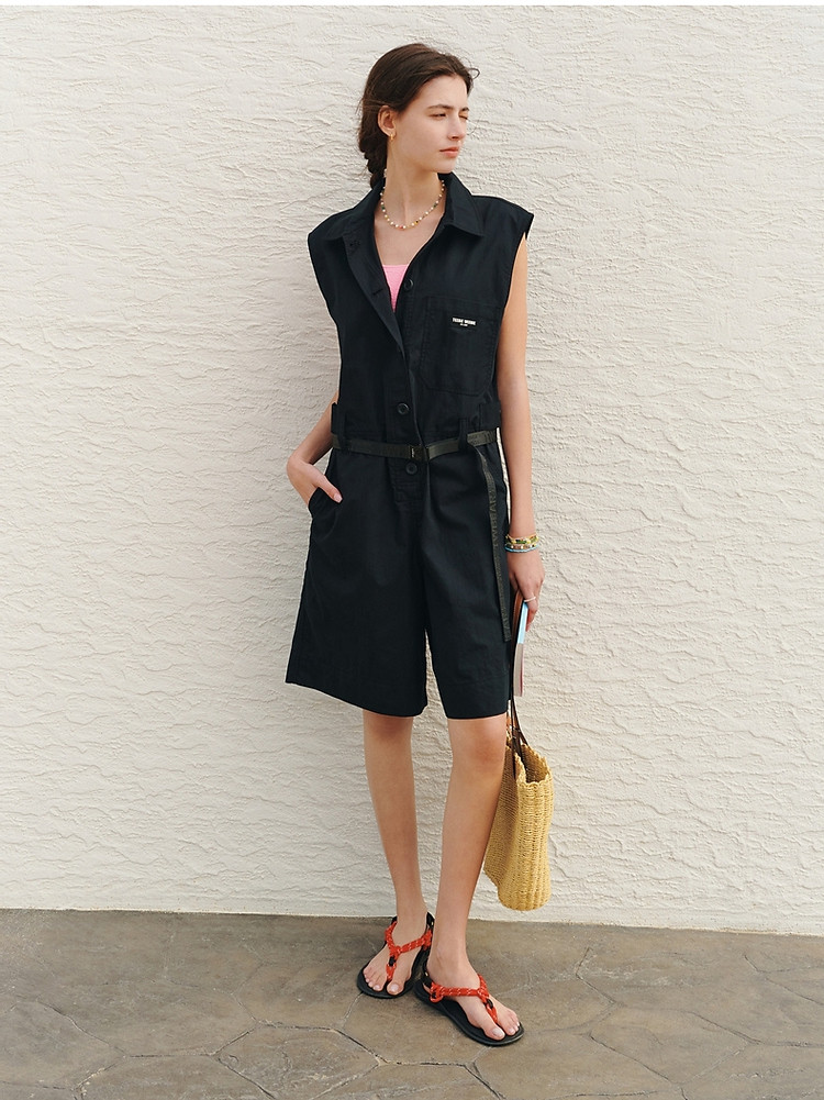 商品名称:女式休闲裤小熊时尚女装夏装工装风无袖连体裤A字宽松短裤 622977