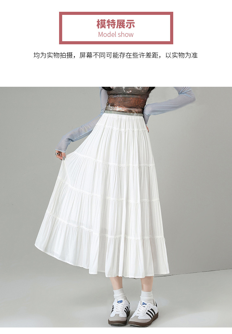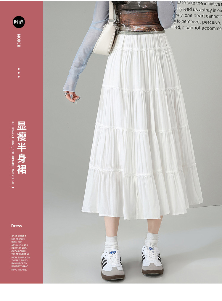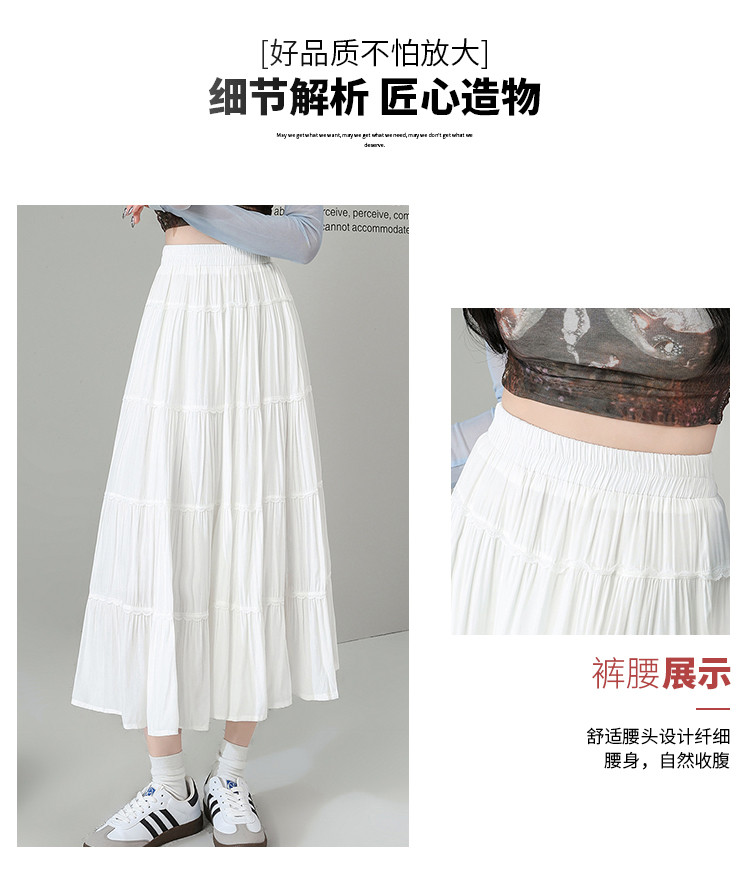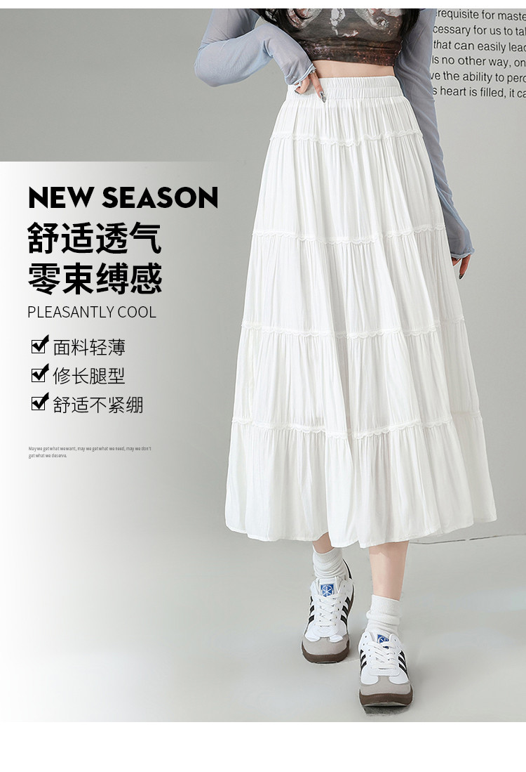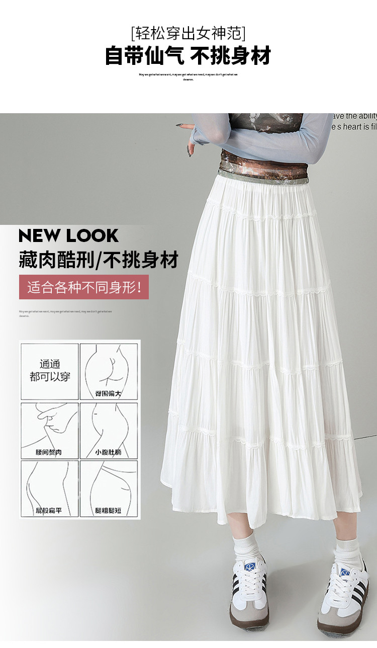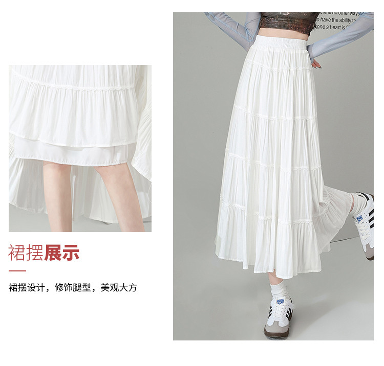 商品名称:春夏款法式温柔风百搭日常半身裙垂感褶皱中长款高腰蓬蓬裙半截裙 389835