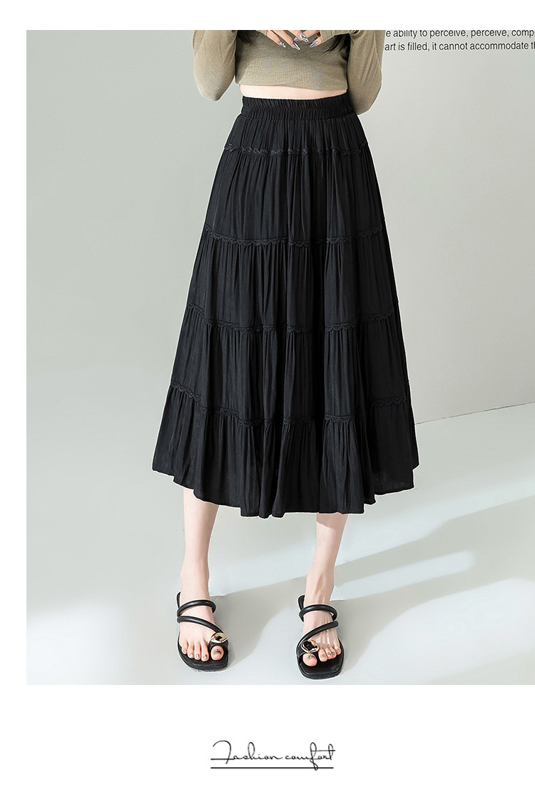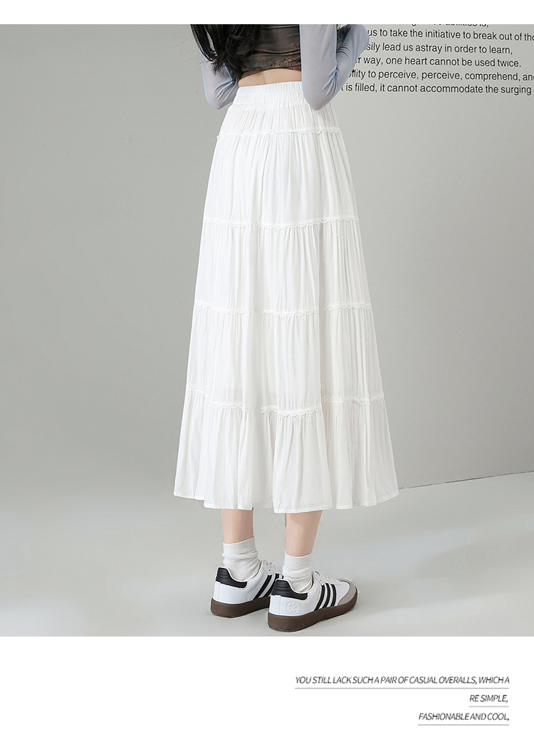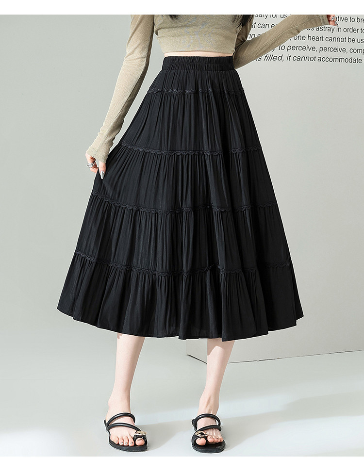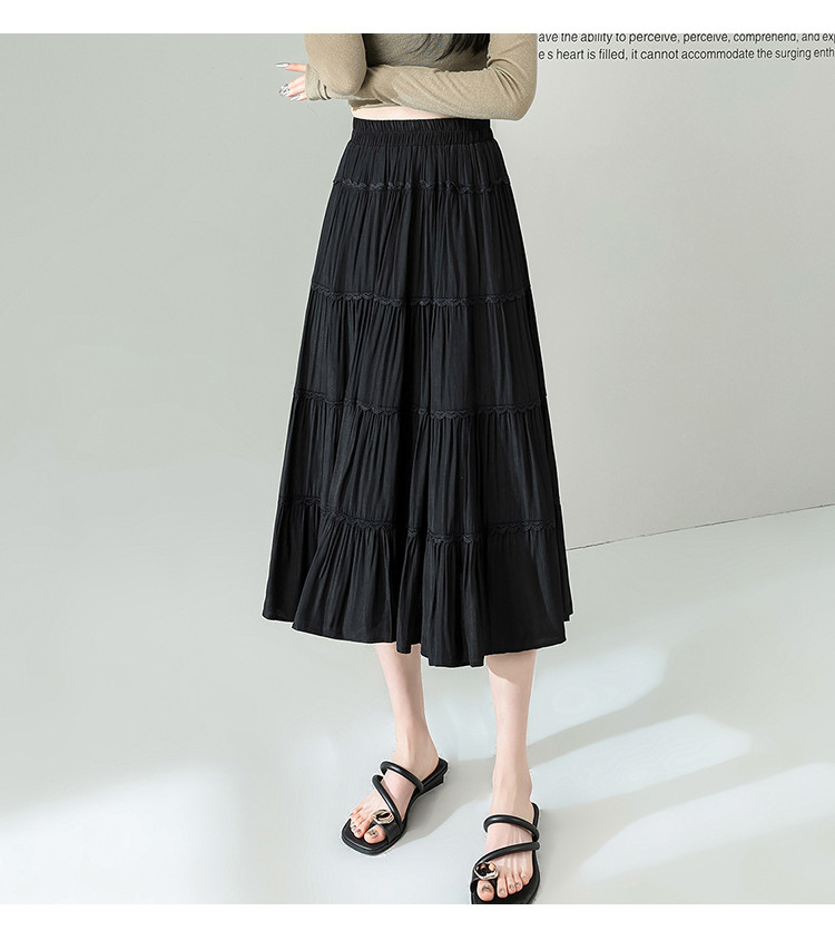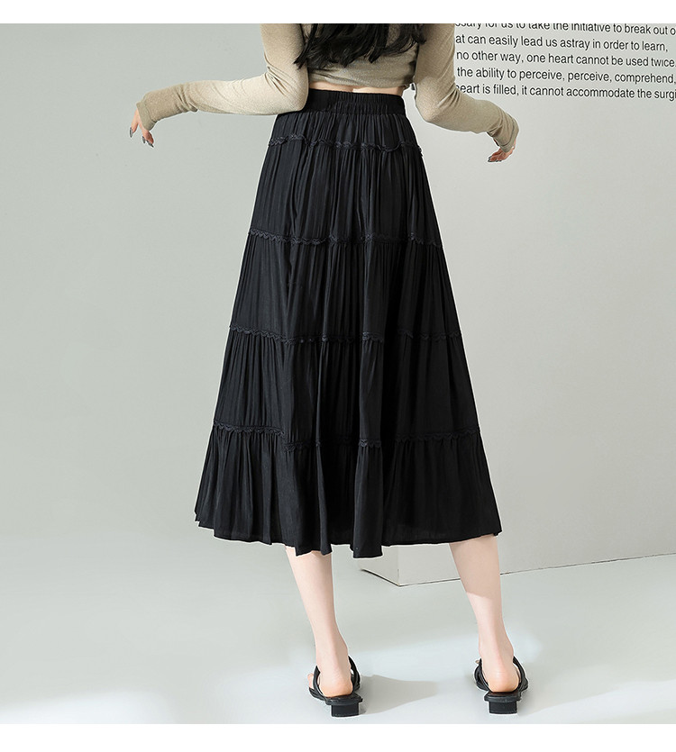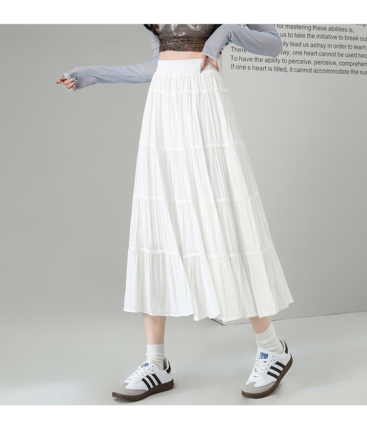 商品名称:春夏款法式温柔风百搭日常半身裙垂感褶皱中长款高腰蓬蓬裙半截裙 389835