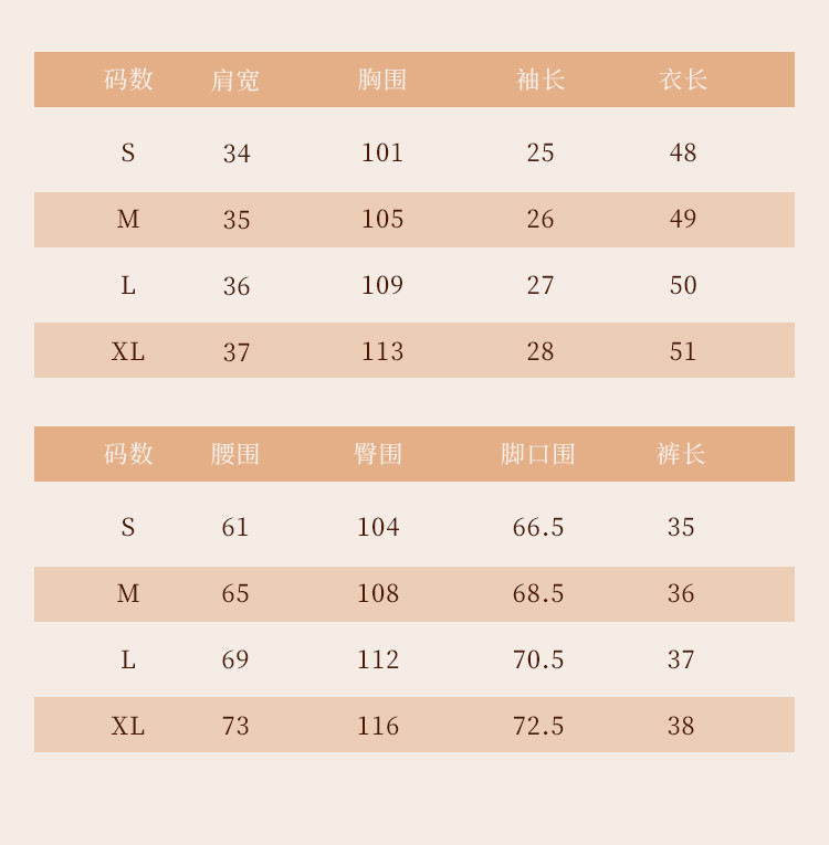 | 尺码 | 肩宽(cm) | 袖长(cm) | 上装号型 | 下装号型 | 衣长(cm) | 腰围(cm) | 裤长(cm) | 臀围(cm) | 胸围(cm) | 号型 |