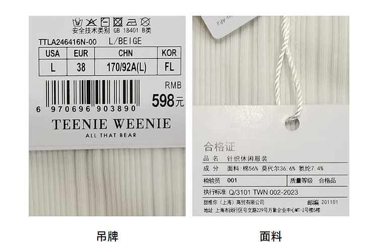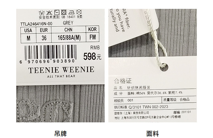 商品名称:长袖T恤【莱卡】小熊莫代尔混纺假两件长袖T恤 341505