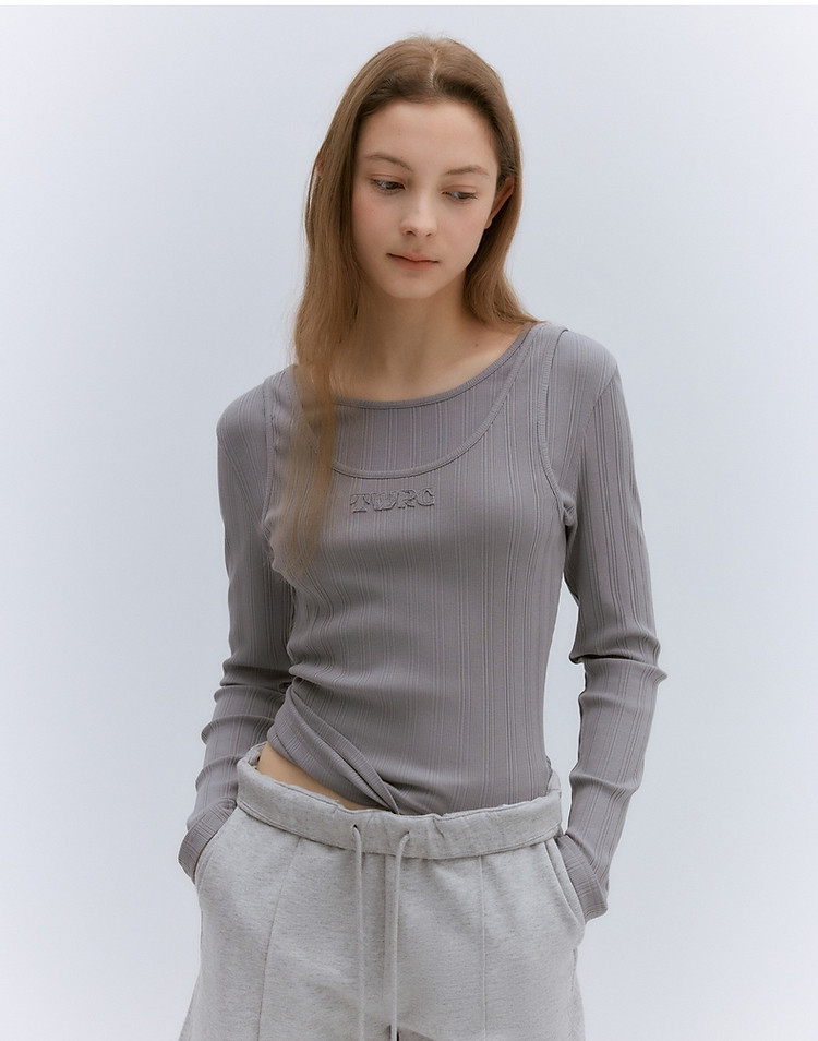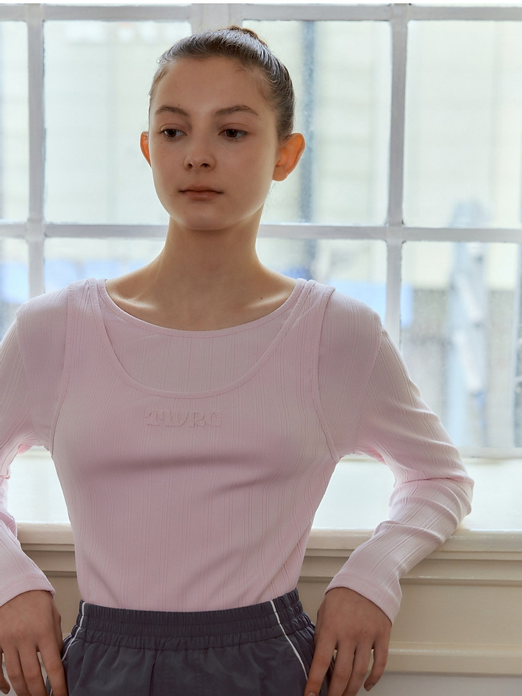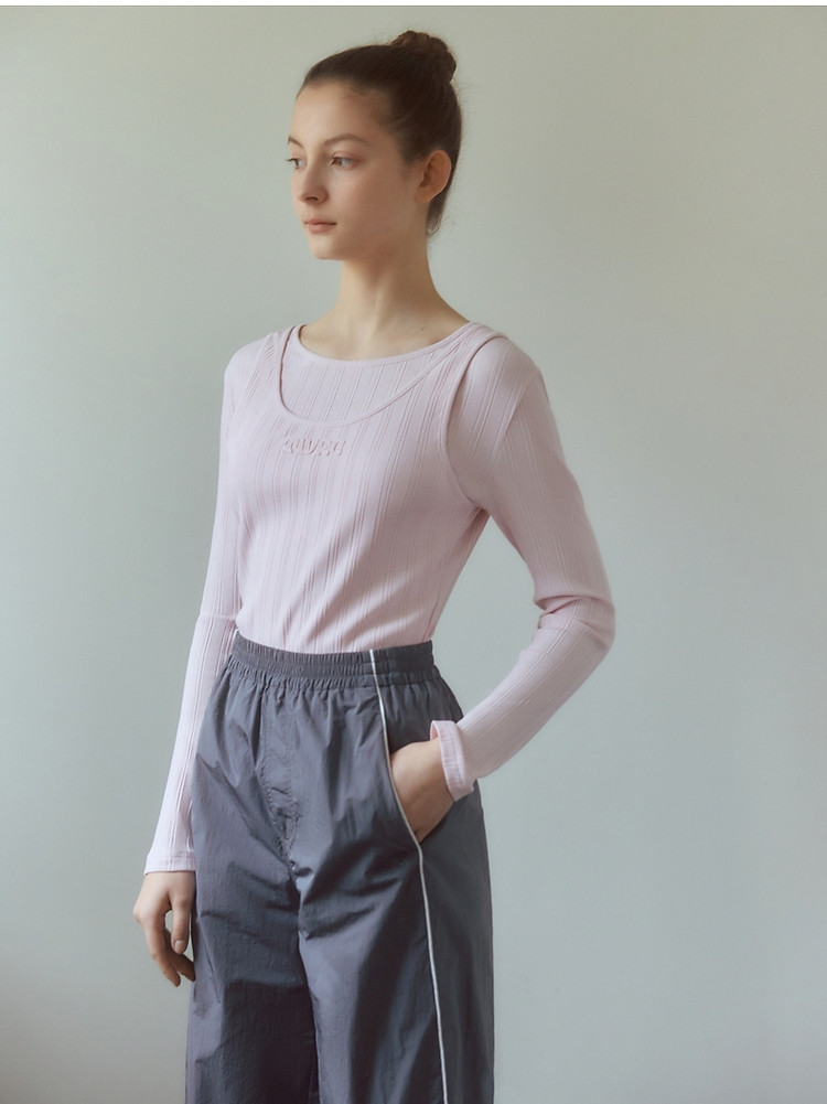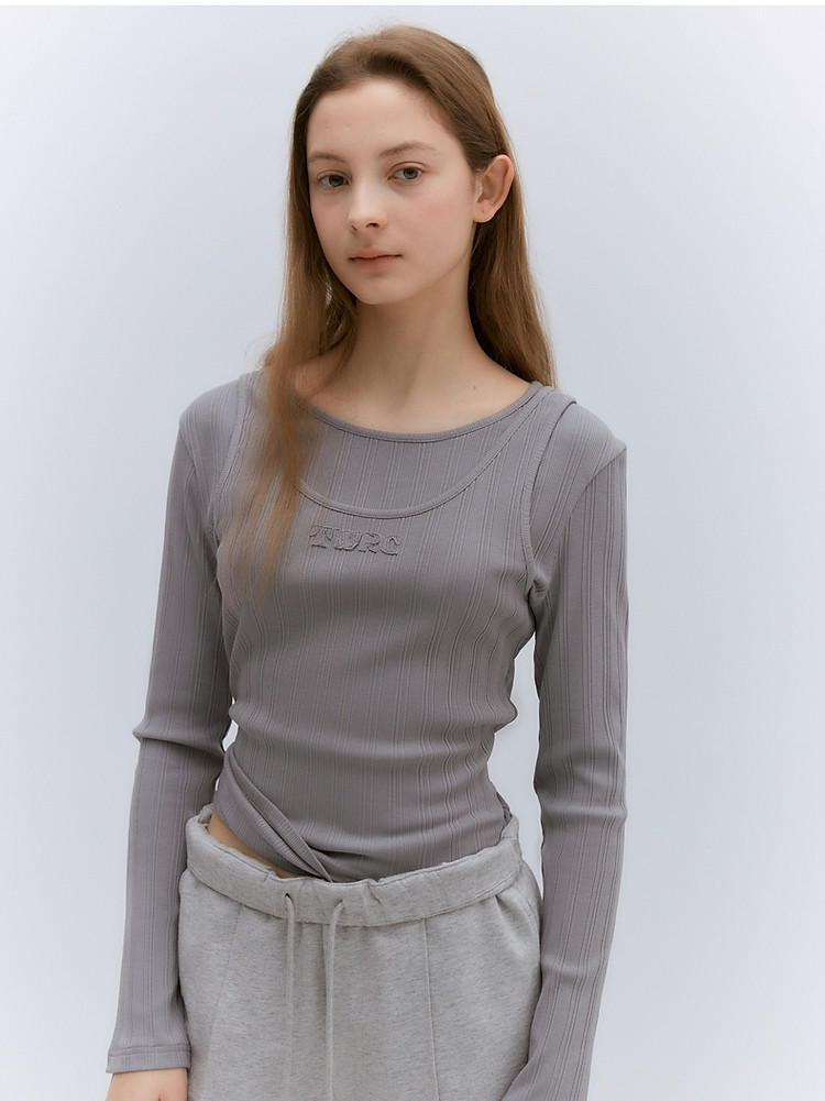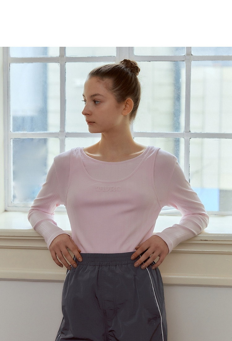 长袖T恤【莱卡】小熊莫代尔混纺假两件长袖T恤 341505