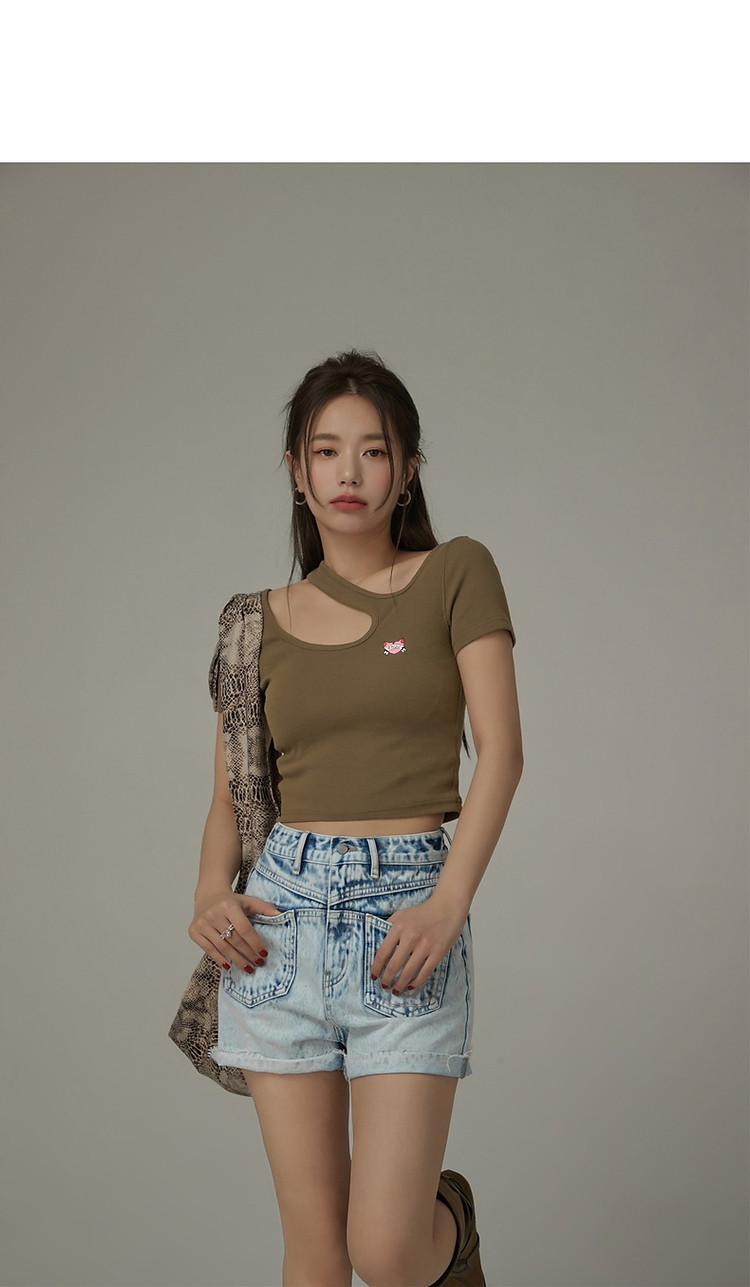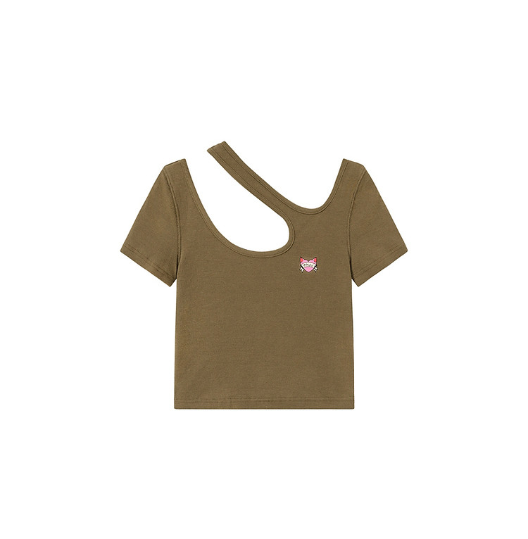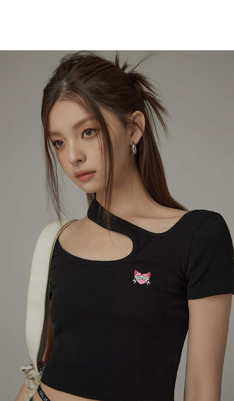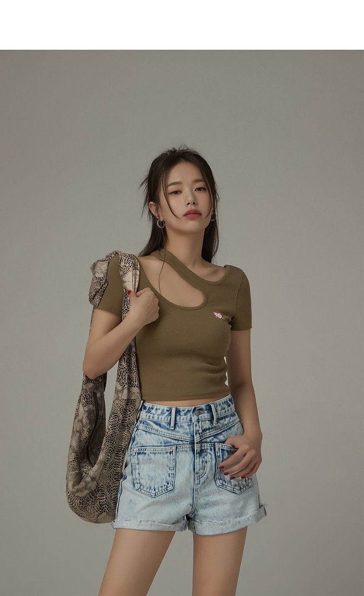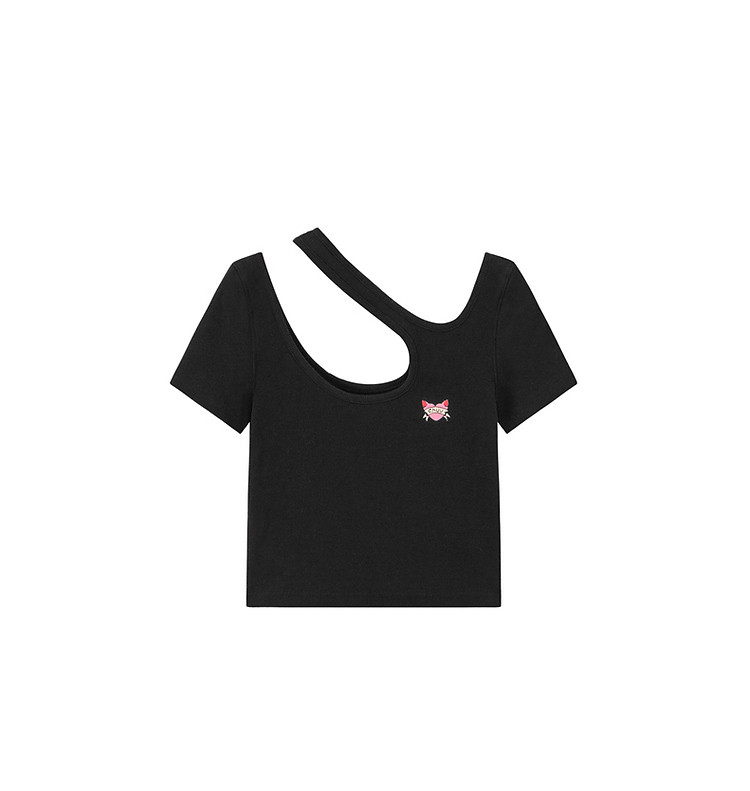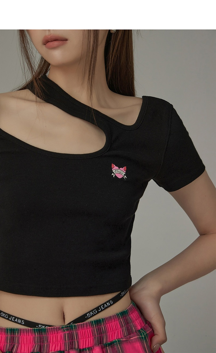 不对称修身T恤女春夏辣妹个性显瘦设计感短款上衣 418707