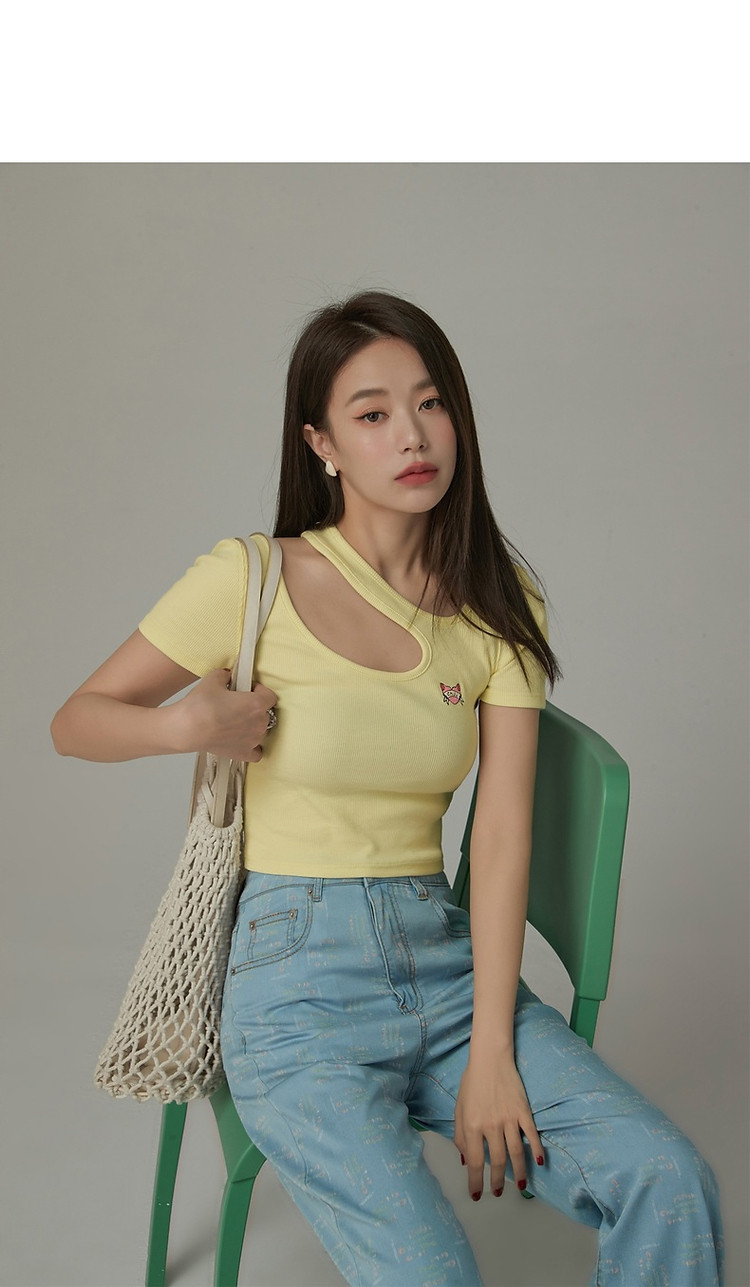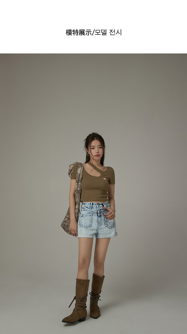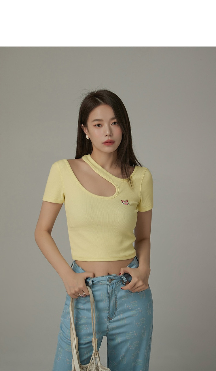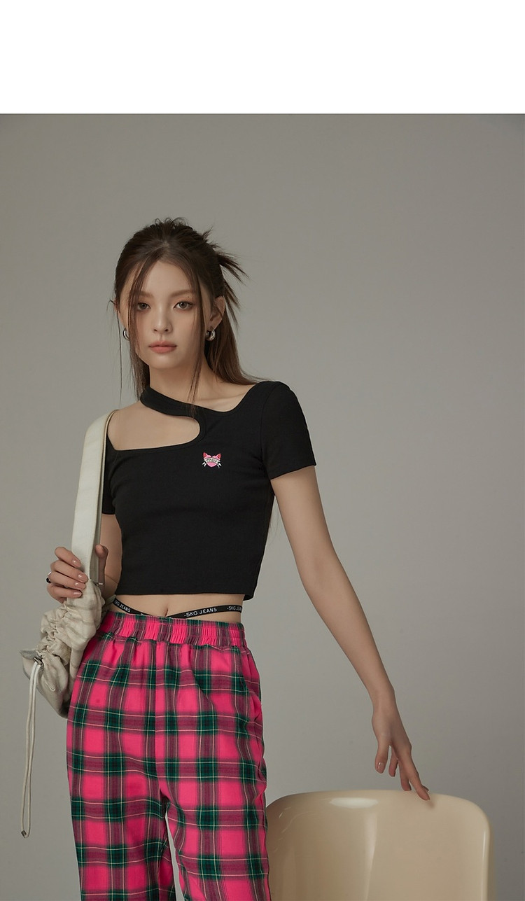 不对称修身T恤女春夏辣妹个性显瘦设计感短款上衣 418707