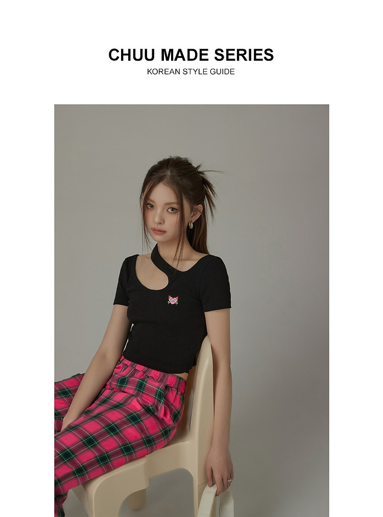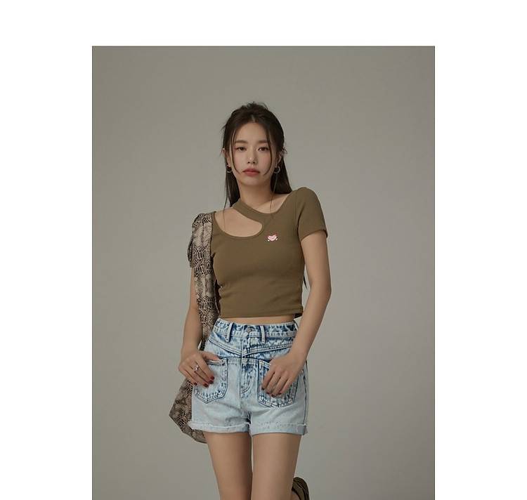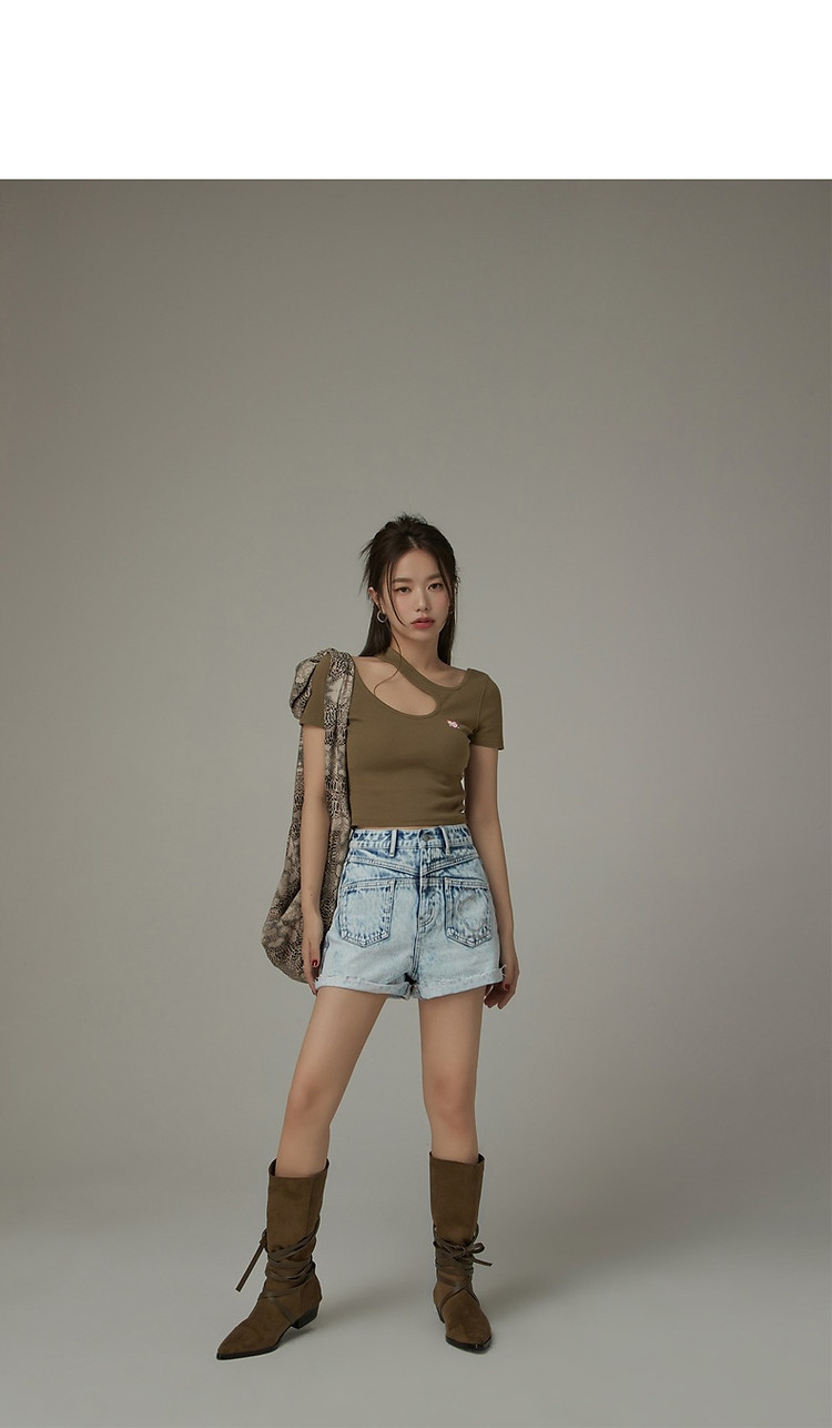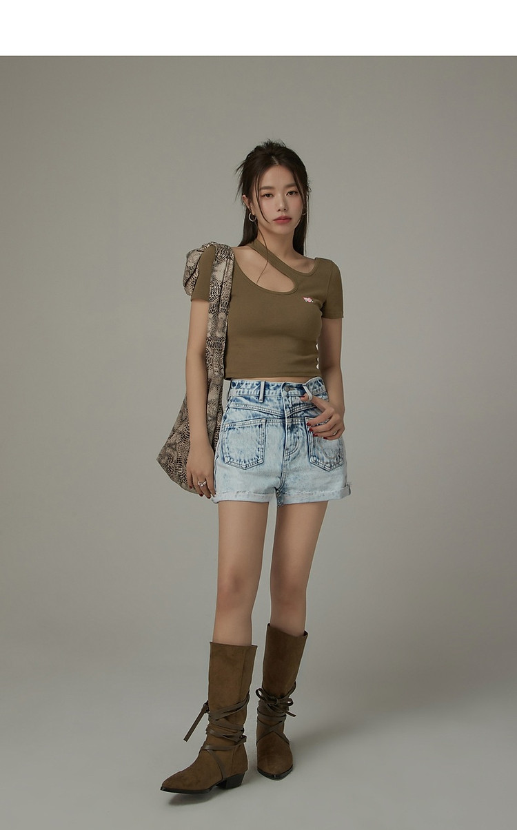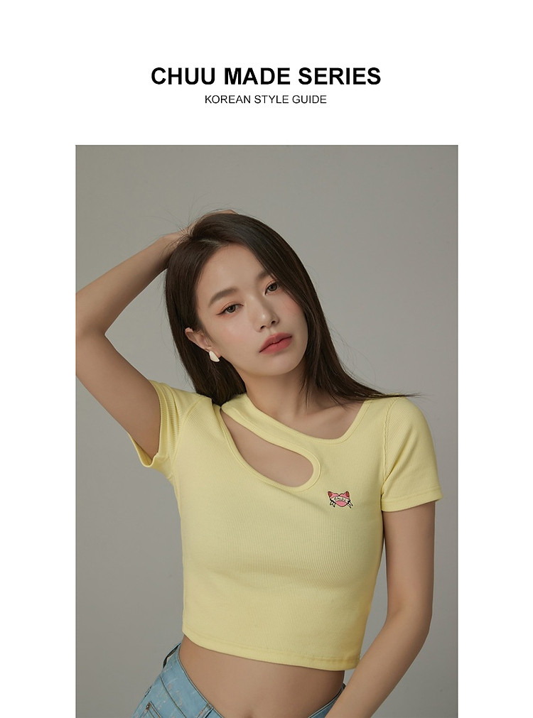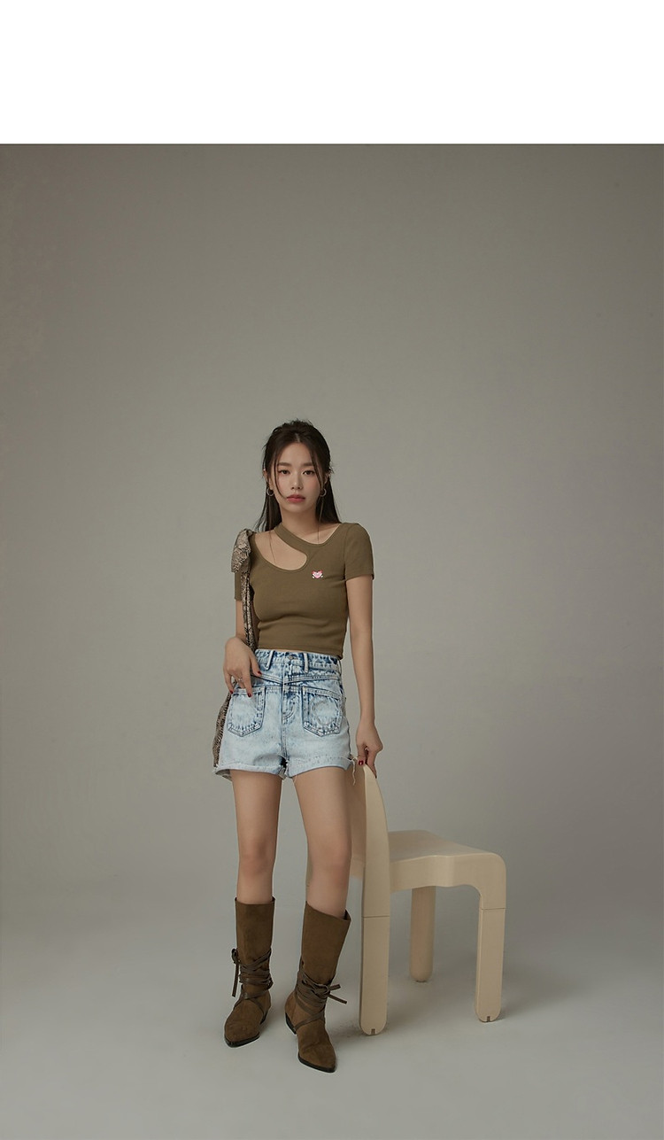 不对称修身T恤女春夏辣妹个性显瘦设计感短款上衣 418707