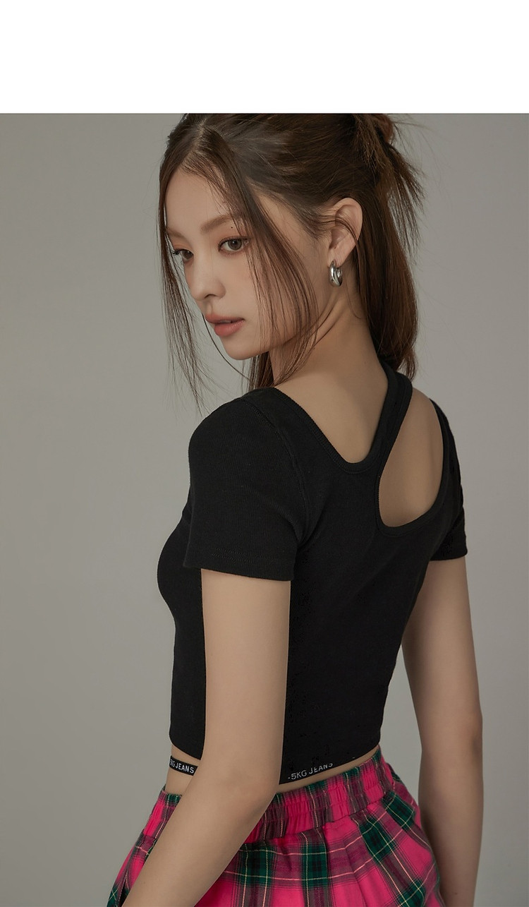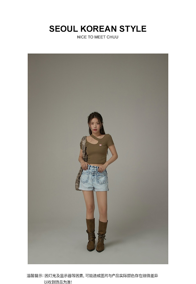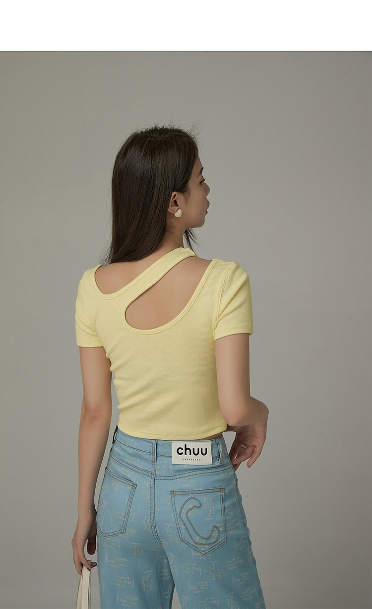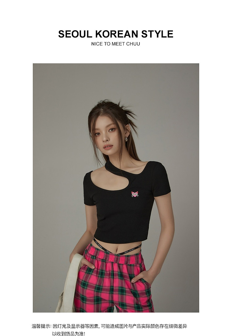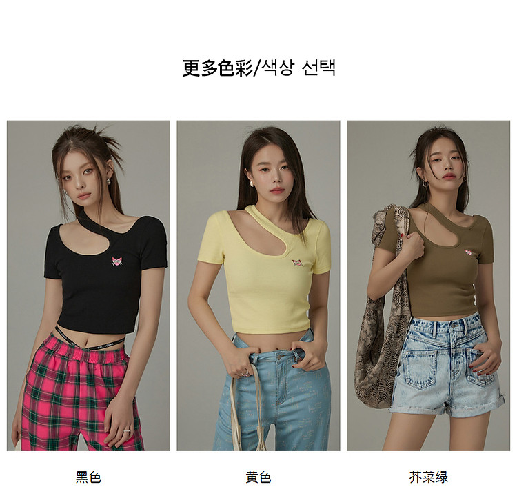 商品名称:不对称修身T恤女春夏辣妹个性显瘦设计感短款上衣 418707