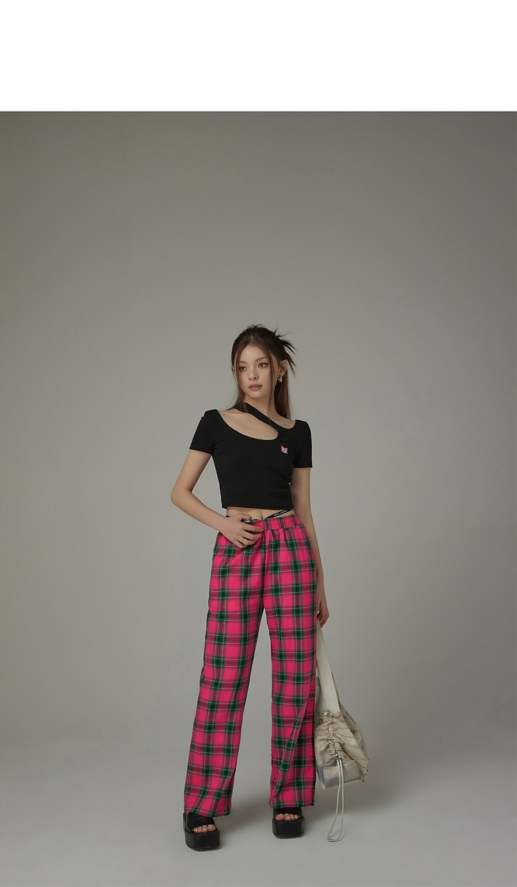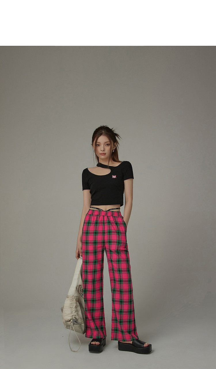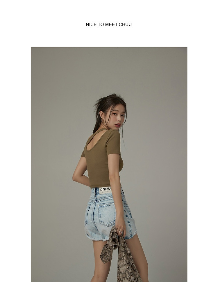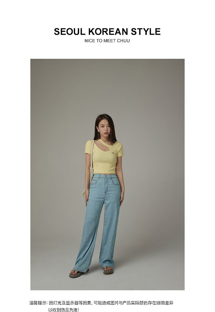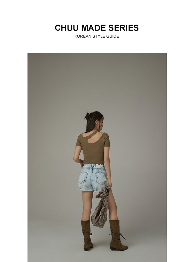 商品名称:不对称修身T恤女春夏辣妹个性显瘦设计感短款上衣 418707