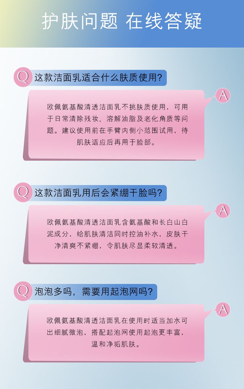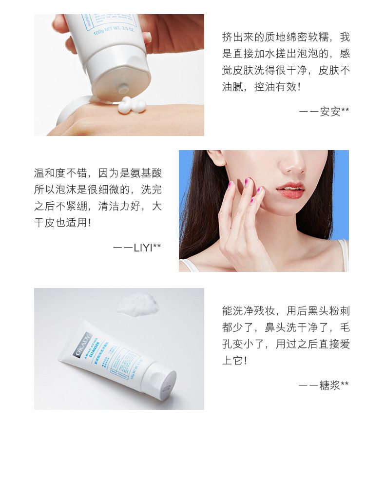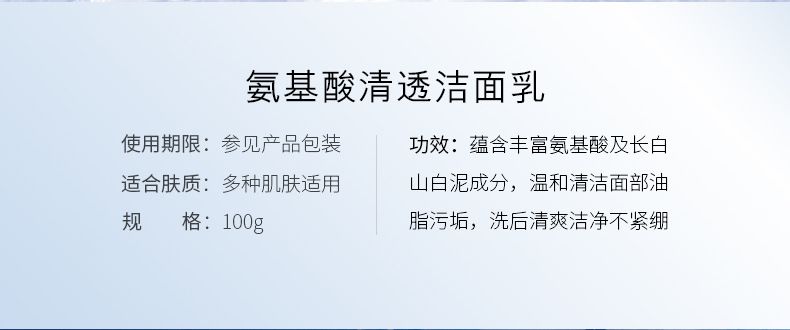 商品名称:欧佩氨基酸清透洁面乳100g温和清洁面部泡沫洗面奶