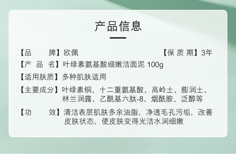 商品名称:欧佩(O'KADY)叶绿素氨基酸细嫩洁面泥洗面奶 100g