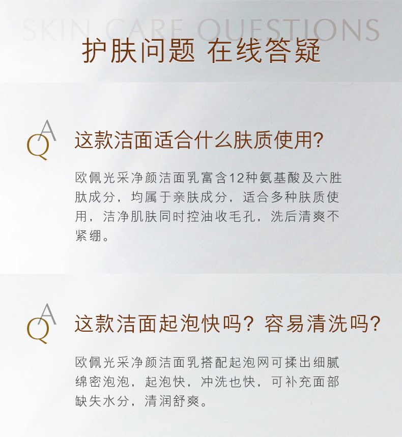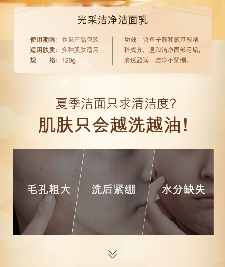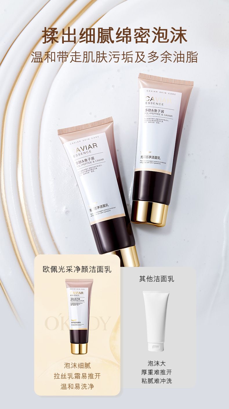商品名称:【2支装】欧佩欧佩多肽鱼子酱氨基酸光采净颜洁面乳120g温和清洁补水不紧绷洗面奶