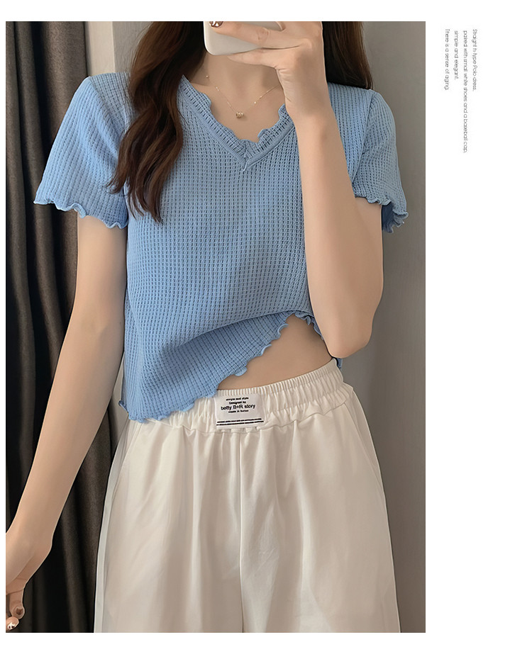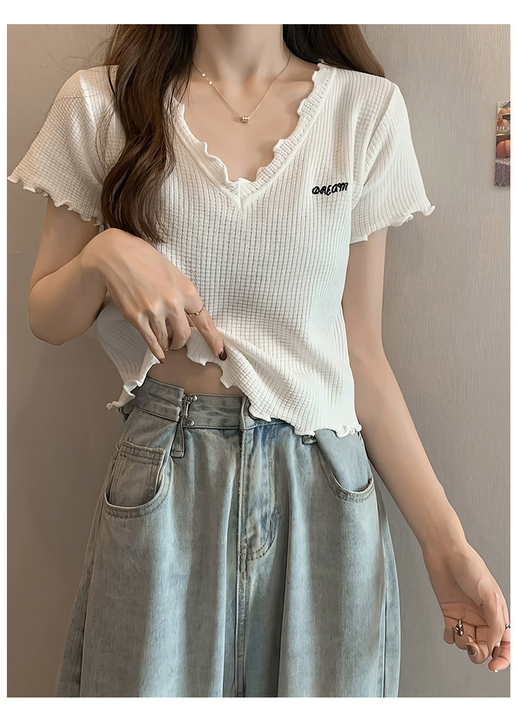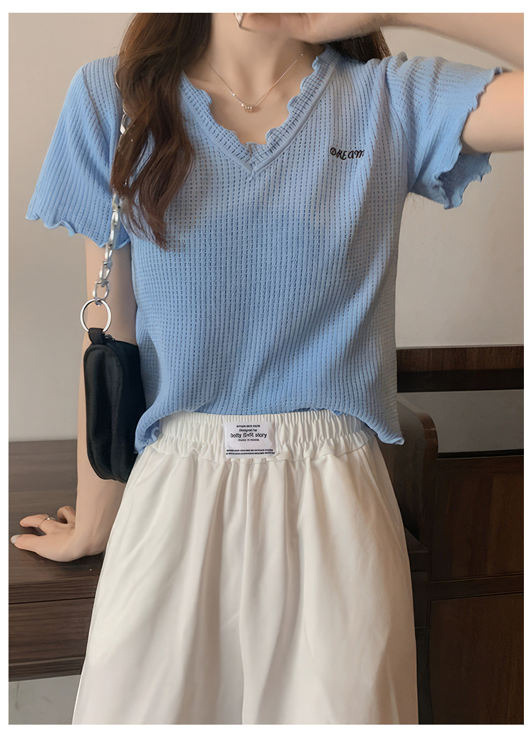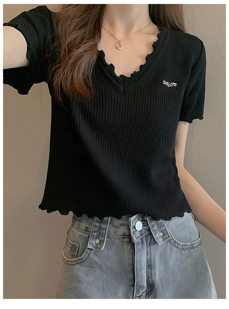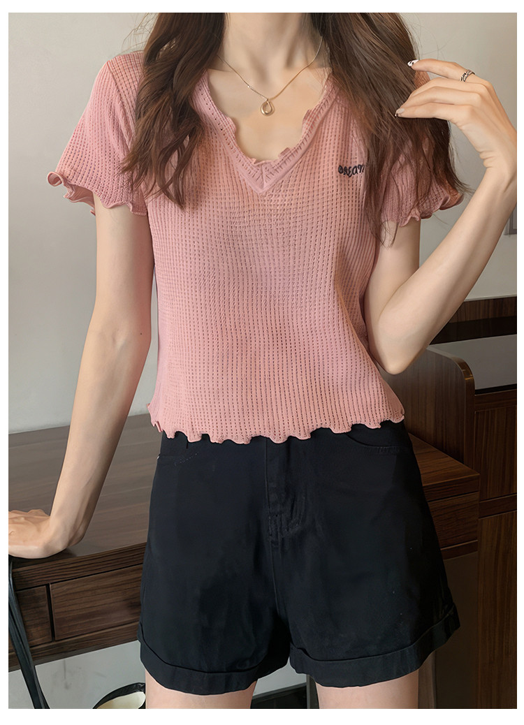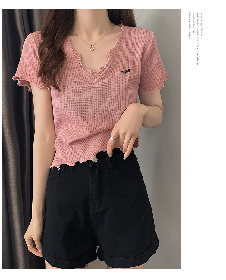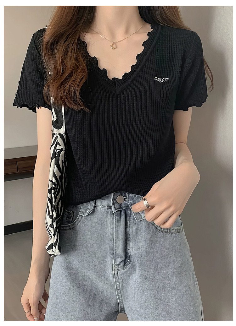 商品名称:短袖针织衫t恤女设计感短袖t恤女短款短袖针织衫上衣 032963