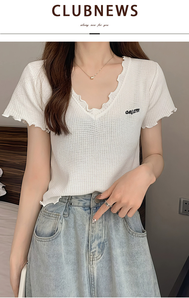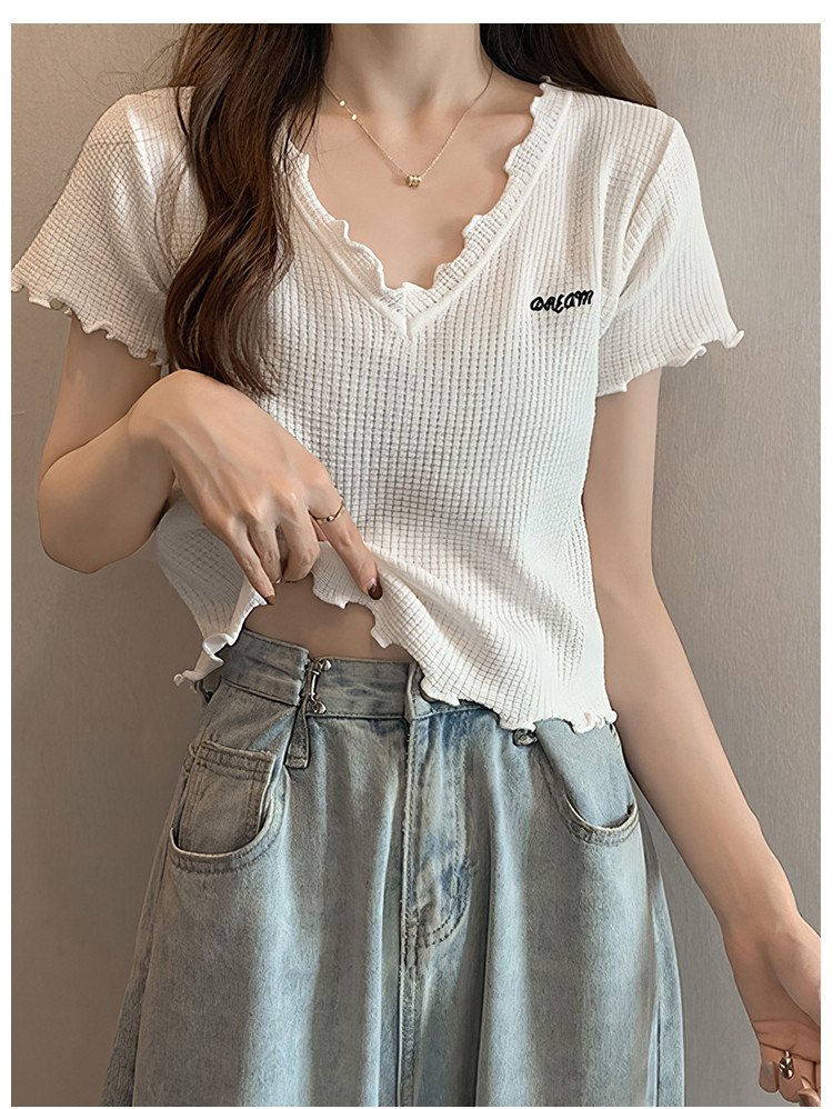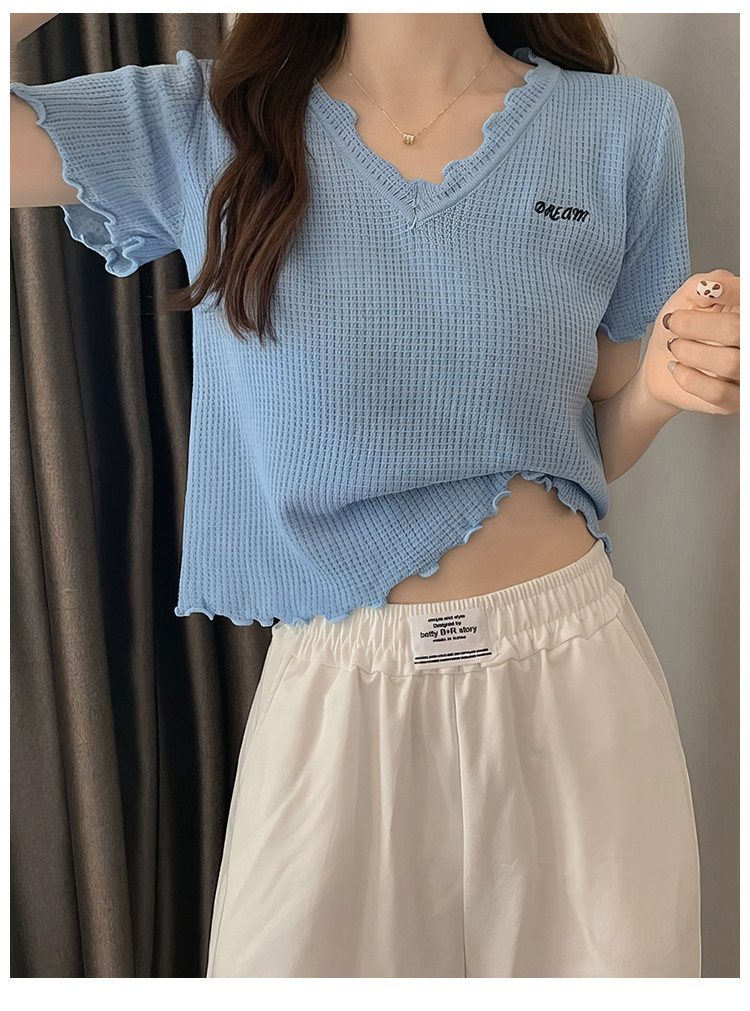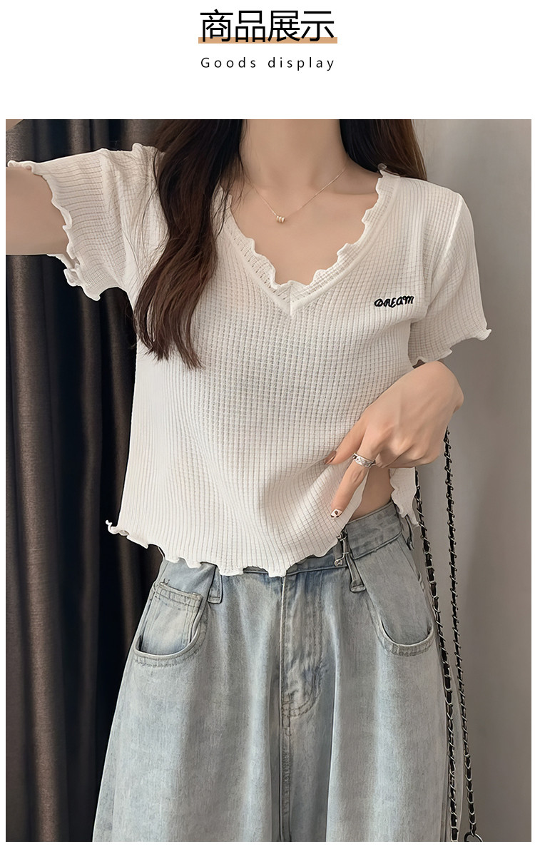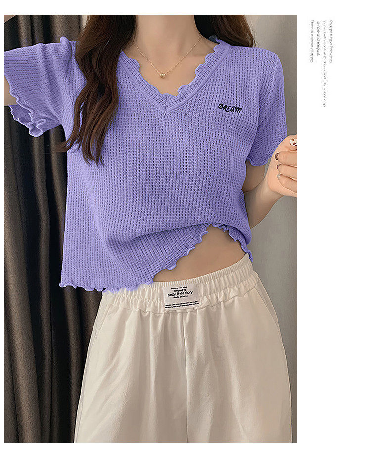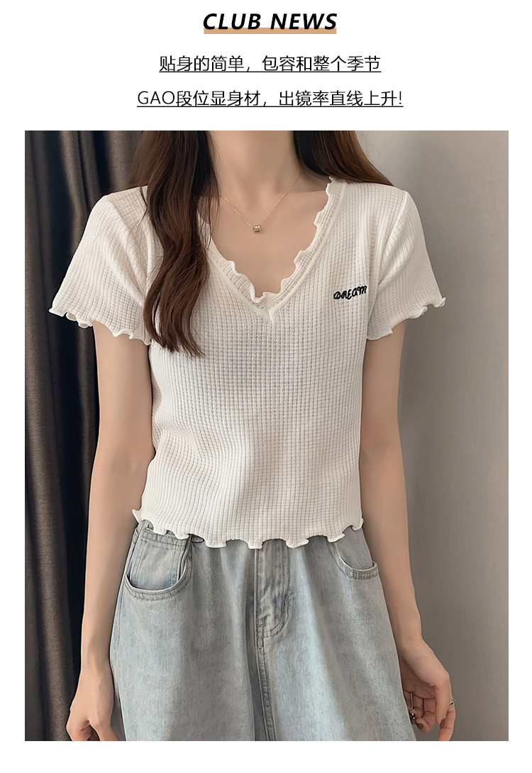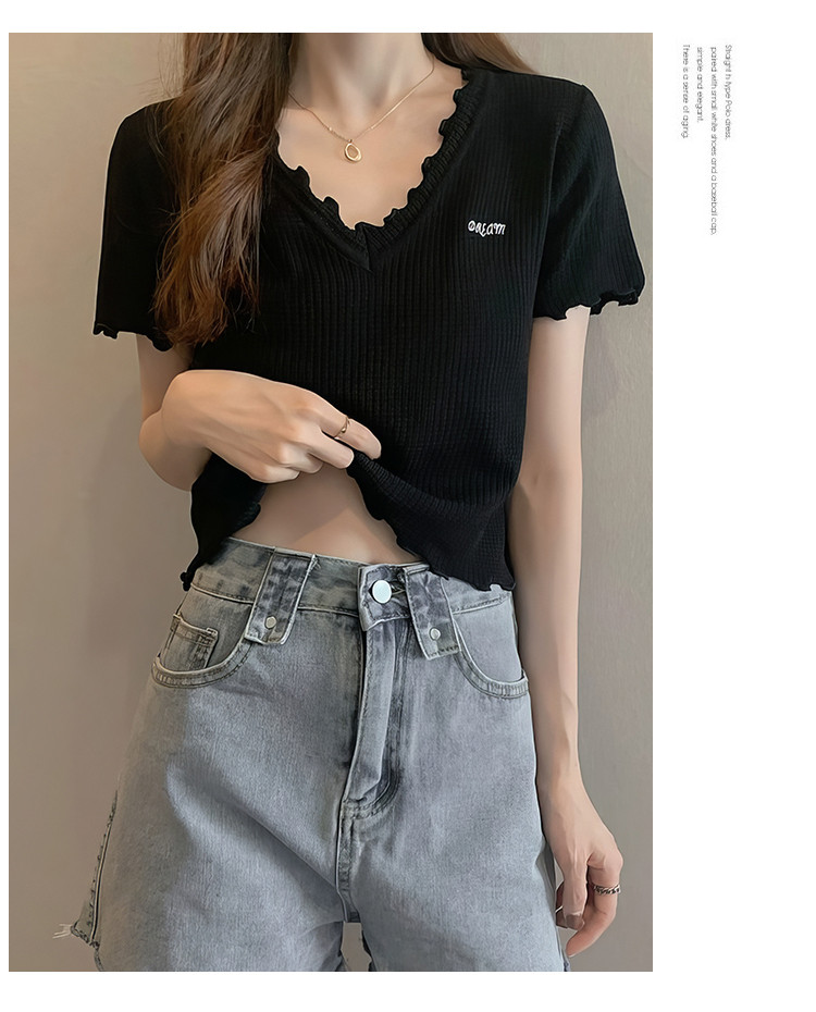 商品名称:短袖针织衫t恤女设计感短袖t恤女短款短袖针织衫上衣 032963
