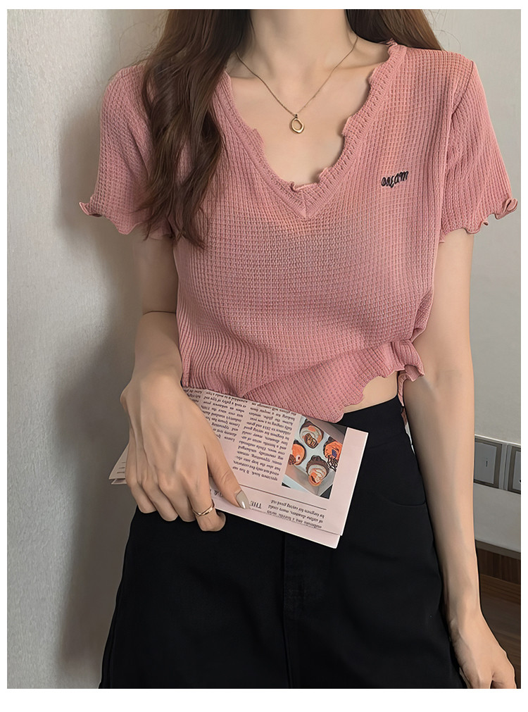 短袖针织衫t恤女设计感短袖t恤女短款短袖针织衫上衣 032963
