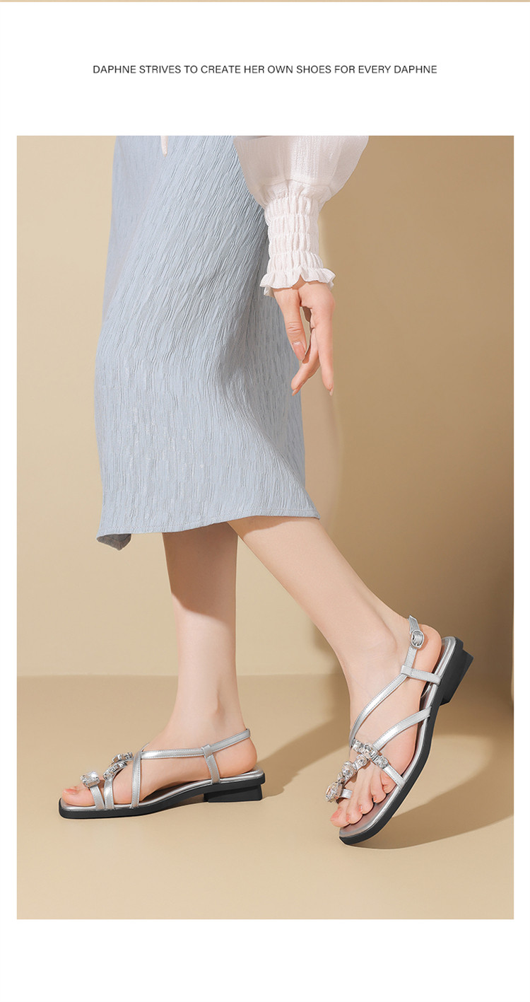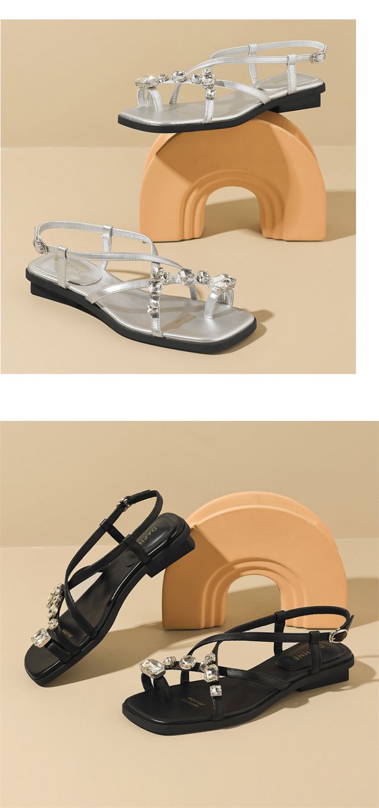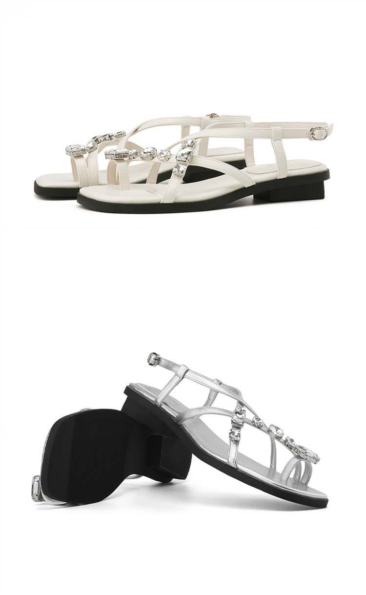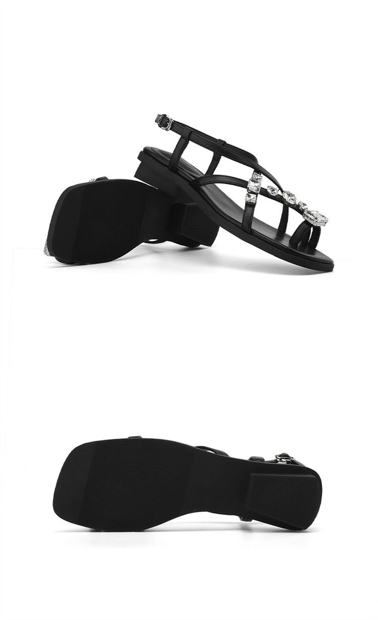商品名称:夏季罗马凉鞋女外穿凉拖鞋时尚水钻粗跟套趾通勤鞋沙滩凉鞋平底鞋 362455