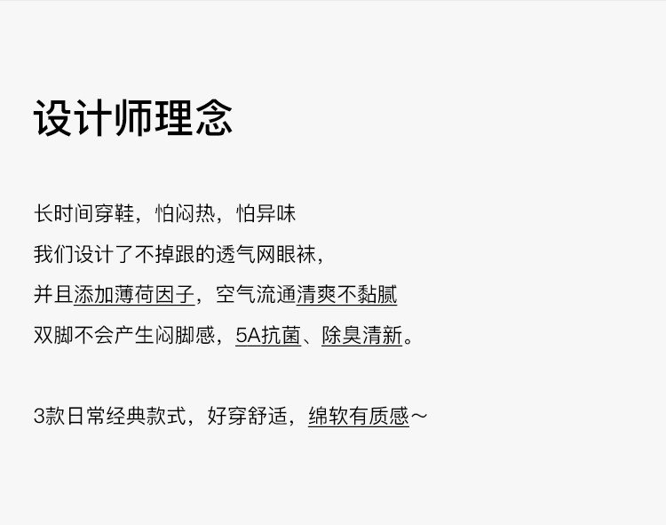 商品名称:【透气网眼】轻薄短筒袜季7A抗菌消臭纯色女袜3双装 101632