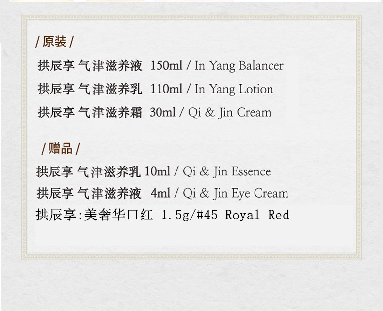 商品名称:Whoo后 拱辰享气韵生润颜水乳护肤礼盒套装 版本随机发