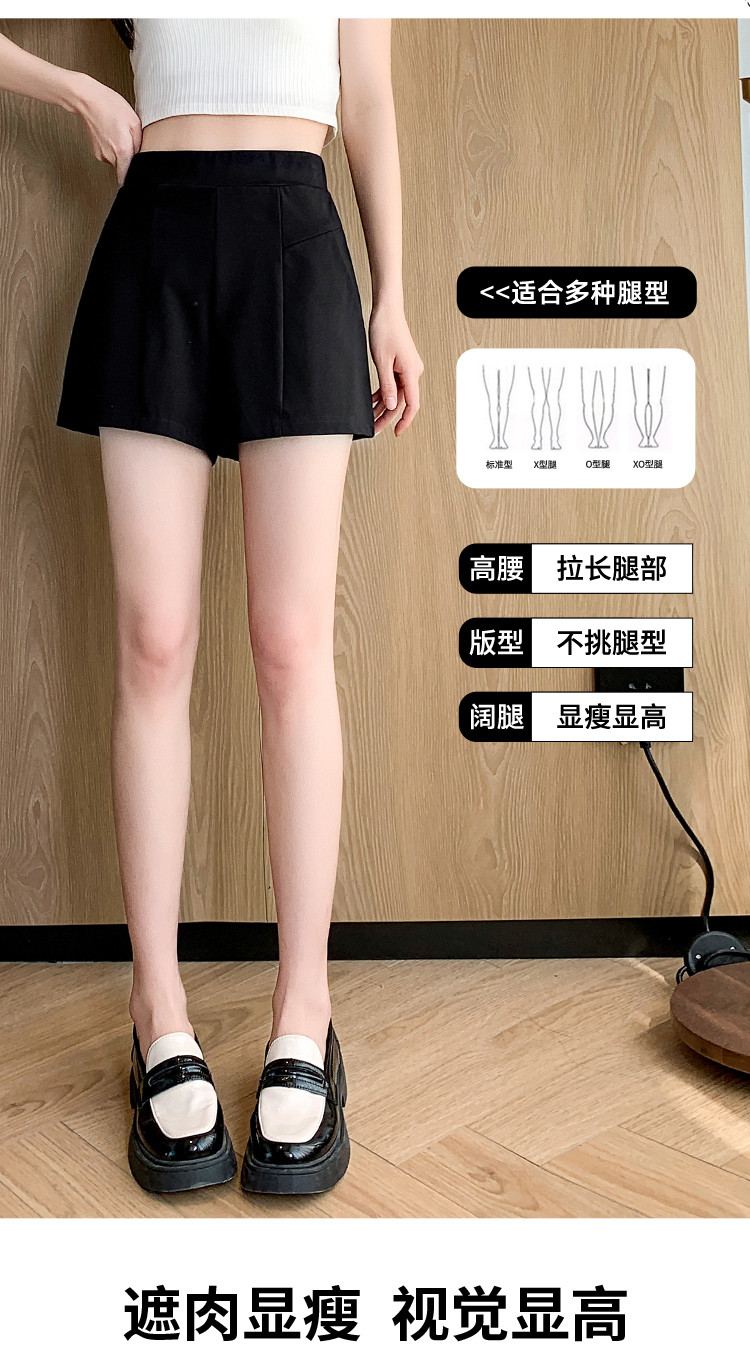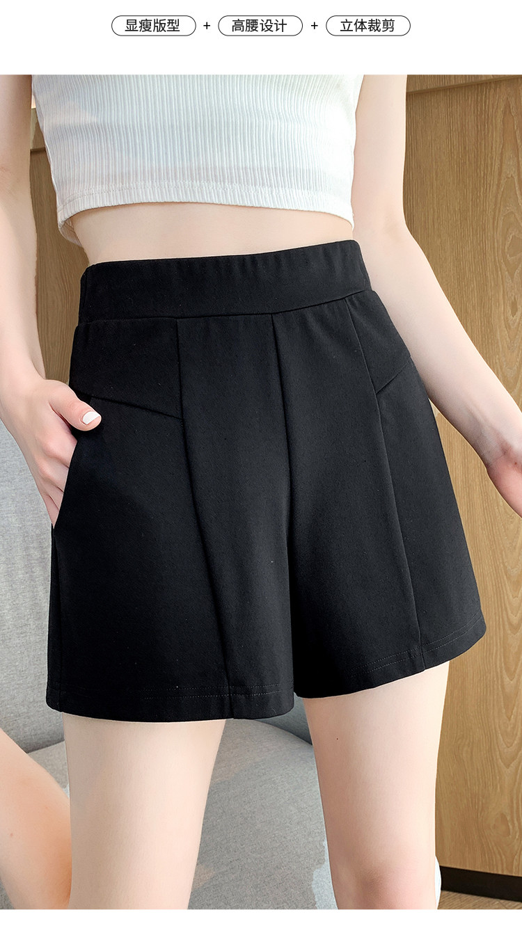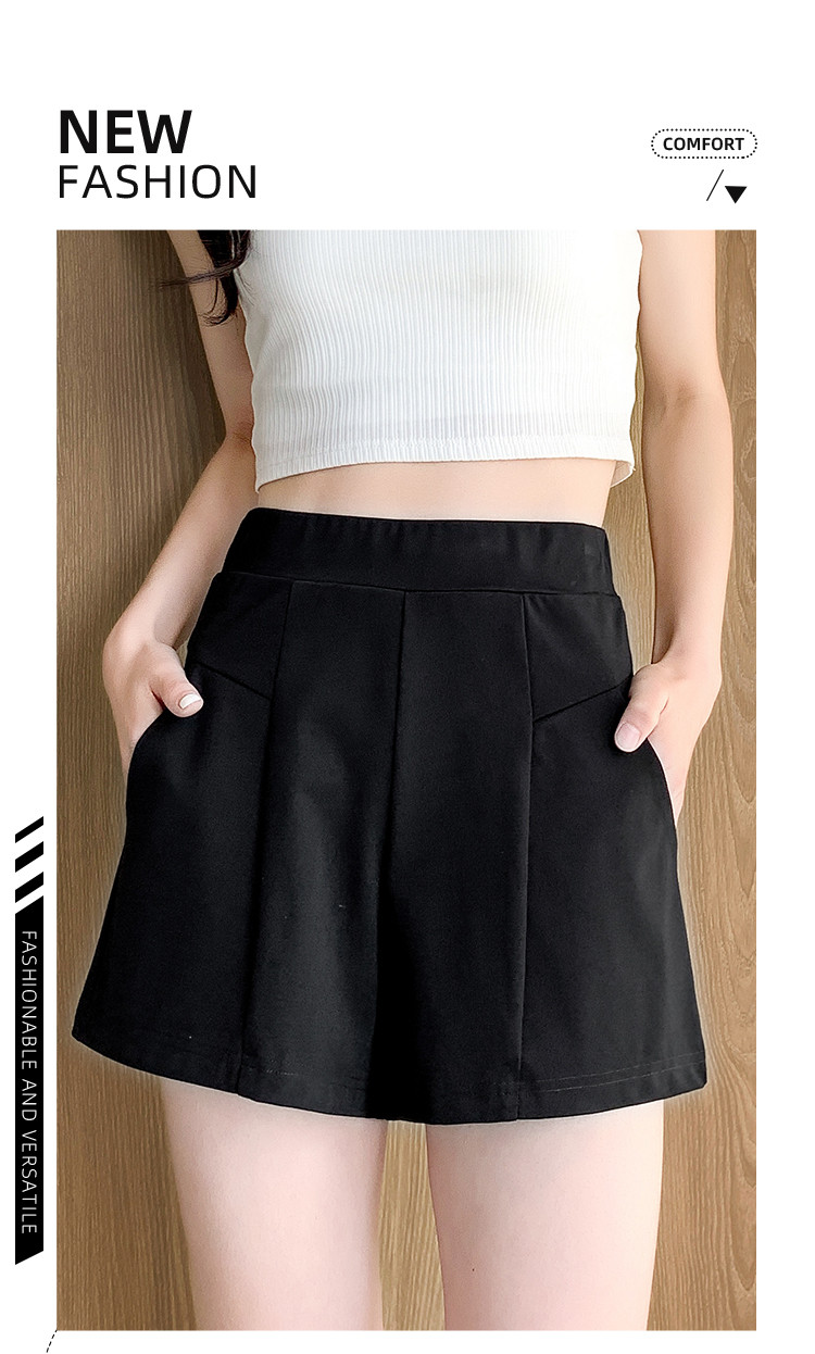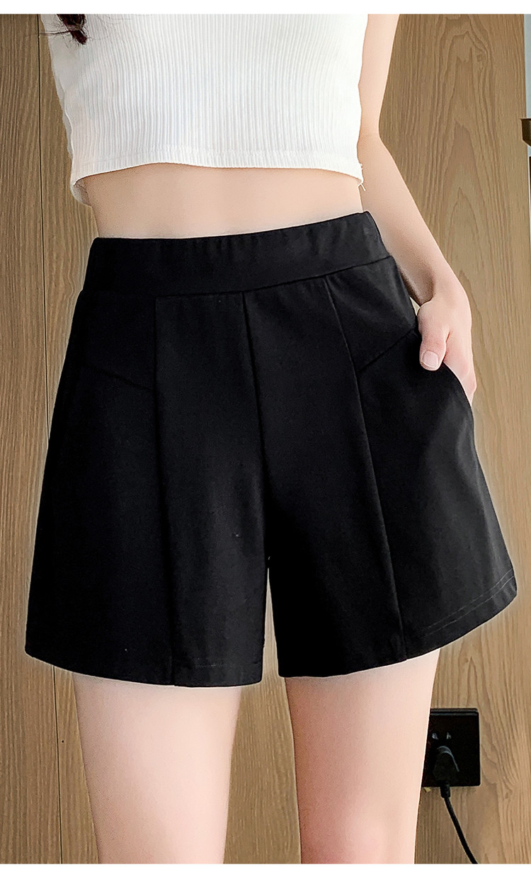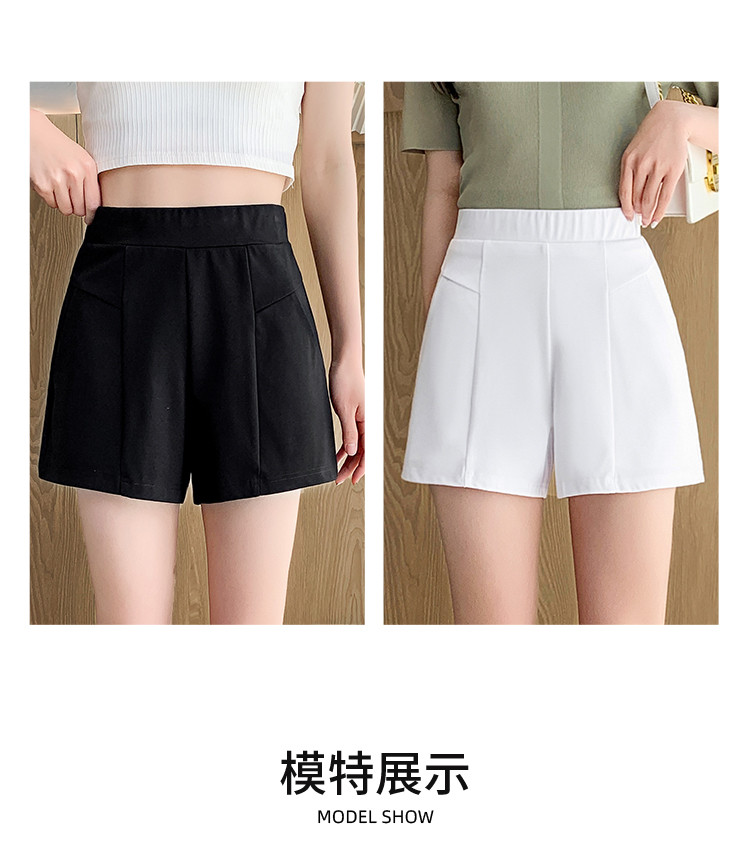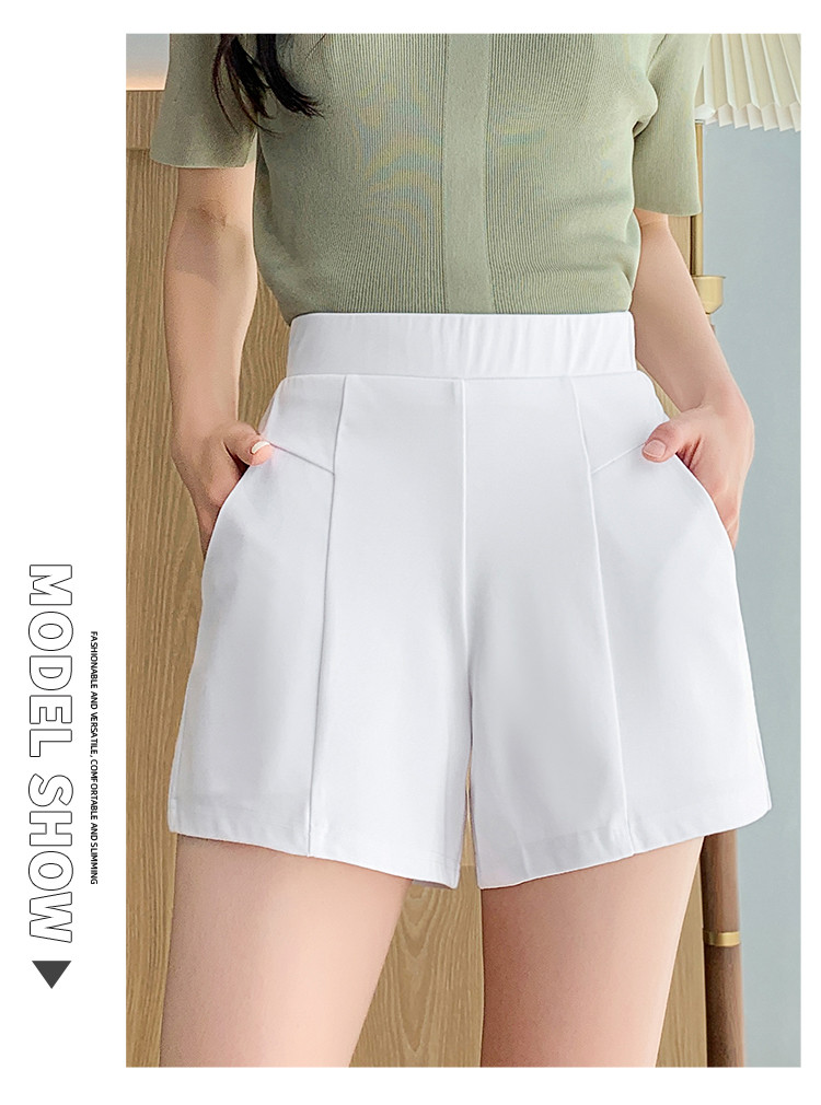 商品名称:时尚高腰阔腿休闲短裤夏季松紧腰纯色简约拼接设计显瘦针织A字裤 691800
